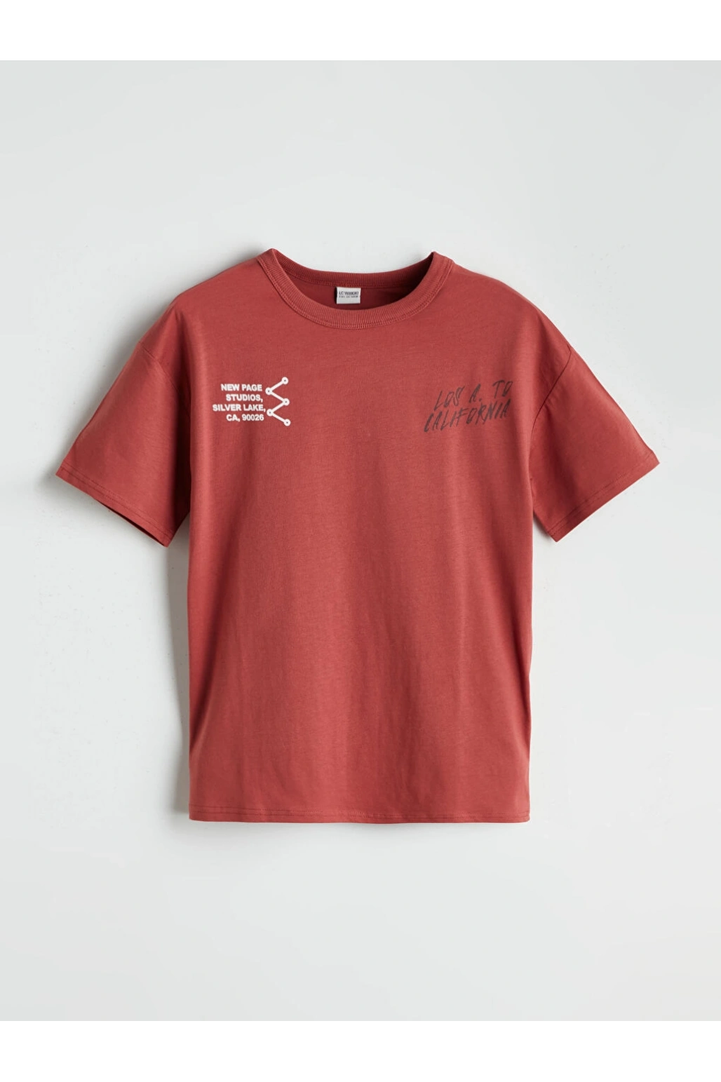 LC Waikiki XSIDE Kahverengi Bisiklet Yaka Baskılı Erkek Tişört