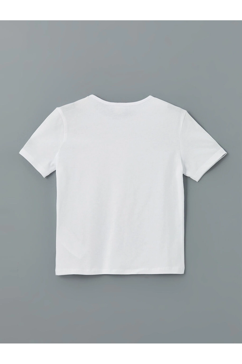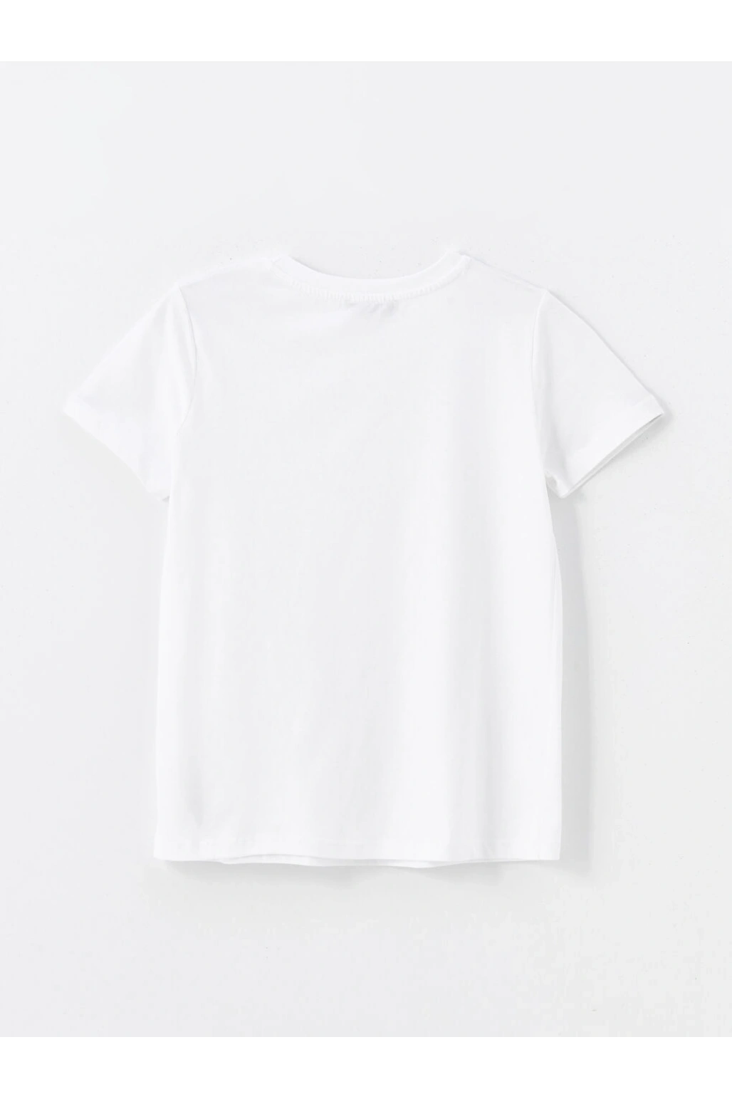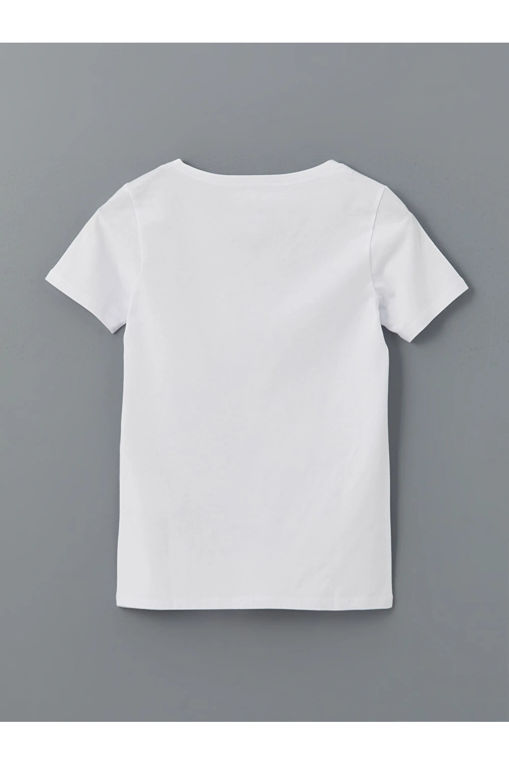 LCW Kids Beyaz Bisiklet Yaka Pul İşlemeli Kız Çocuk Tişört