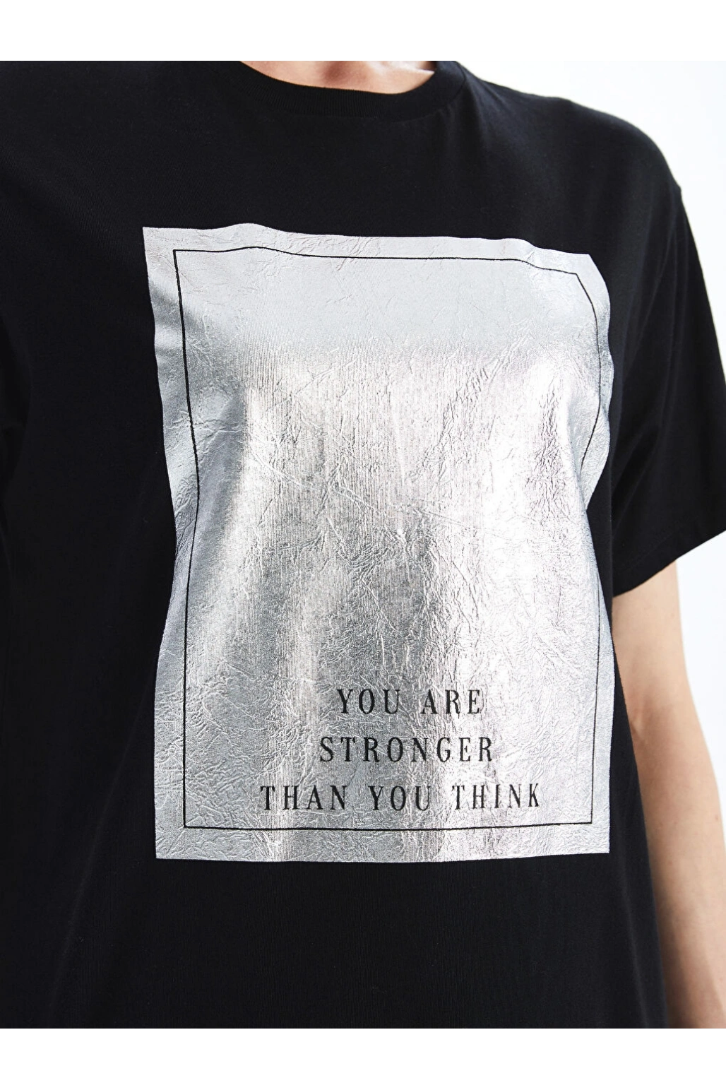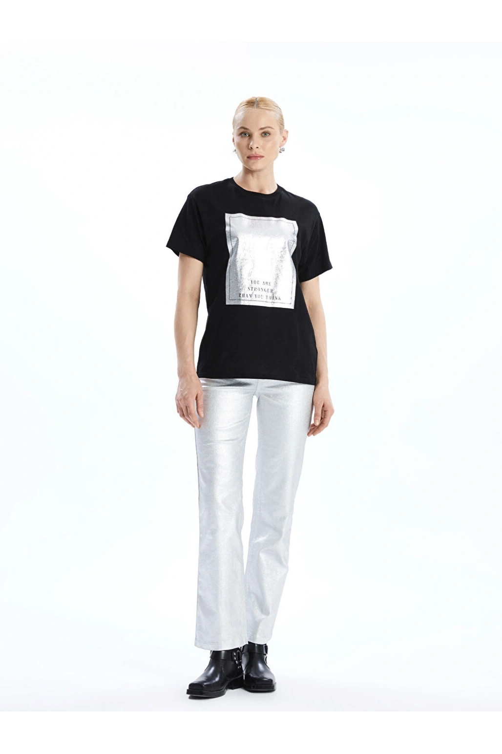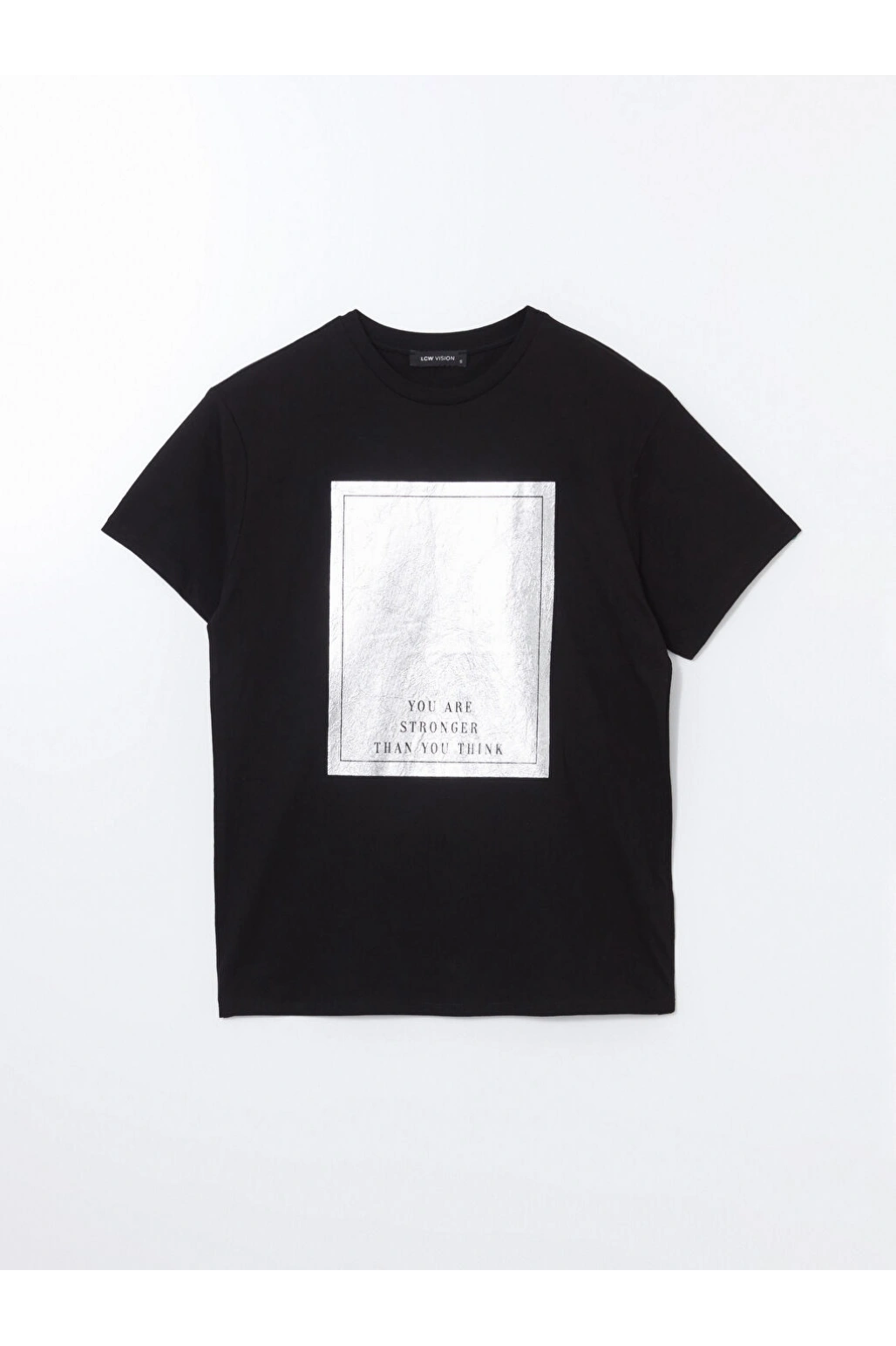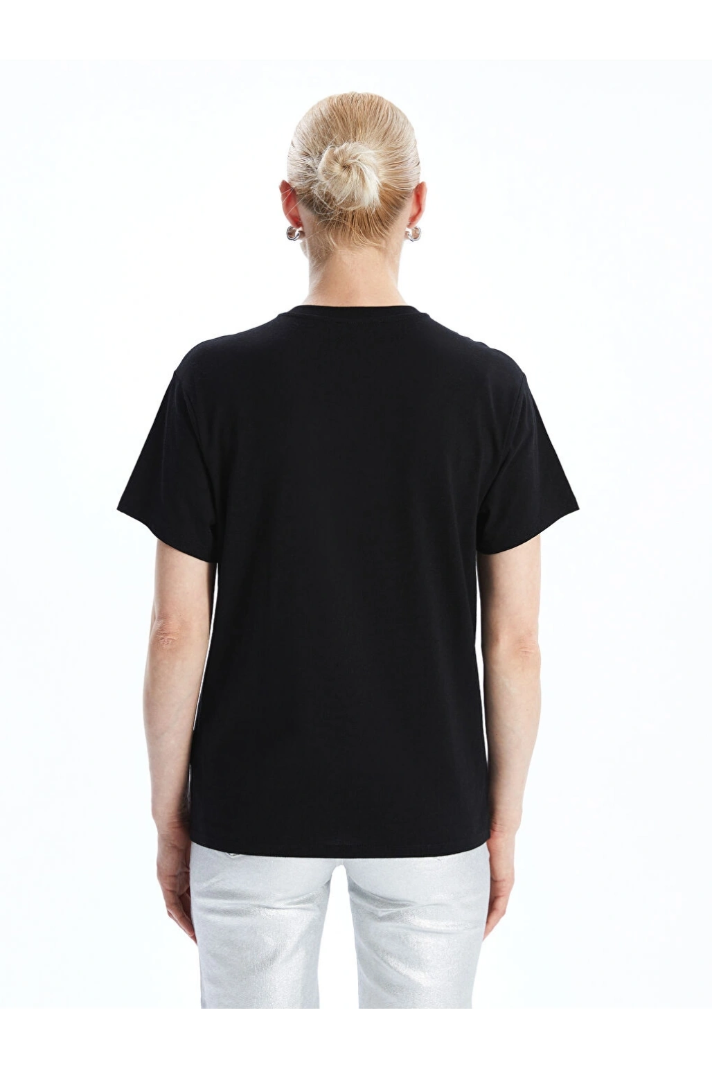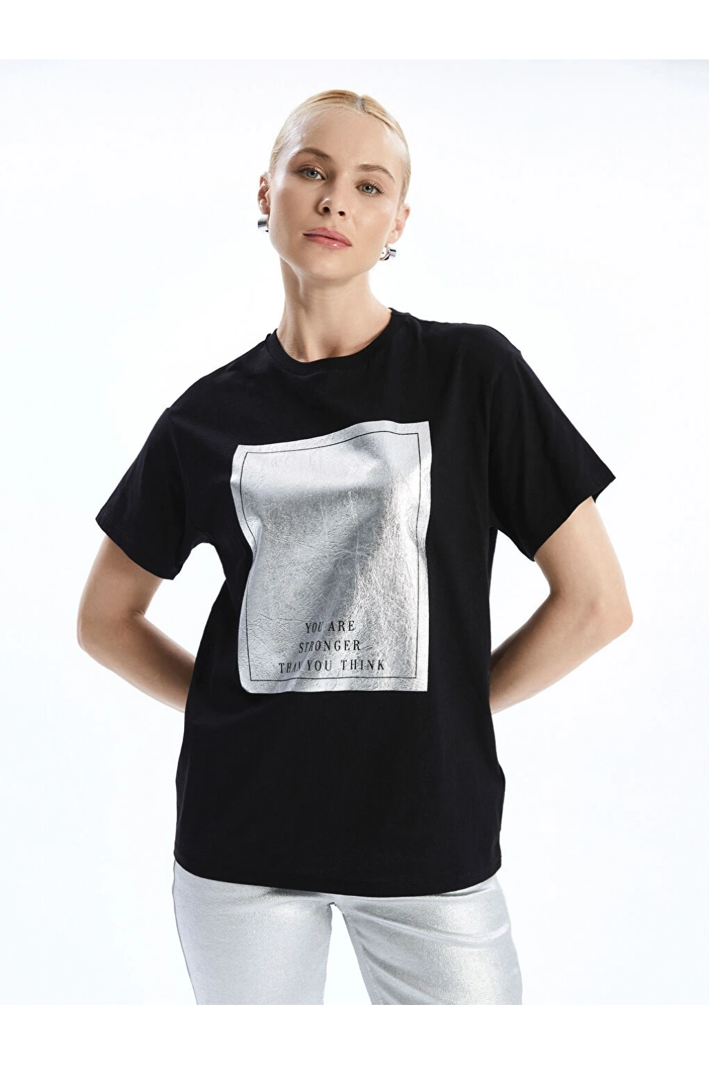 LCW Vision Siyah Bisiklet Yaka Baskılı Kadın Tişört