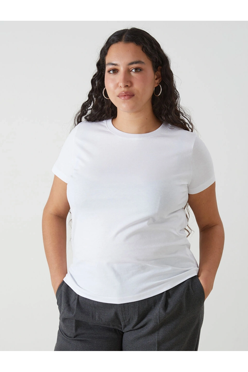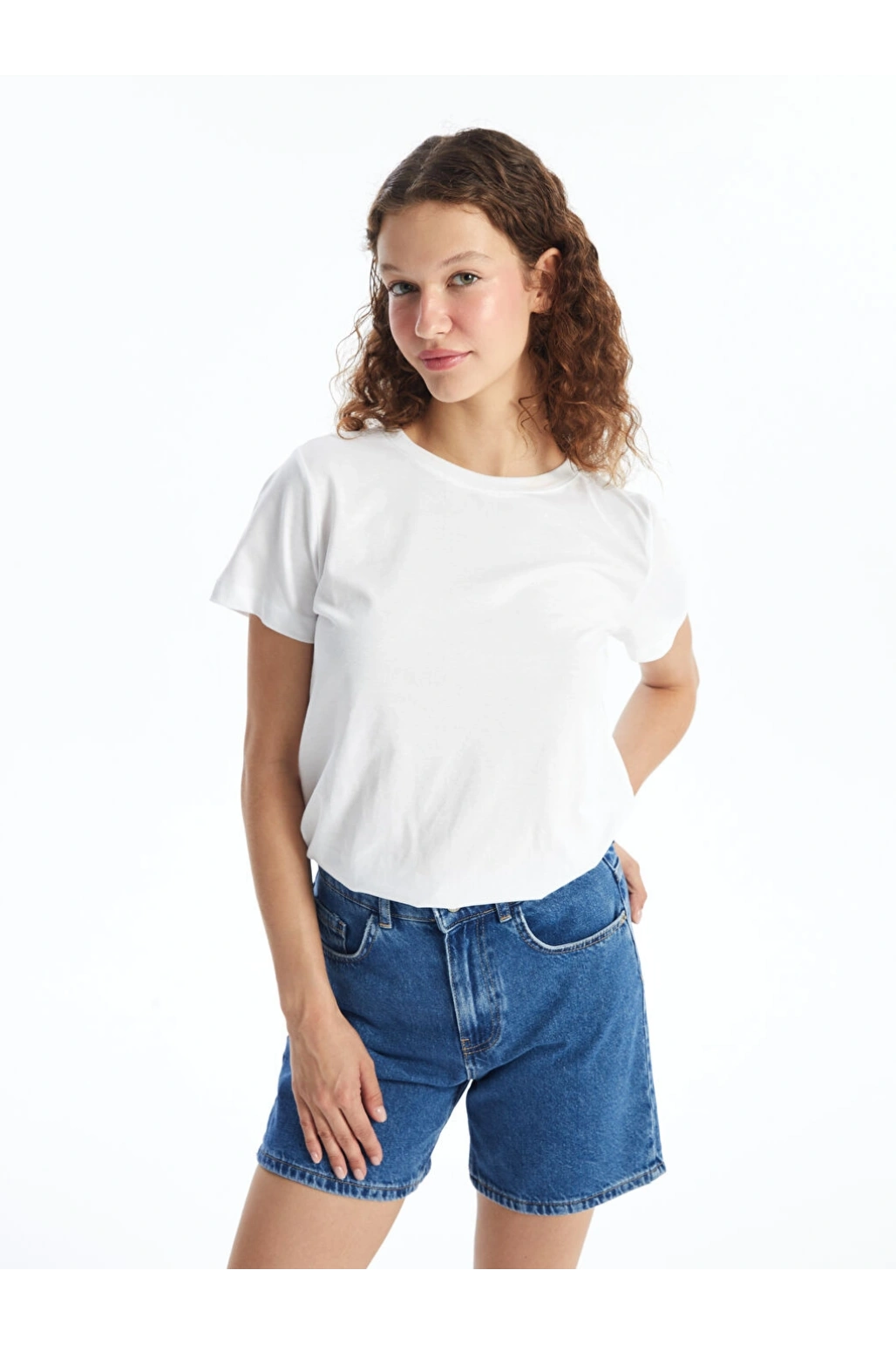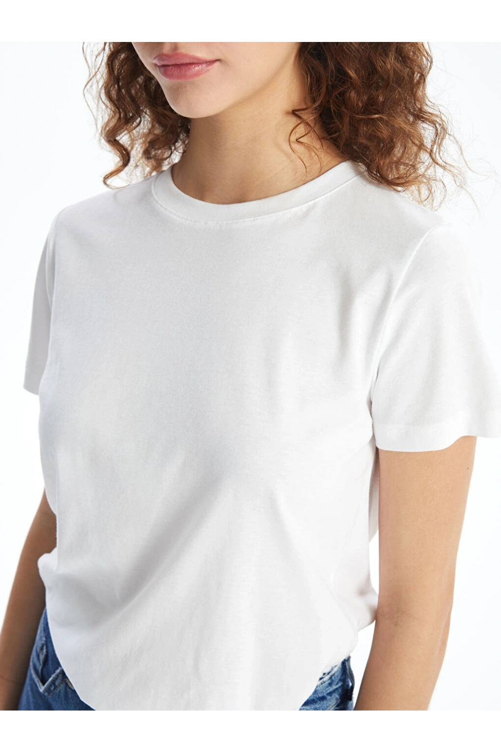 LCW Vision Beyaz Bisiklet Yaka Düz Kısa Kollu Kadın Tişört