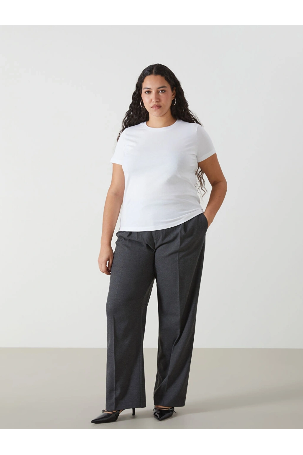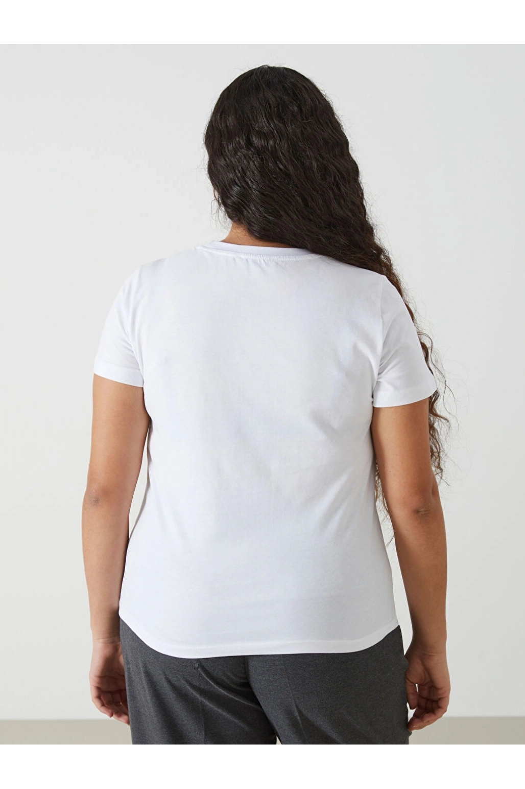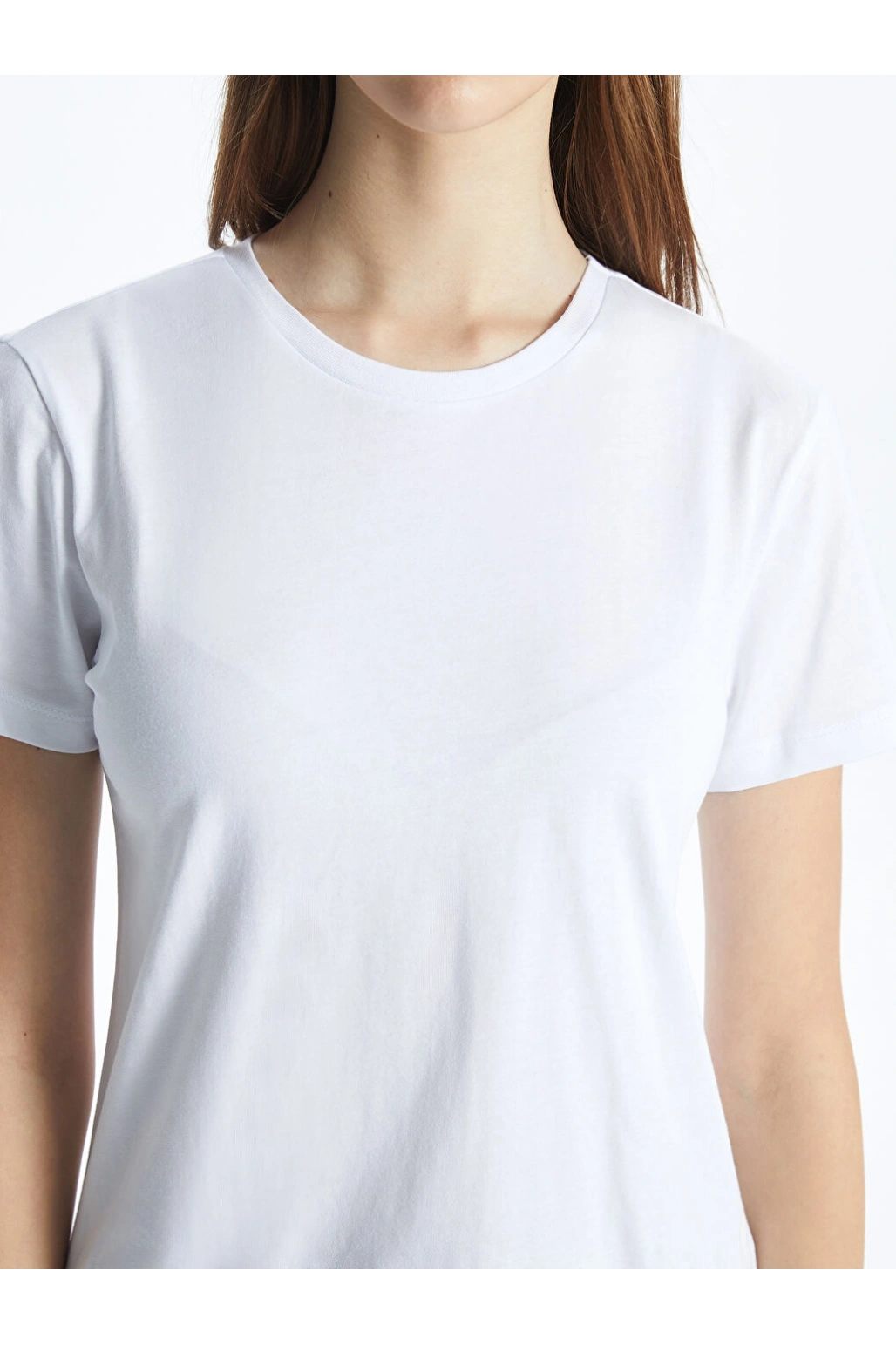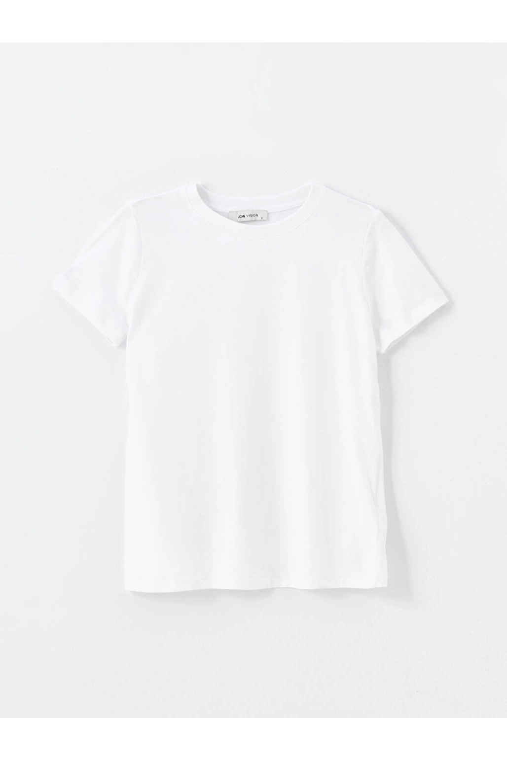 LCW Vision Beyaz Bisiklet Yaka Düz Kısa Kollu Kadın Tişört