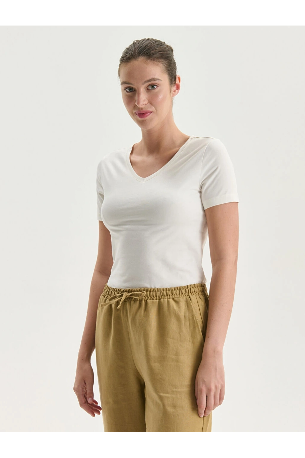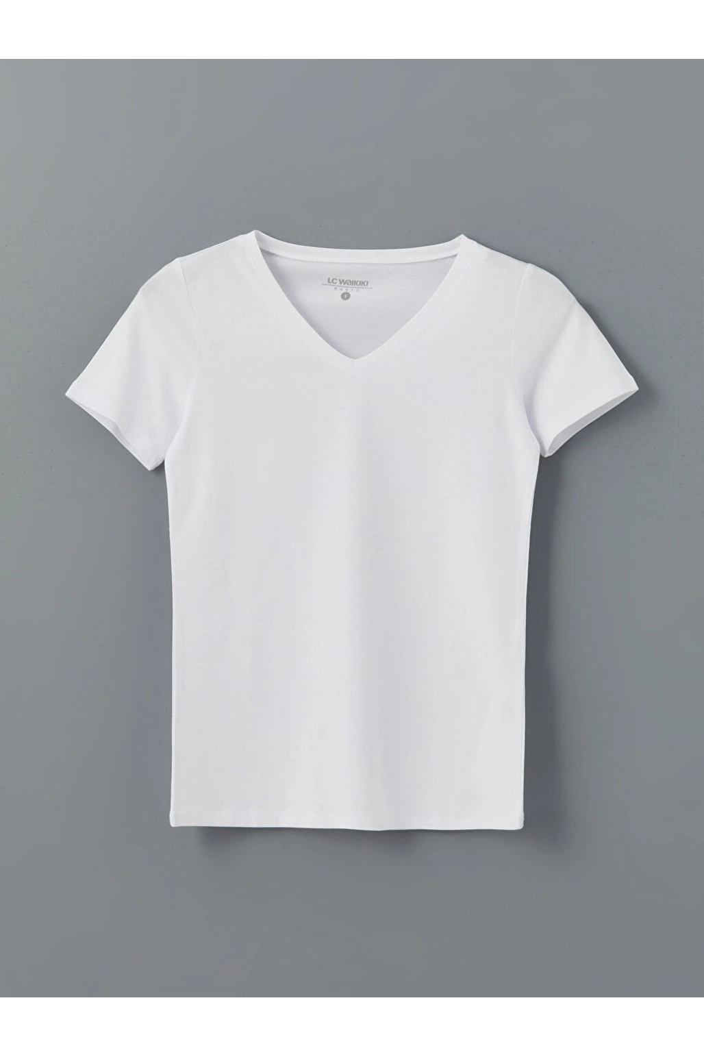 LCWAIKIKI Classic Beyaz V Yaka Kadın Tişört