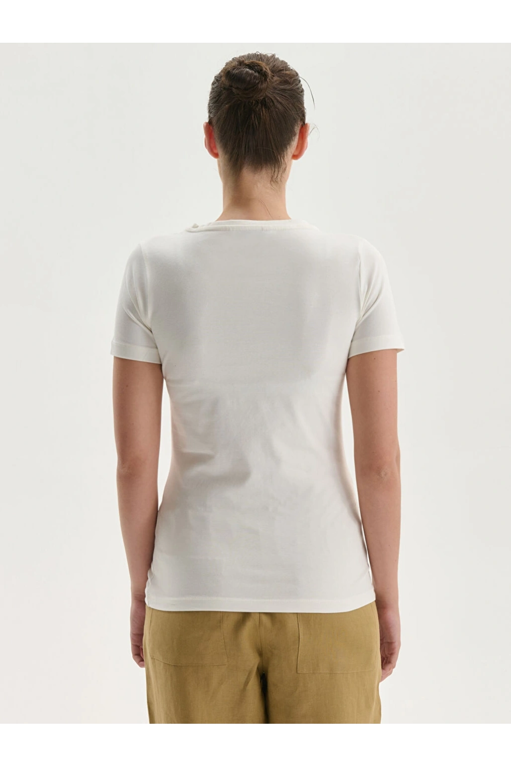 XSIDE Beyaz LC Waikiki Bisiklet Yaka Kadın Tişört