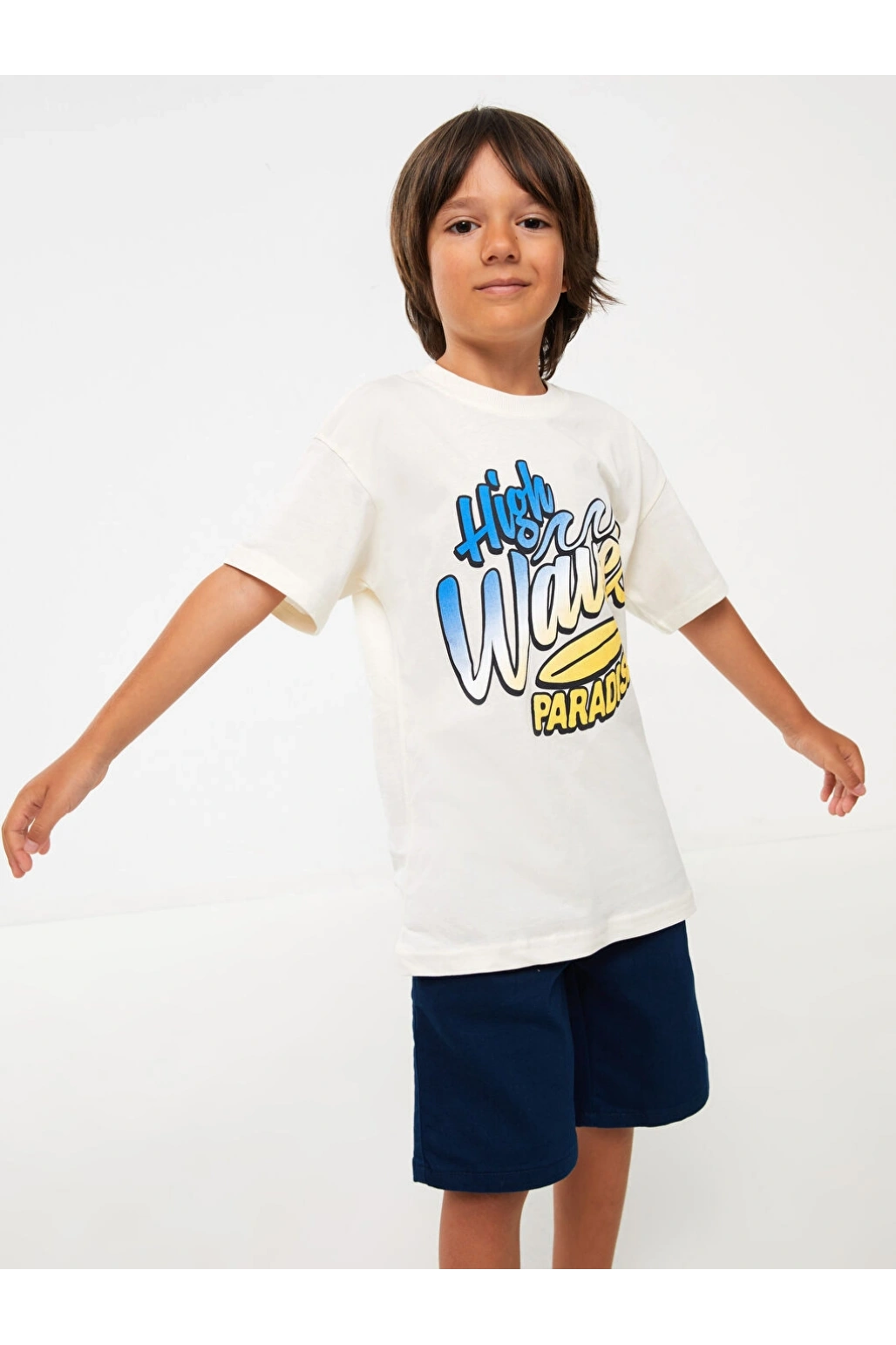 LC Waikiki LCW Kids Lacivert Beli Lastikli Baskılı Erkek Çocuk Şort
