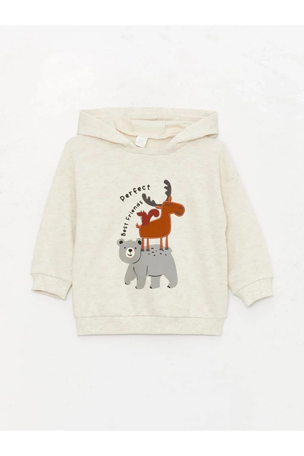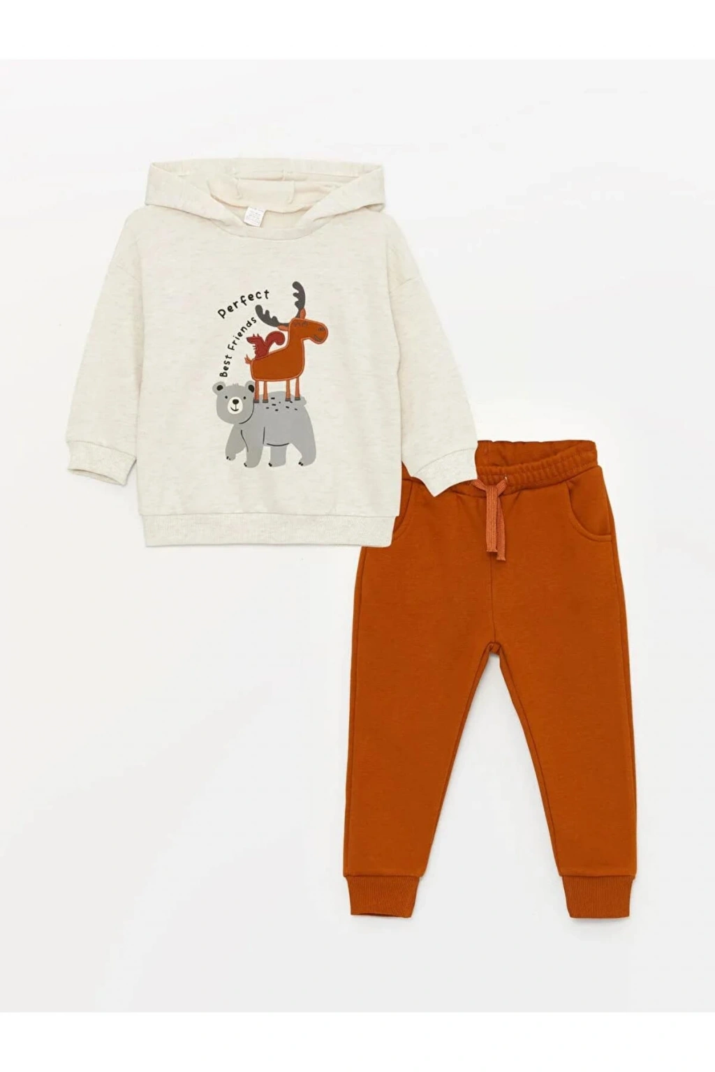 Kapüşonlu sweatshirt ve eşofman altından oluşan 2'li takım, manşetleri, etek ucu ve paçaları ribanalı tasarımıyla şık bir görünüm sağlar. Bebeğinize gün boyu rahatlık ve konfor sunar.