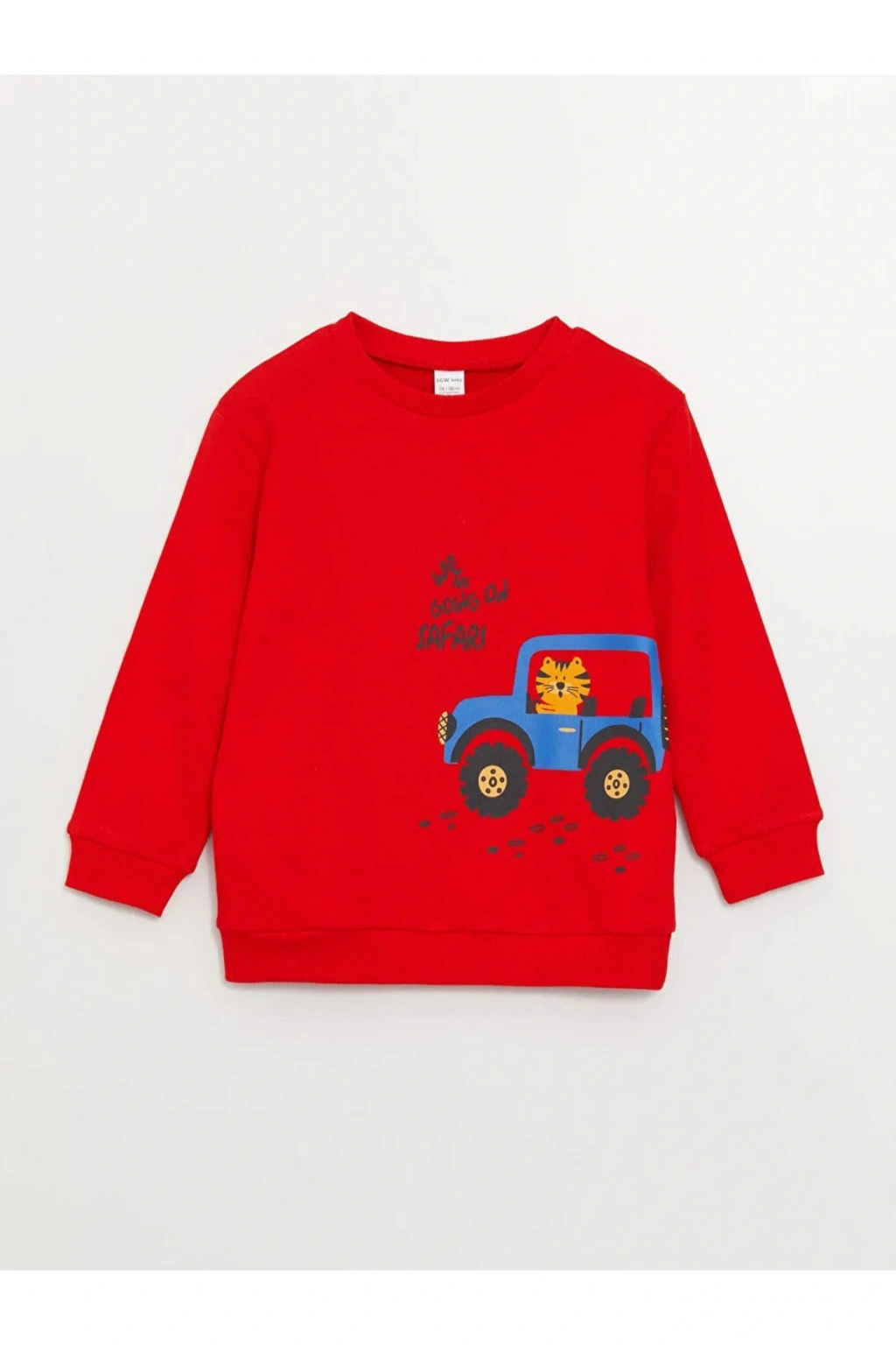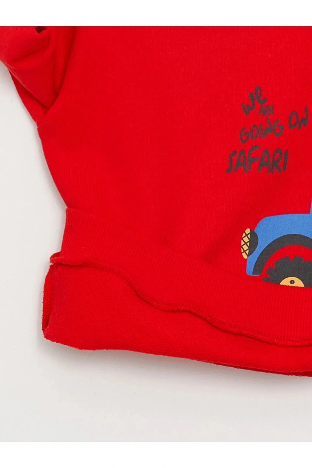 Bebek ve çocuklar için özel olarak tasarlanmış, rahat ve şık bir görünüm sunan bisiklet yaka sweatshirt; Askılı kol tasarımı sayesinde hareket özgürlüğü sağlar ve sıcak tutar; Standart boy kesimi ile bebeğinizin vücut hatlarına uyum sağlar ve konforlu bir kullanım sunar; Canlı ve eğlenceli baskılı deseni ile bebeğinizin enerjisini yansıtır; Regular kalıp, rahat bir oturuş sağlayarak gün boyu rahat hareket etmesine olanak tanır; Dokuma kumaş tipi, dayanıklılığı artırırken yumuşak dokusuyla cildi tahriş etmez; Regular silueti sayesinde vücuda tam oturur ve şık bir görünüm kazandırır;