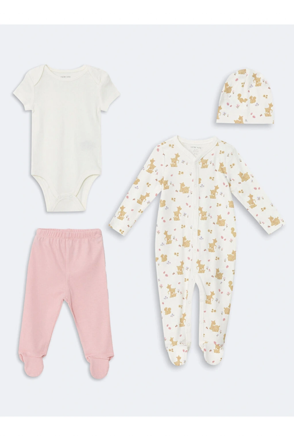 Kız bebek hastane çıkış seti, bere, pantolon, tulum ve çıtçıtlı body ile bebeğinizin ilk günlerinde konfor sağlar. Yumuşak kumaşları sayesinde hassas cilde nazik bir dokunuş sunar. Pratik ve şirin parçalarıyla yenidoğan için ideal bir tercihtir.