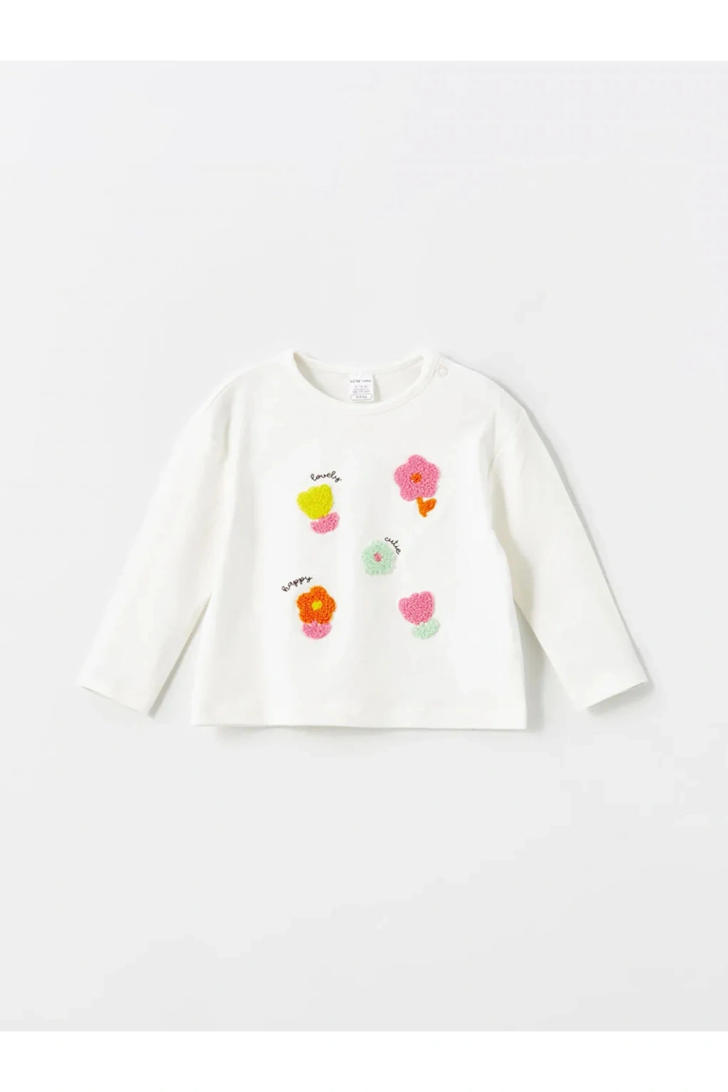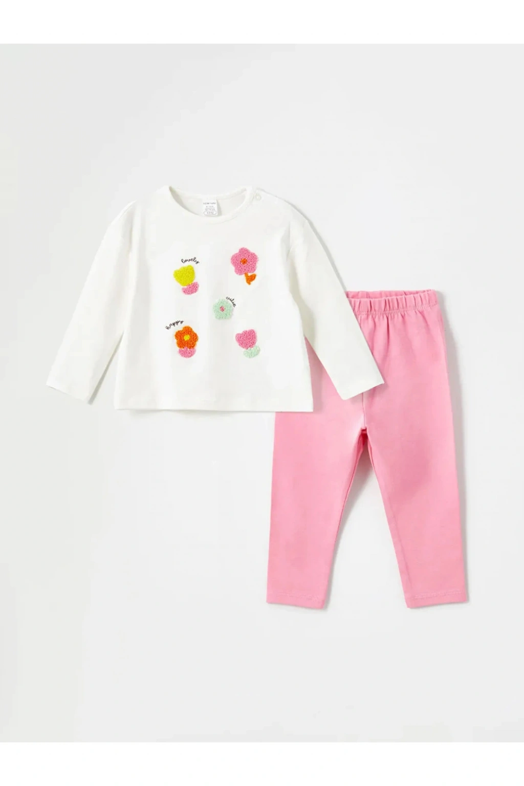 LCW baby Ekru Bisiklet Yaka Çiçekli Kız Çocuk Bluz ve Tayt 2li