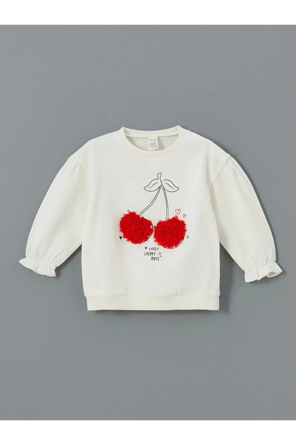 Bisiklet yaka kiraz baskılı kız bebek sweatshirt ve tayt 2’li set, sevimli tasarımı ve rahat kesimiyle bebeklerin gün boyu konforunu sağlar.; Yumuşak dokusu ve enerjik kiraz baskısıyla günlük kullanım için ideal bir tercih.