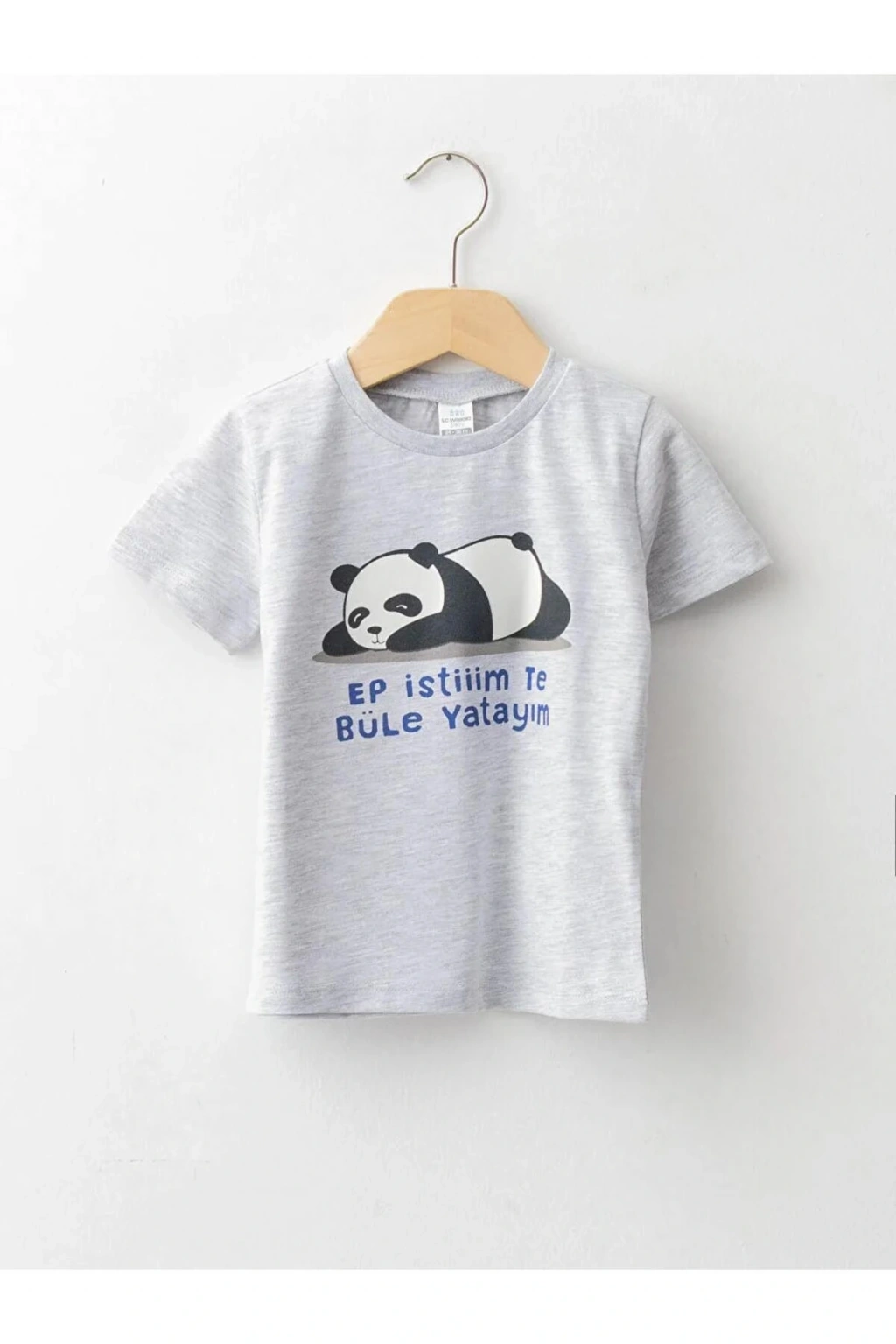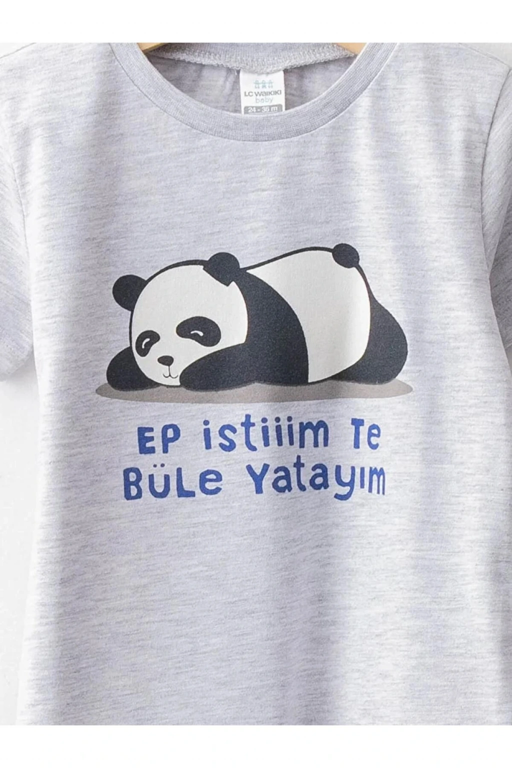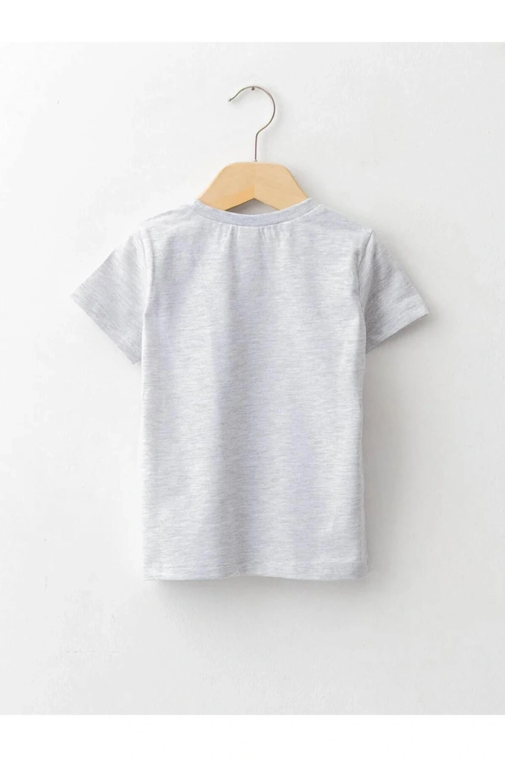 LCW baby Gri Bisiklet Yaka Kısa Kollu Baskılı Erkek Bebek Tişört