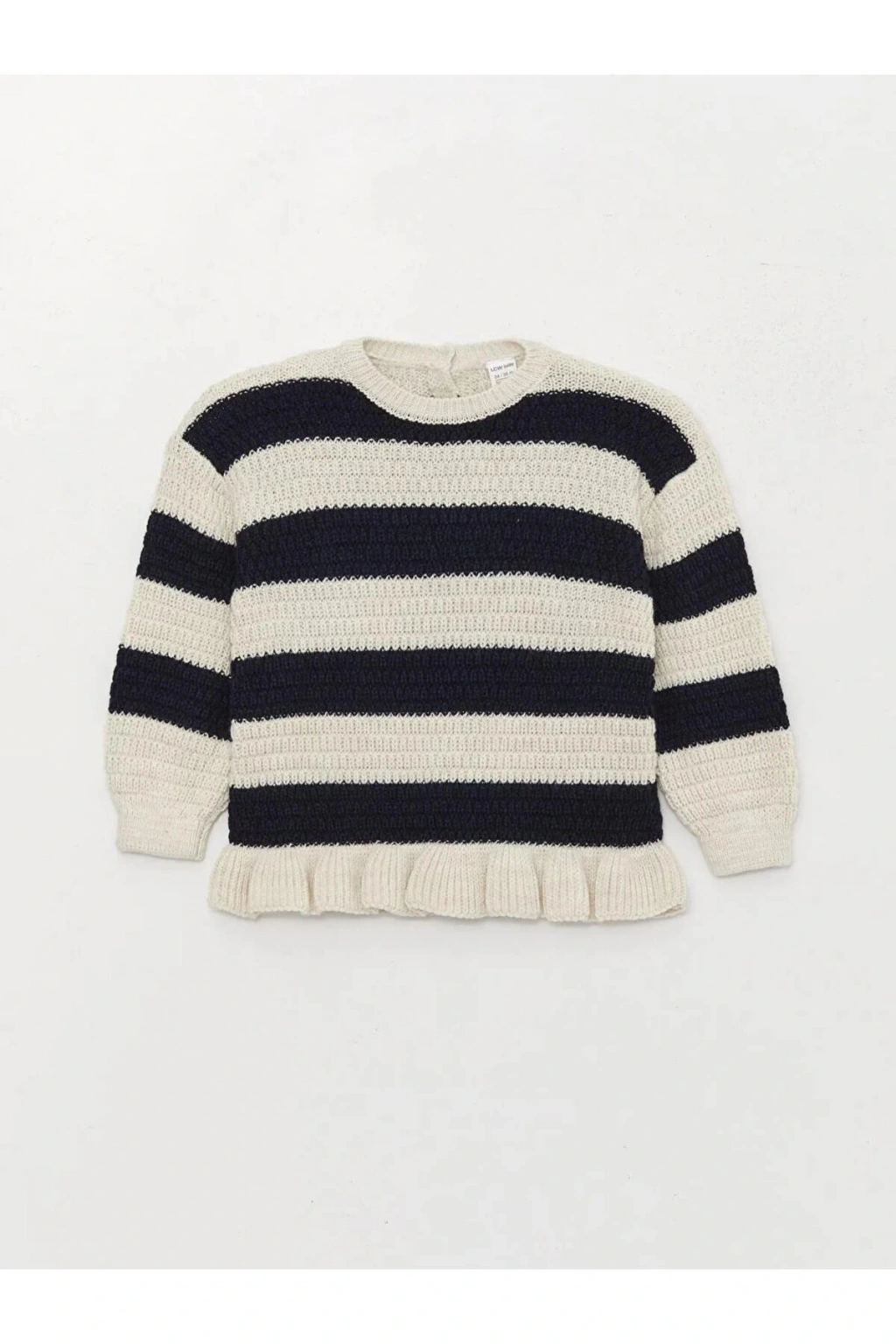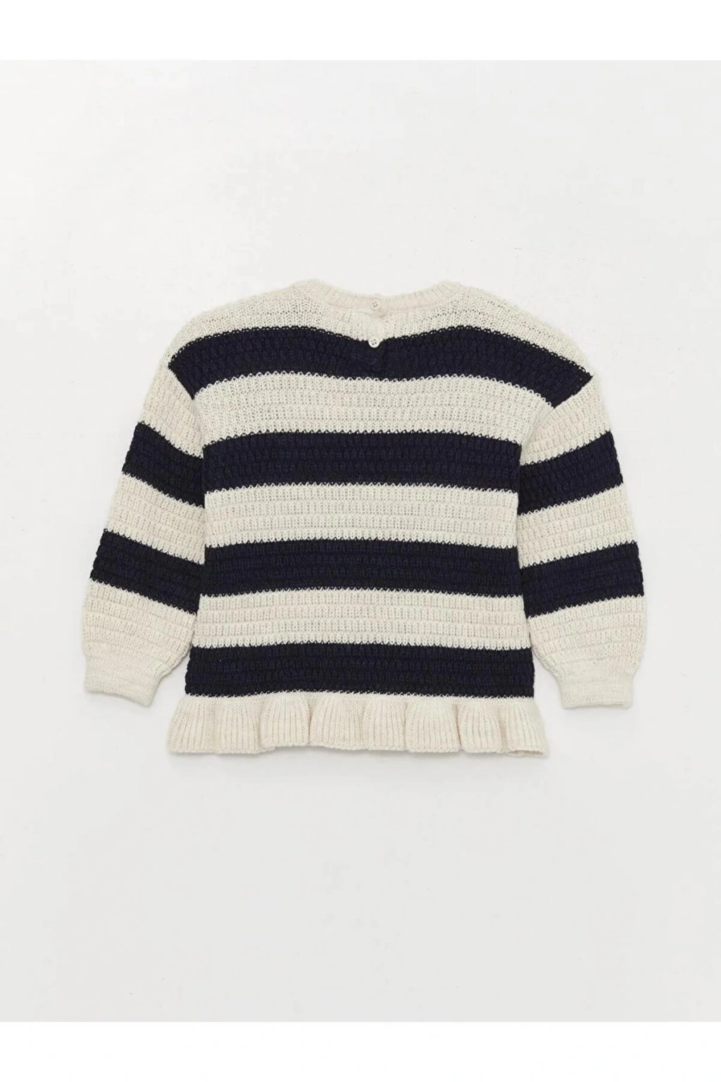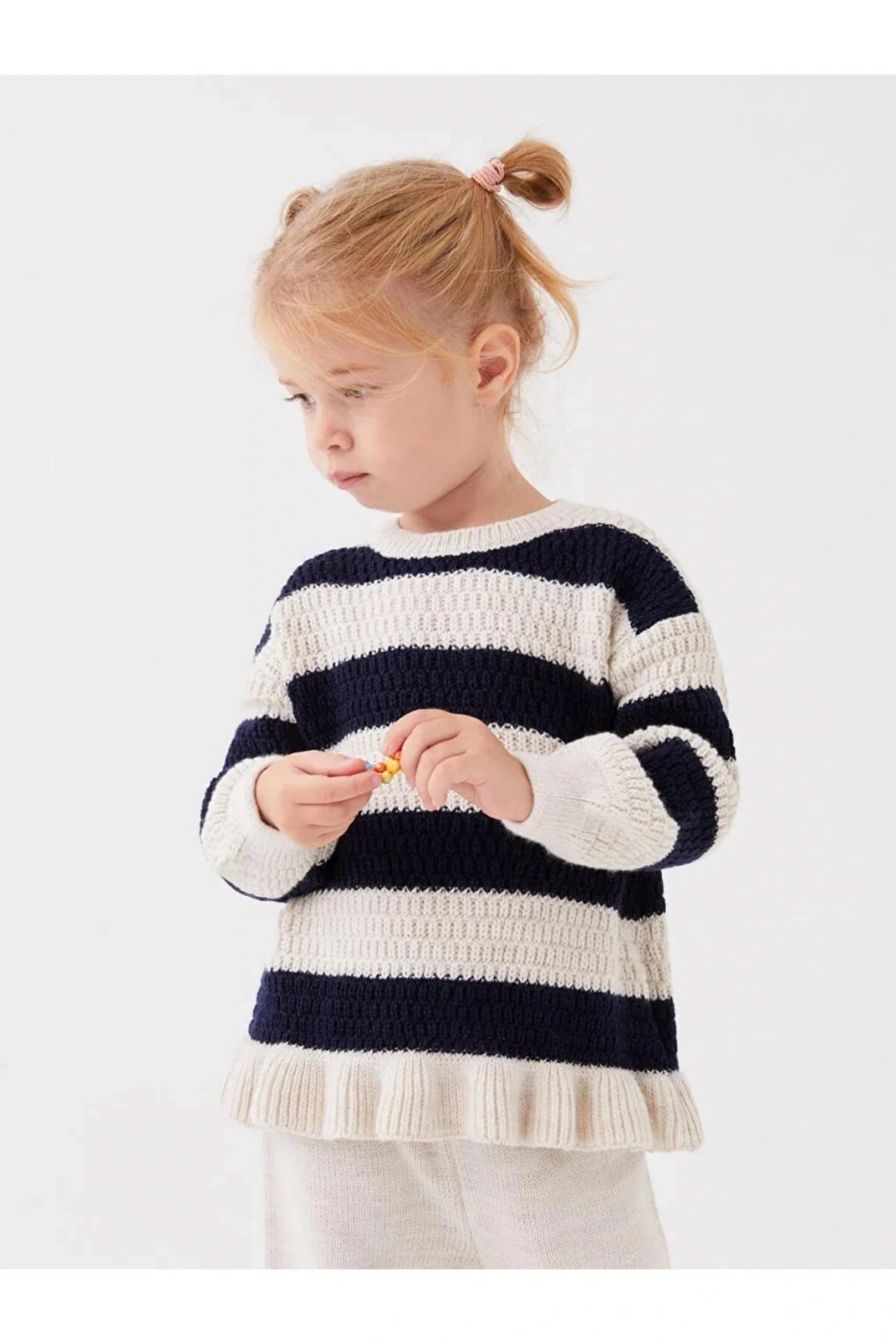 Kız bebek kazak ve pantolon takımı triko kumaştan üretilmiştir. Kazak uzun kollu ve bisiklet yaka tasarımlıdır ve çizgi detayları bulunmaktadır. Pantolon kazakla aynı kumaştan yapılmış ve tamamlayıcı bir renge sahiptir.