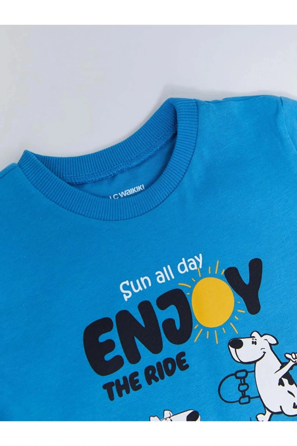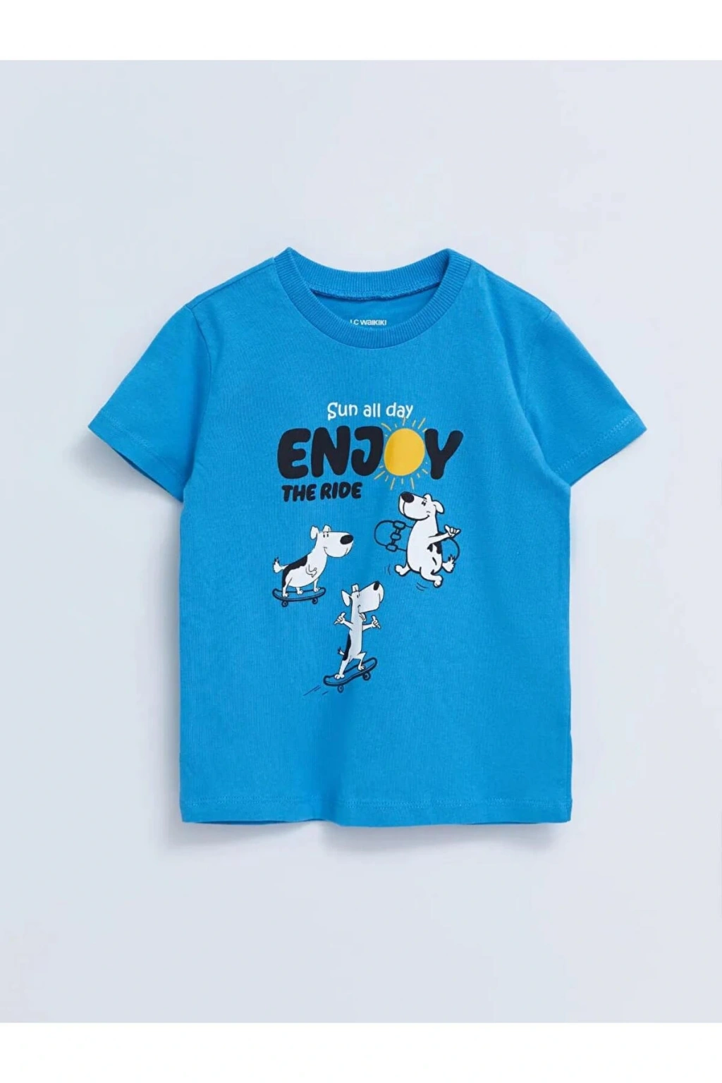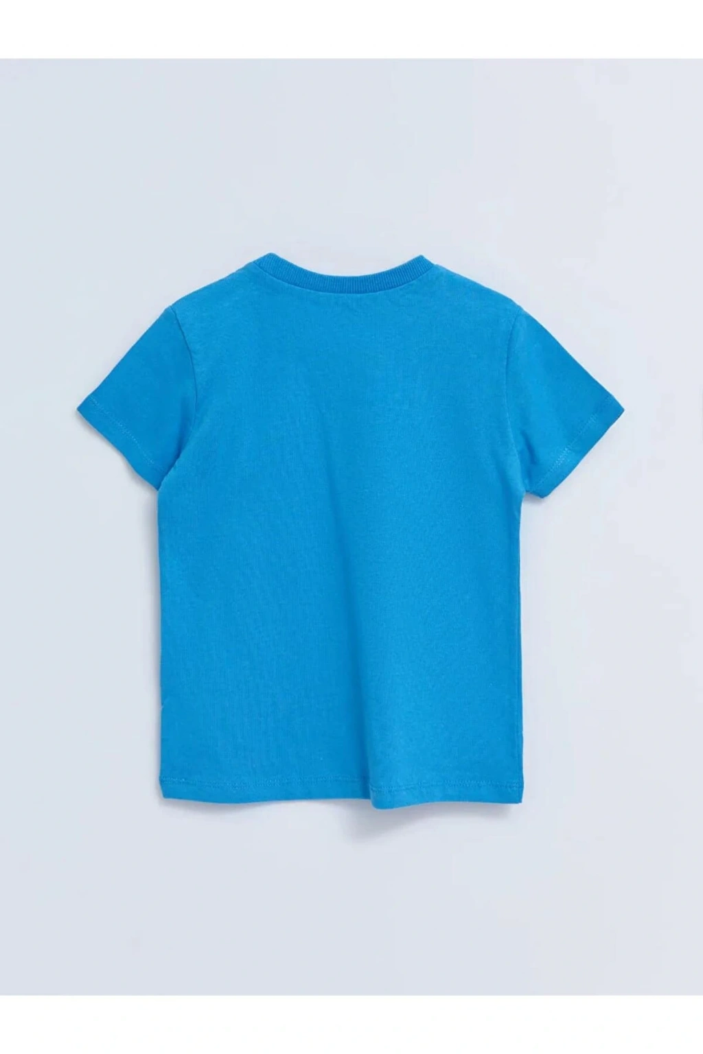 LCW baby Mavi Bisiklet Yaka Kısa Kollu Baskılı Erkek Bebek Tişört