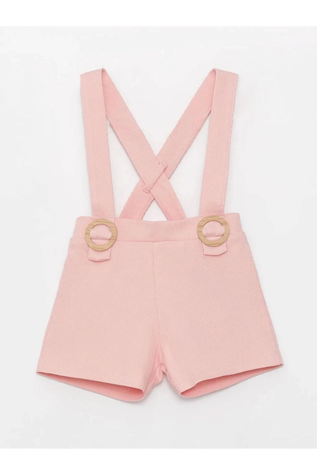 %100 pamuklu kumaştan üretilmiş şort modeli, cilde nefes aldıran dokusuyla kız bebeklerin konforunu destekler. Beli lastikli ve askılı tasarımıyla beğeni toplayan şortun askılarındaki toka detayları şık ve dinamik bir görünüm elde etmeyi sağlar.
