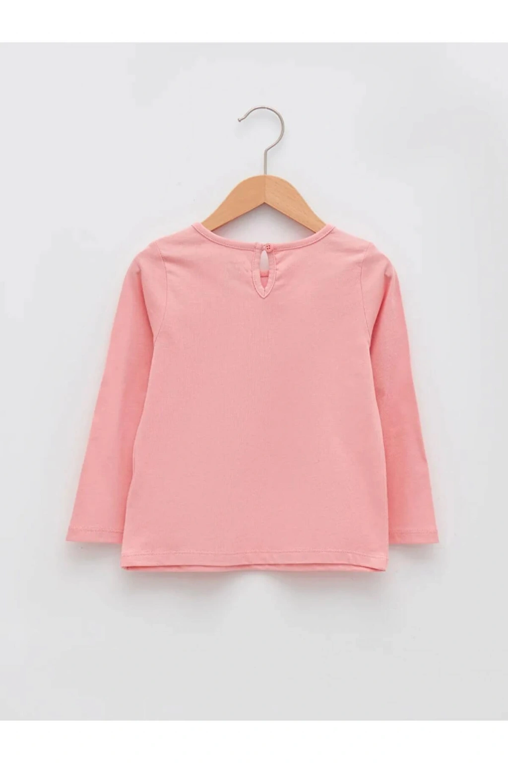 LCW baby Pembe Bisiklet Yaka Uzun Kol Baskılı Pamuklu Kız Bebek Tişört