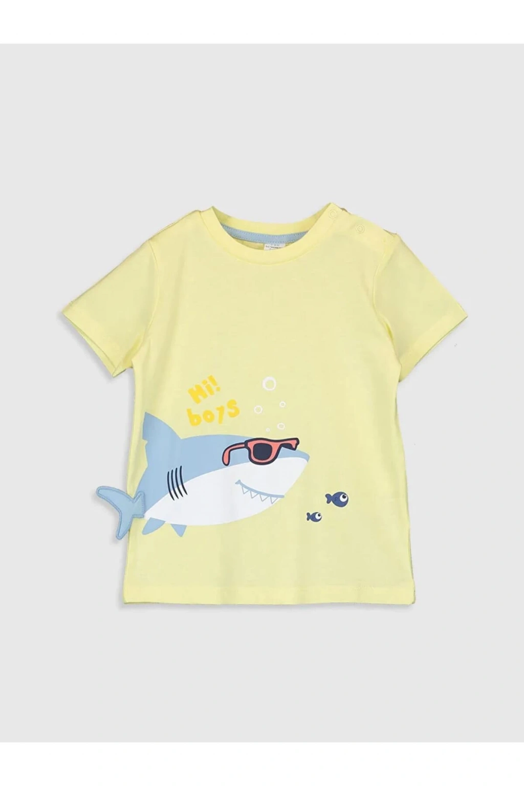 LCW baby Sarı Bisiklet Yaka Kısa Kollu Erkek Bebek Tişört