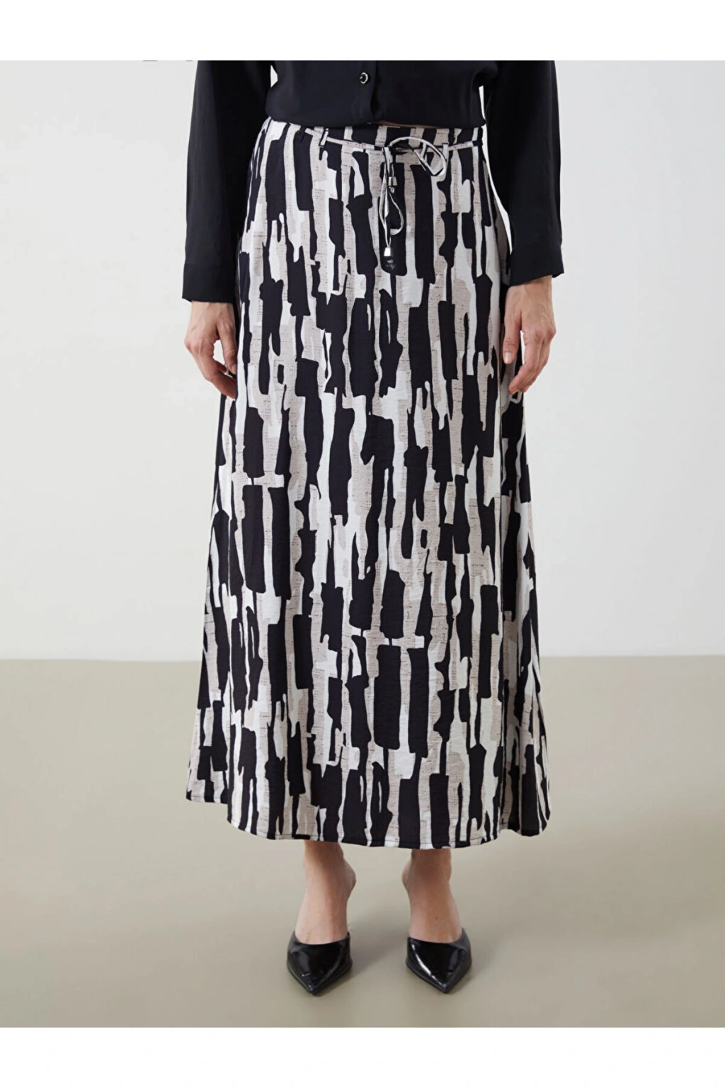 LCWAIKIKI Classic Yeşil Beli Lastikli Desenli Şifon Kadın Pileli Etek