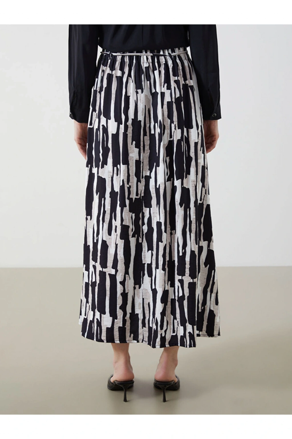 Beli Lastikli Desenli Şifon Kadın Pileli Etek