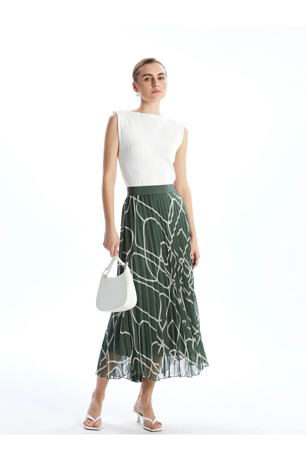Cinsiyet: Kadın-Ürün Tipi: -Kumaş: Şifon-Kalıp: Loose & Bol-Kalınlık: Orta Kalınlık-Yaka: -Ana Kumaş: %100 Polyester-Desen: Desenli-Malzeme: -Kol Boyu: .; Açıklama Beli lastikli desenli pileli etek, şifon kumaştan üretilmiştir Şifon kumaşın hafif yapısı sayesinde rahat bir kullanım sağlar ve hareket özgürlüğü sunar Beli saran lastikli yapısı sayesinde vücudunuza uyum sağlar