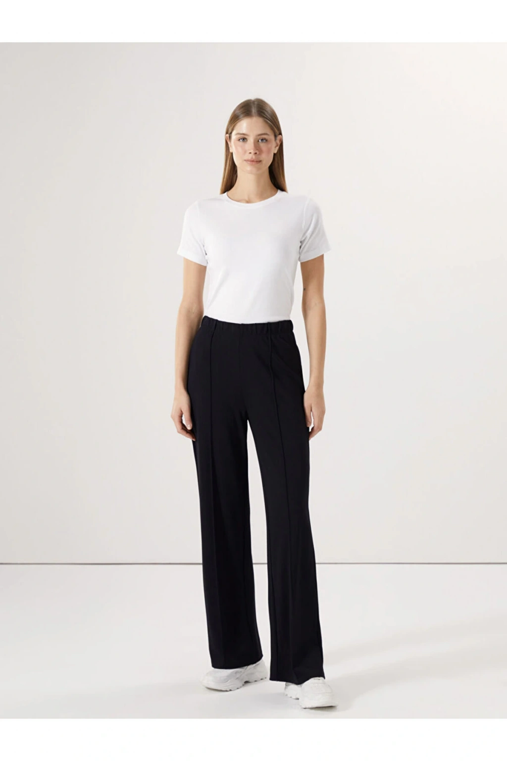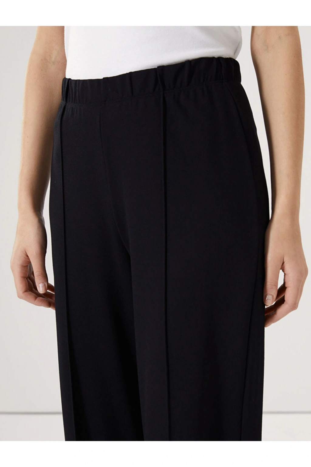 Cinsiyet: Kadın-Ürün Tipi: Pantolon-Kumaş: Ponte-Kalıp: Standart & Regular-Kalınlık: Orta Kalınlık-Yaka: -Ana Kumaş: %3 ELASTAN %22 Polyester %75 VİSKOZ-Desen: Düz-Malzeme: -Kol Boyu: .; Açıklama Beli lastikli kadın pantolon, kolay kırışmayan, yumuşak ve esnek kumaşıyla konforlu bir kullanım sunar Belinin lastikli oluşu, rahatlığı artırarak gün boyu hareket özgürlüğü sağlar