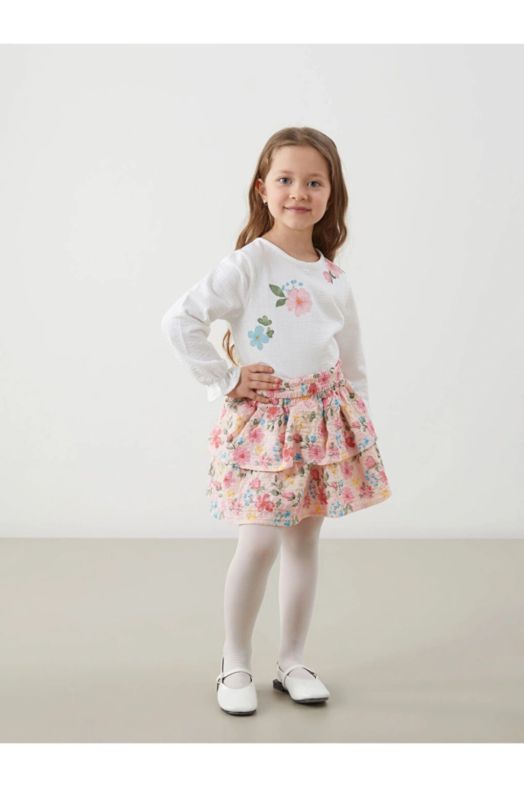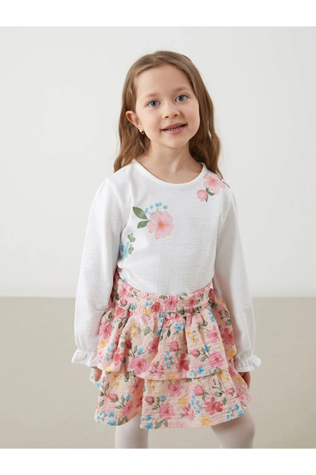 LCW Bisiklet Yaka Çiçekli Kız Çocuk Tişört