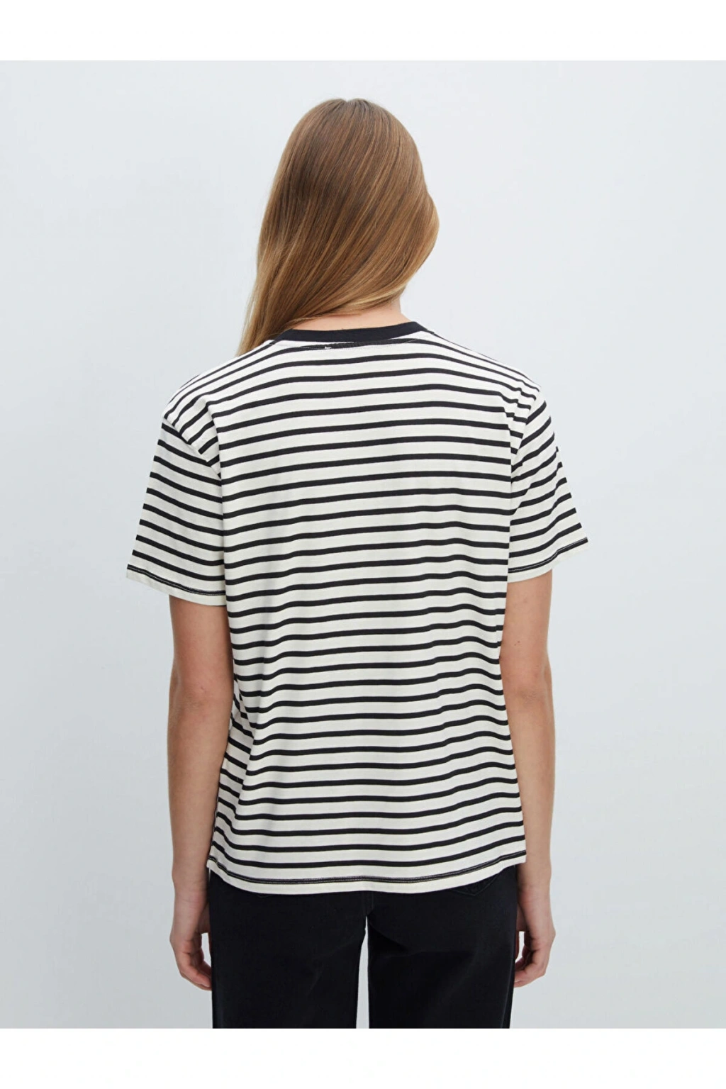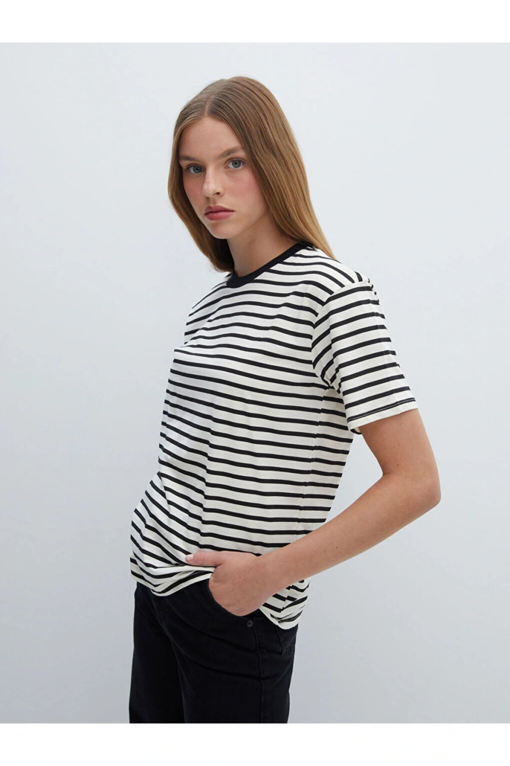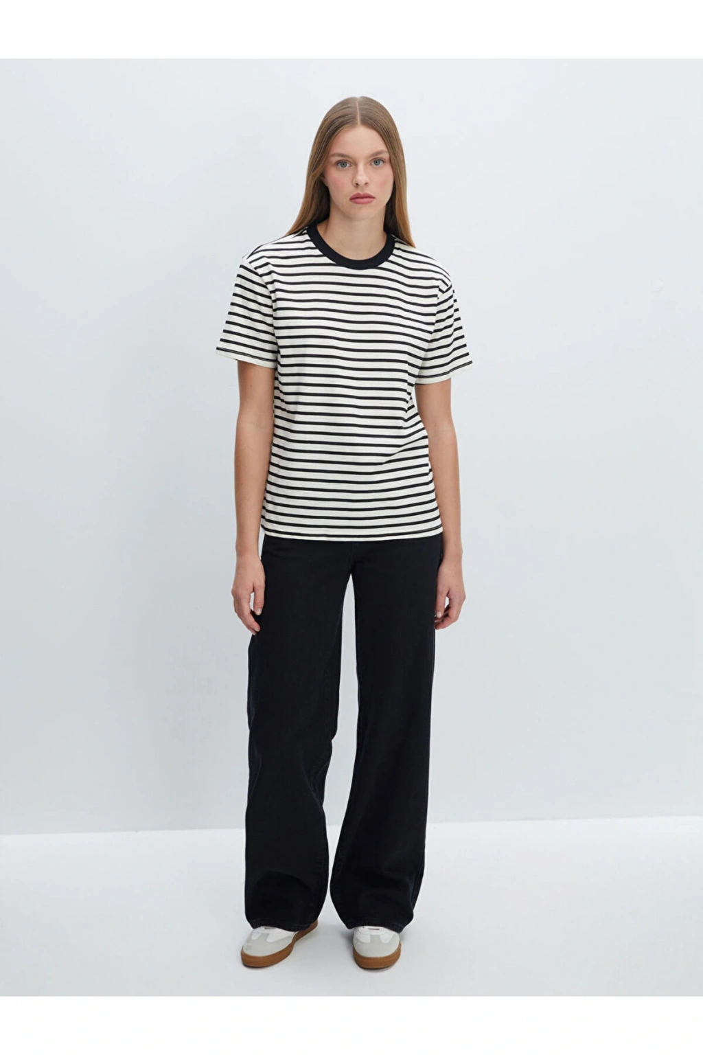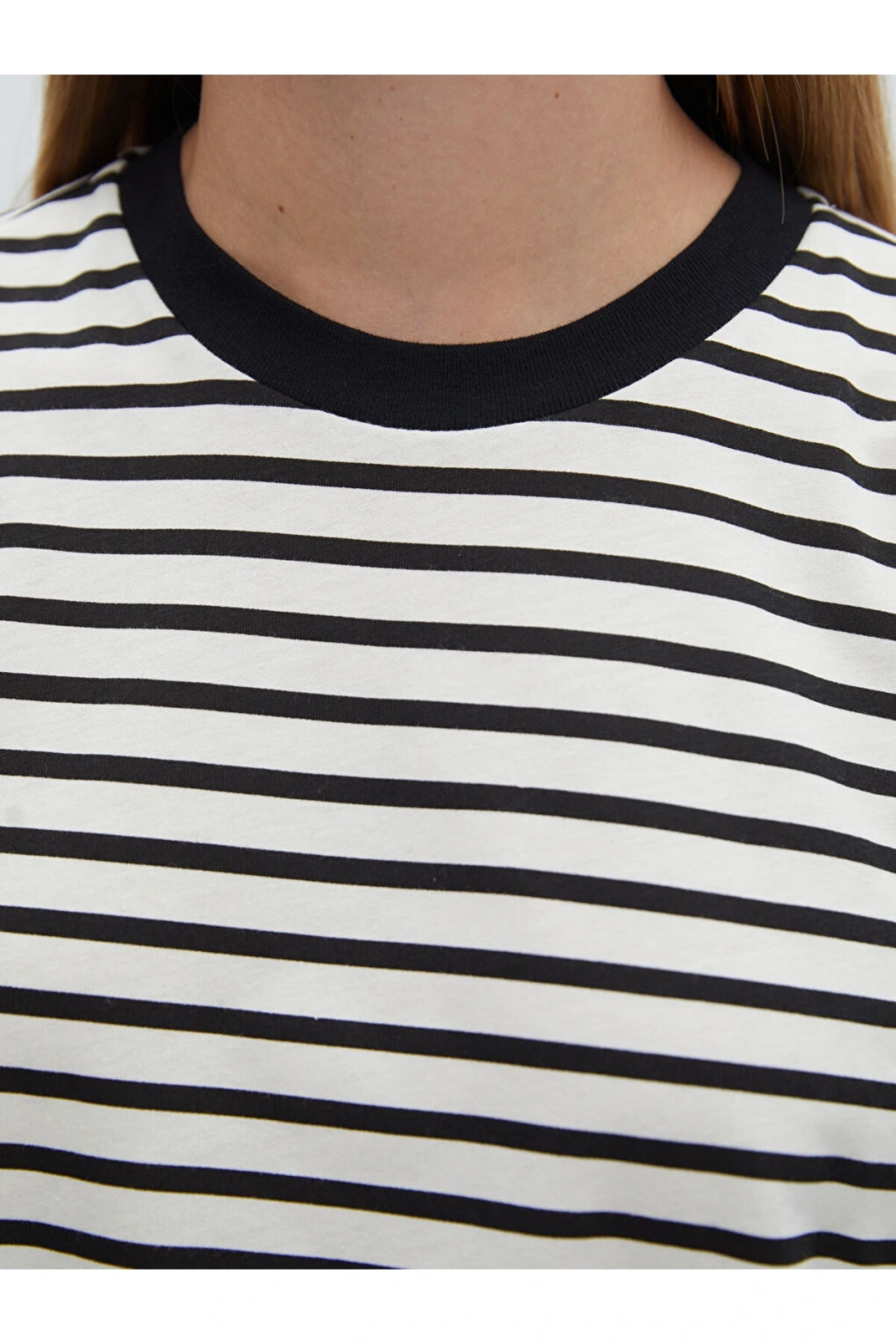 Cinsiyet: Kadın-Ürün Tipi: Tişört-Kumaş: Penye-Kalıp: Loose & Bol-Kalınlık: Orta Kalınlık-Yaka: Bisiklet Yaka-Ana Kumaş: %100 Pamuk-Desen: Çizgili-Malzeme: %100 Pamuk-Kol Boyu: Kısa Kollu.; Açıklama Çizgili bisiklet yaka kısa kollu tişört, tarzı ve rahatlığı bir araya getirir Hafif ve nefes alabilen kumaşıyla sıcak günlerde ferah bir giyim deneyimi sunar