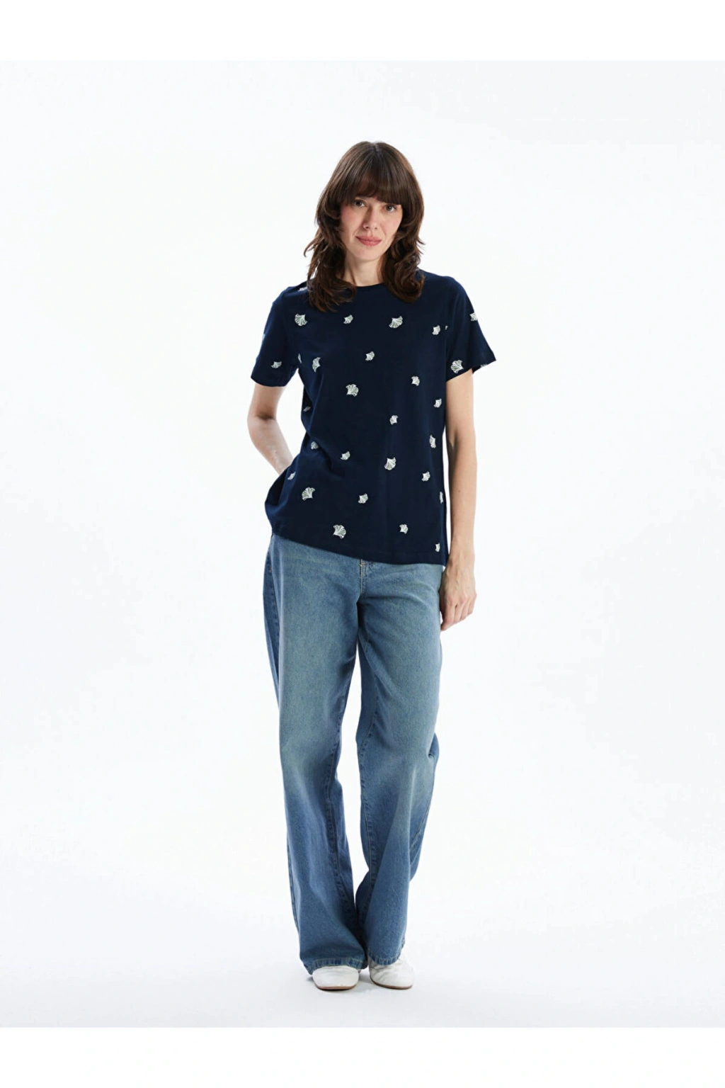 Cinsiyet: Kadın-Ürün Tipi: -Kumaş: Penye-Kalıp: Loose & Bol-Kalınlık: İnce-Yaka: Bisiklet Yaka-Ana Kumaş: %100 Pamuk-Desen: Desenli-Malzeme: %100 Pamuk-Kol Boyu: Kısa Kollu.; Açıklama Kısa kollu desenli tişört, süprem kumaştan üretilmiştir Rahatlığı ve yumuşak dokusuyla dikkat çekerken, bisiklet yaka tasarımıyla da modern bir görünüm sunar