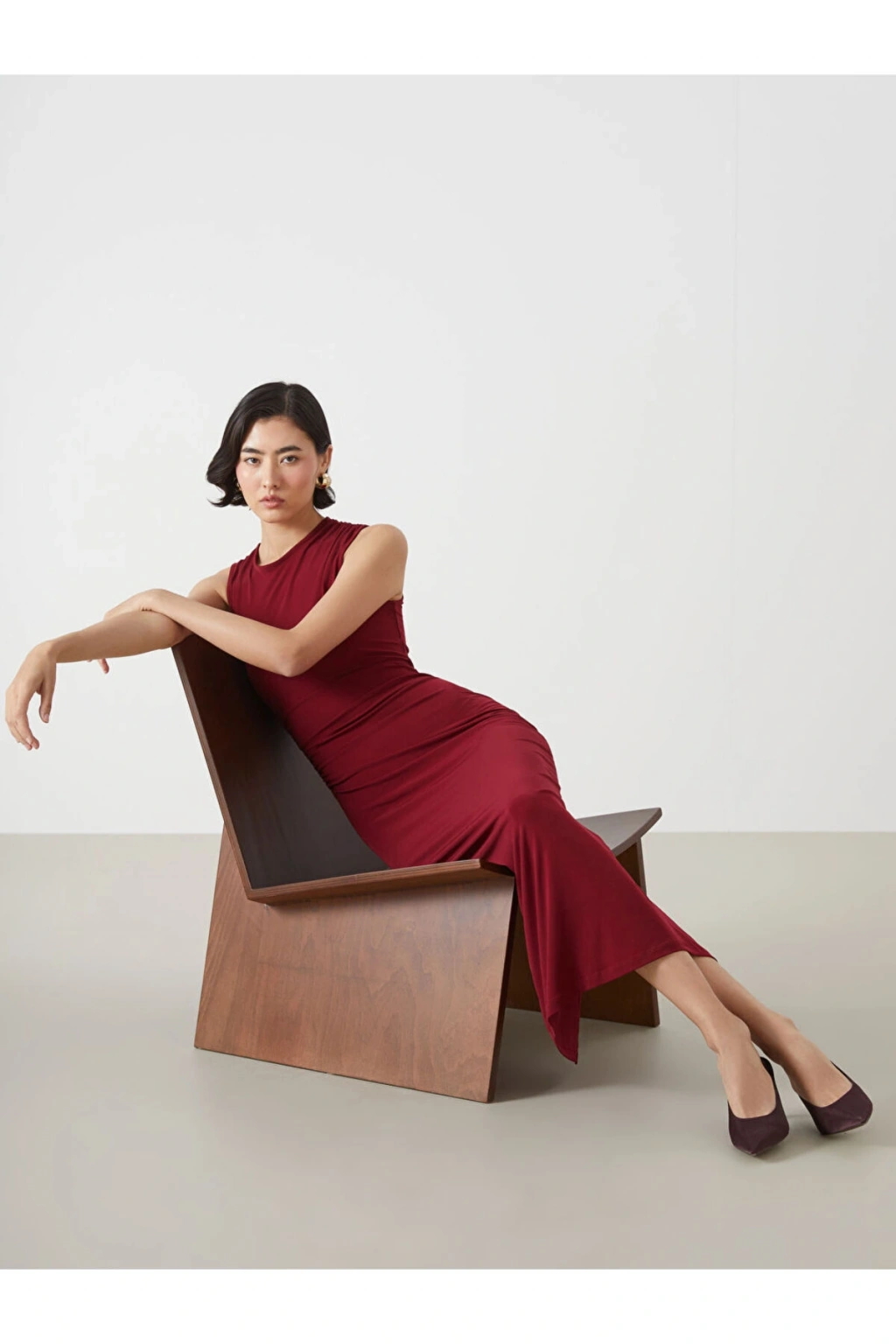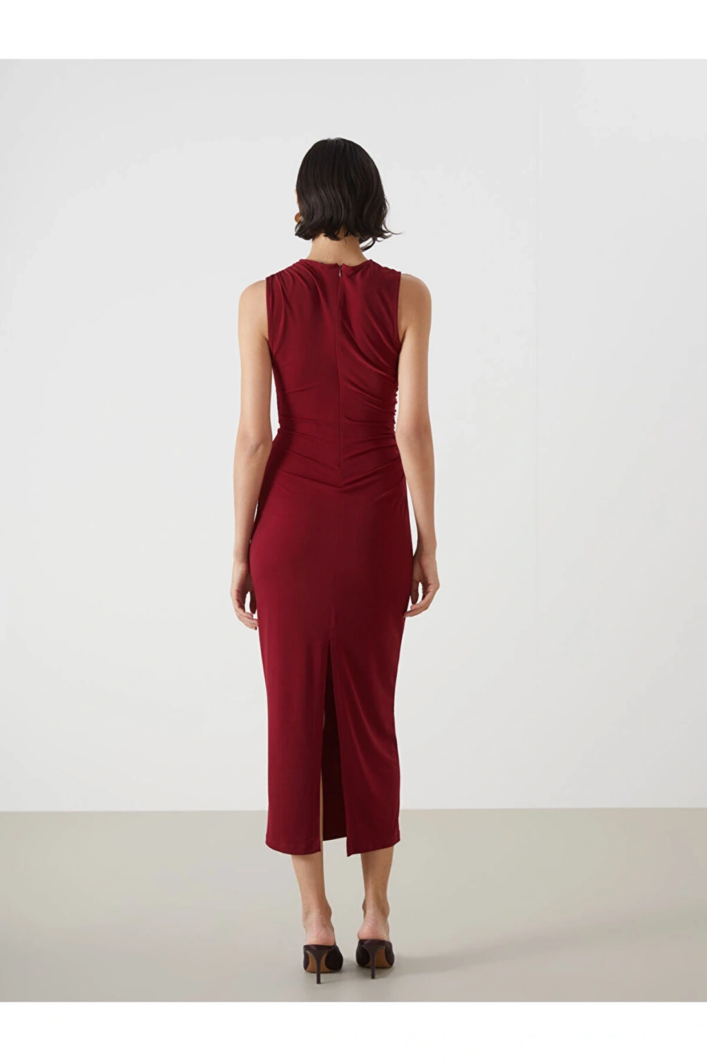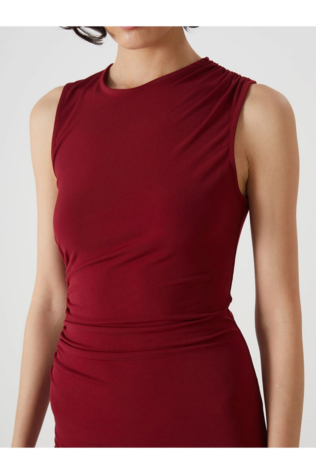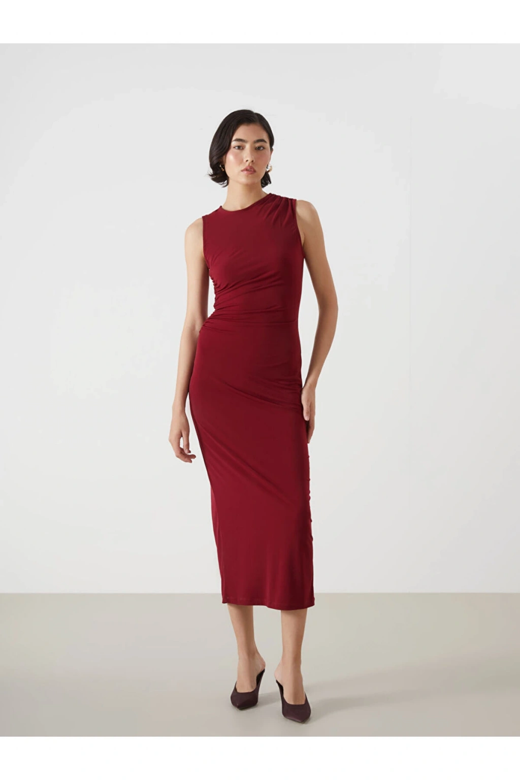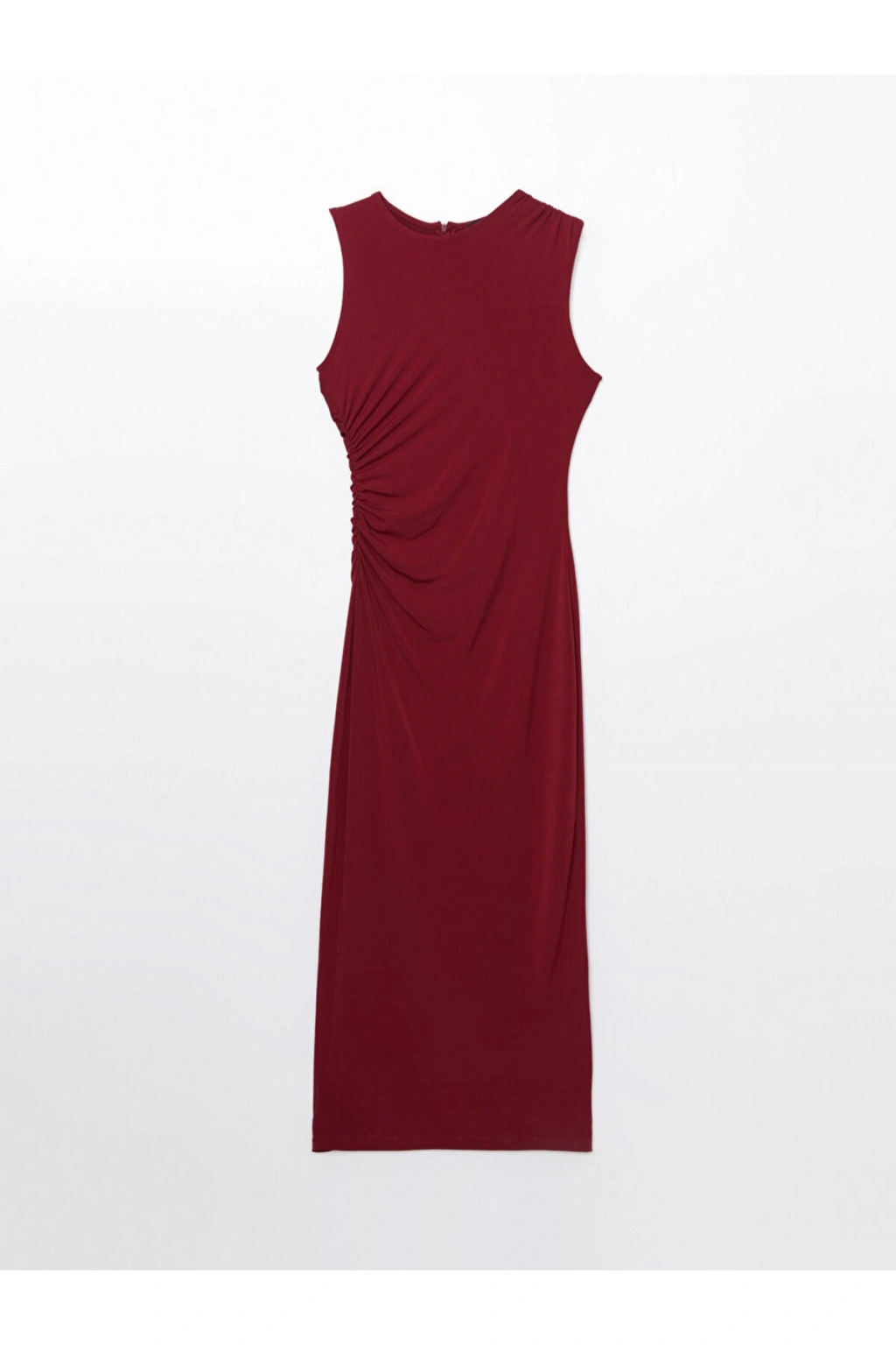Cinsiyet: Kadın-Ürün Tipi: Elbise-Kumaş: Krep-Kalıp: Dar & Slim-Kalınlık: -Yaka: Bisiklet Yaka-Ana Kumaş: %5 ELASTAN %95 Polyester-Desen: Düz-Malzeme: -Kol Boyu: Kolsuz.; Açıklama Bisiklet yaka kadın elbise, yan tarafında yer alan büzgü detayı ile sofistike ve modern bir görünüm sunar Arkadan fermuar kapaması, kolay giyim ve çıkarma imkanı sağlarken, elbisenin şık ve dar kesimi her türlü etkinlik için ideal bir seçenektir