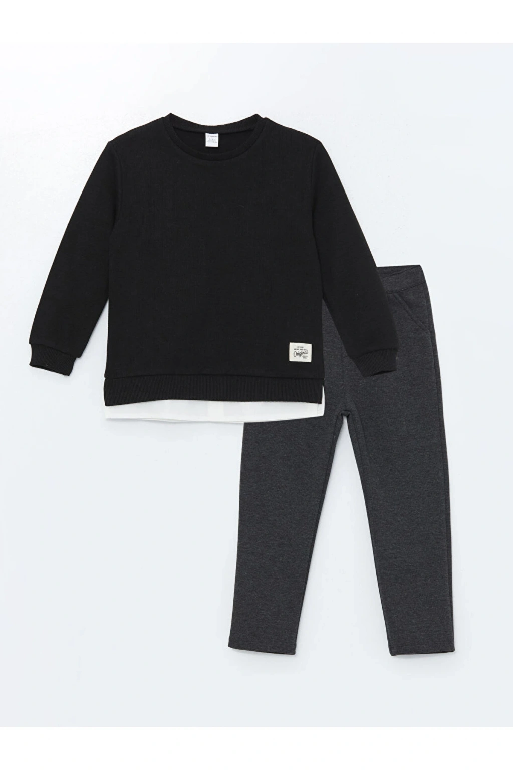 LCW Kids Siyah Bisiklet Yaka Erkek Çocuk Kalın Eşofman Takımı