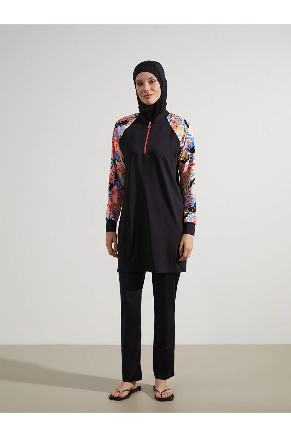 Ürün Açıklaması Dik yakalı kadın tesettür mayo, önden yarım fermuar kapamalıdır.; Reglan kesimli uzun kolları desenli ve manşetlidir.; Manken Bilgisi Göğüs: 85 cm Bel: 61 cm Basen: 89 cm Boy: 176 cm Manken 38 beden ürün giyiyor.; Ürün İçeriği ve Özellikleri Ürün İçeriği: Ana Kumaş: %13 ELASTAN %87 Polyester Ürün Özellikleri: Satıcı: LC Waikiki Marka: LCW DREAM Ürün Tipi: Tesettür Mayo Cinsiyet: Kadın Kalıp: Standart & Regular Desen: Desenli Kol Boyu: Uzun Kollu Yaka: Kolej Yaka Koleksiyon: Büyük Beden Menşei: TURKIYE
