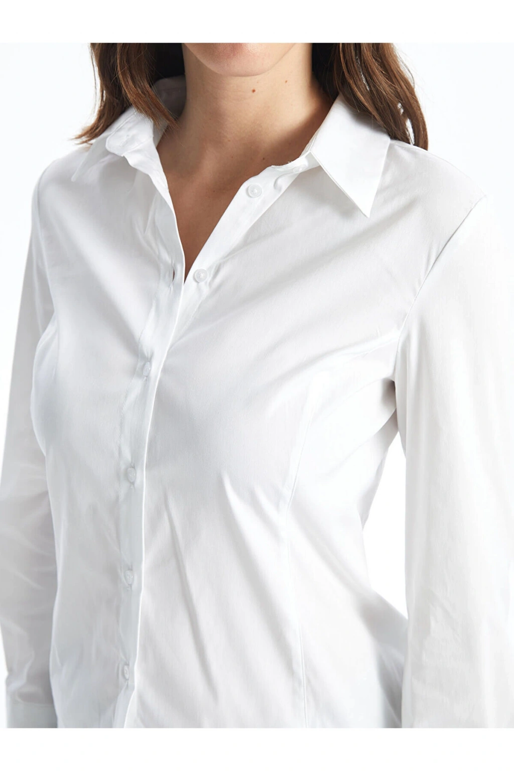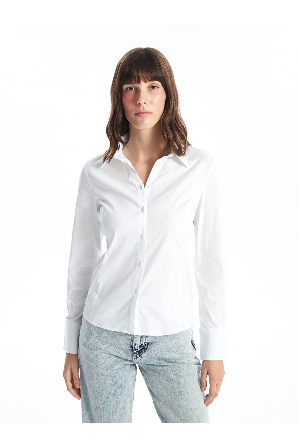 Ürün Özellikleri: Satıcı: LC Waikiki Marka: LCW Vision Ürün Tipi: Gömlek Cinsiyet: Kadın Kalıp: Dar & Slim Kumaş: Poplin Desen: Düz Yaka: Gömlek Yaka Kalınlık: İnce Kol Boyu: Uzun Kollu Malzeme: Yüksek Pamuk İçerir Koleksiyon: Ofise Dönüş