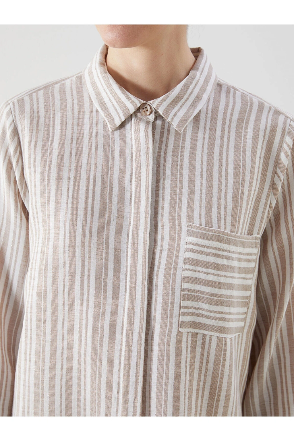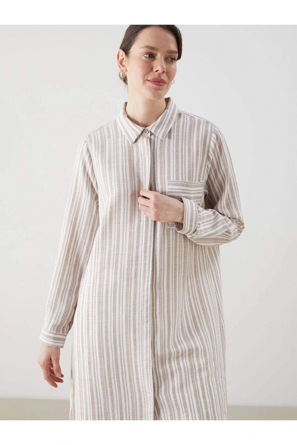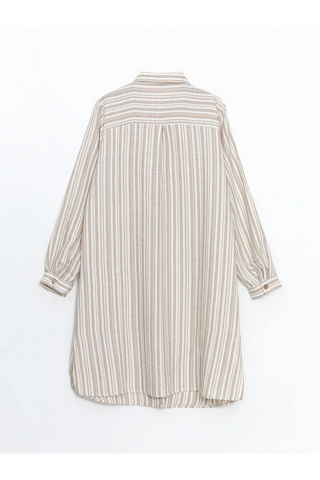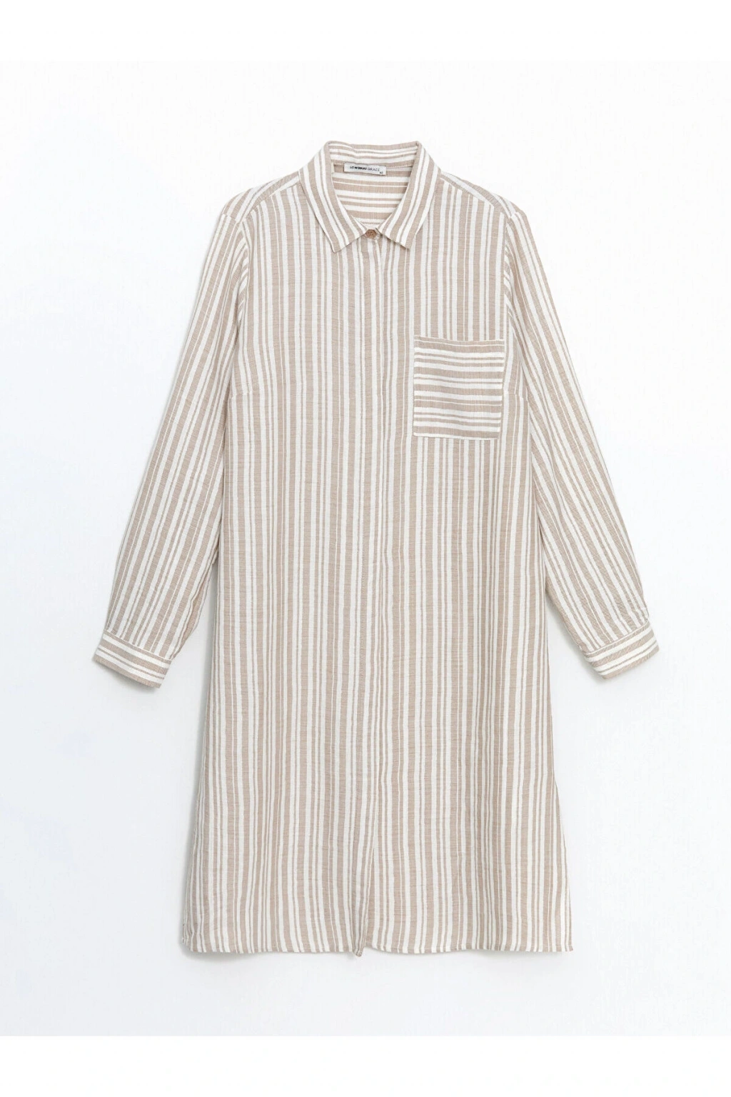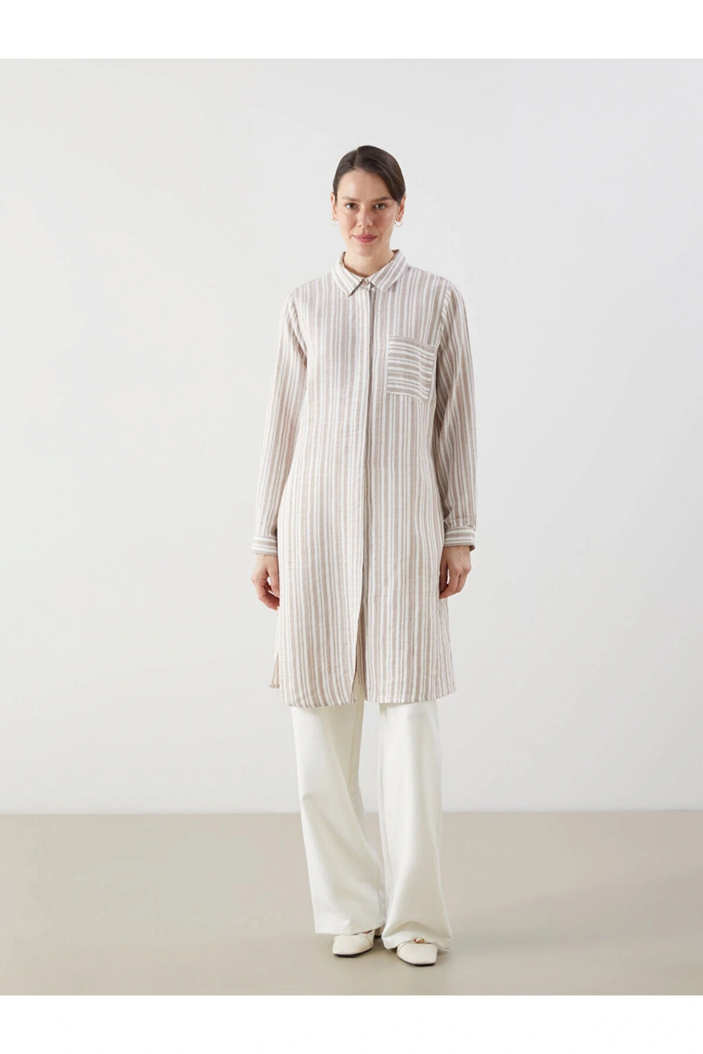 Çizgili keten görünümlü kadın gömlek tunik, hafif ve nefes alabilen yapısıyla yaz aylarına mükemmel uyum sağlar.; Keten görünümlü kumaşı, doğal bir şıklık sunarken, çizgili deseni ile zamansız bir stil yaratır.; Ürün Özellikleri: Satıcı: LC Waikiki Marka: LCW Grace Ürün Tipi: Gömlek Tunik Cinsiyet: Kadın Desen: Çizgili Kalınlık: İnce Kalıp: Standart & Regular Kol Boyu: Uzun Kollu Kumaş: Keten Görünümlü Malzeme: Yüksek Pamuk İçerir Uzunluk: Diz Yüksekliğinde Yaka: Gömlek Yaka
