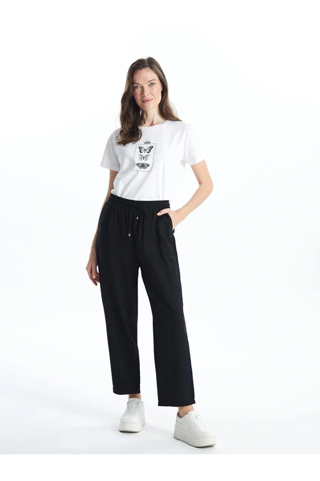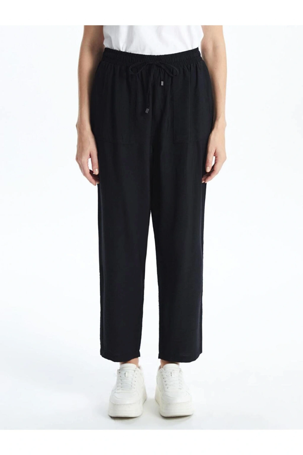 Ürün Açıklaması Beli lastikli kadın pantolon, belindeki bağlama detayı ile hem estetik bir görünüm sunar hem de kişisel uyuma göre ayarlanabilir bir konfor sağlar.; İki yandan eklenen cepler ise pratiklik sağlayarak, küçük eşyalarınızı yanınızda taşımanıza sağlar.; Manken Bilgisi Göğüs: 87 cm Bel: 60 cm Basen: 90 cm Boy: 175 cm Manken 40 beden ürün giyiyor.; Ürün İçeriği ve Özellikleri Ürün İçeriği: Ana Kumaş: %12 Poliamid %88 VİSKOZ Ürün Özellikleri: Satıcı: LC Waikiki Marka: LCW Grace Ürün Tipi: Pantolon Cinsiyet: Kadın Kalıp: Loose & Bol Desen: Düz Kalınlık: İnce Uzunluk: Bilek Boy