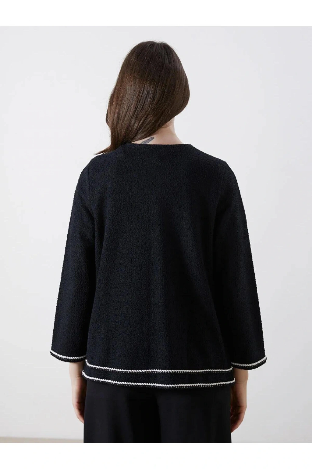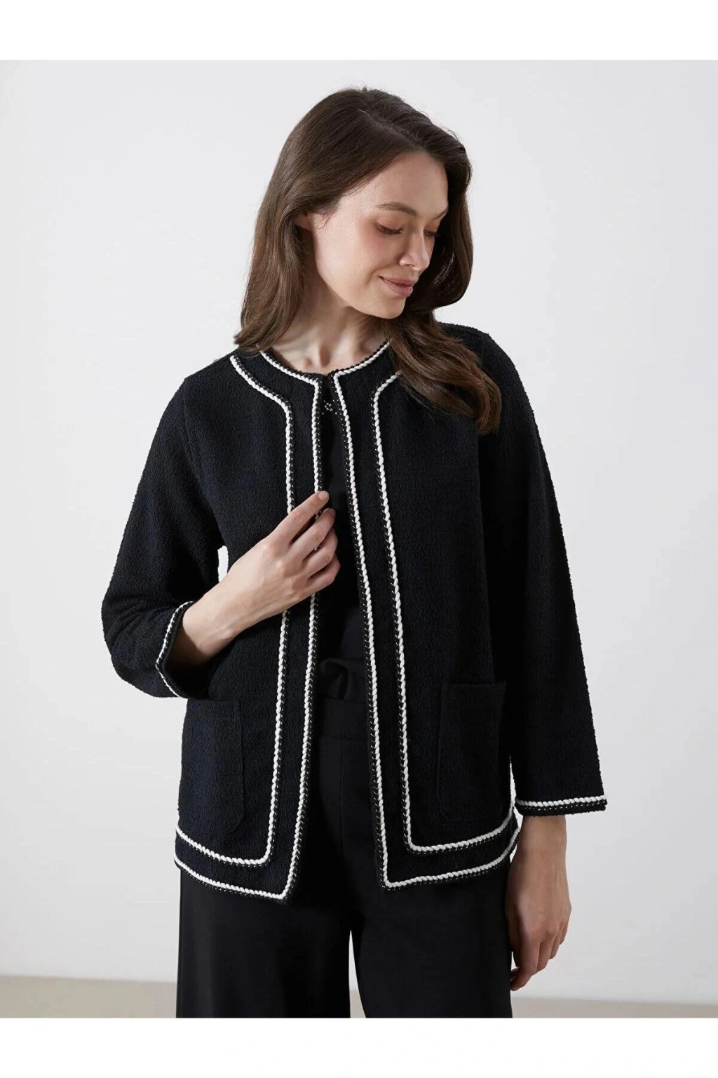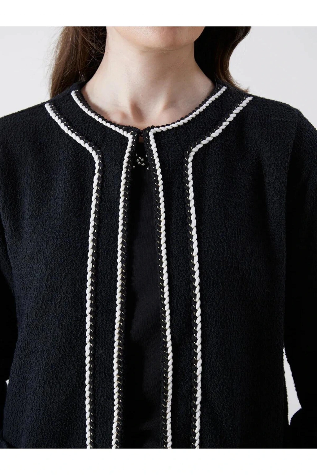 Siyah Bisiklet Yaka Kadın Triko Hırka