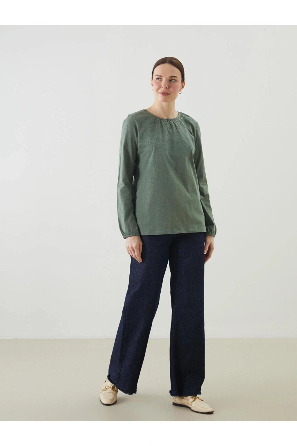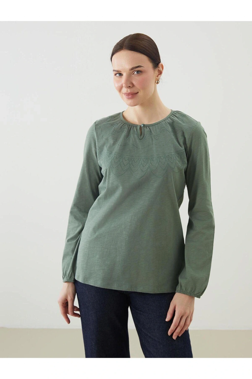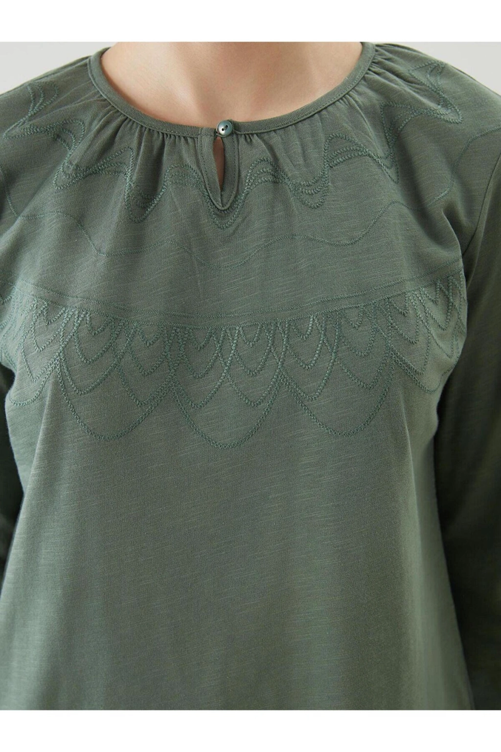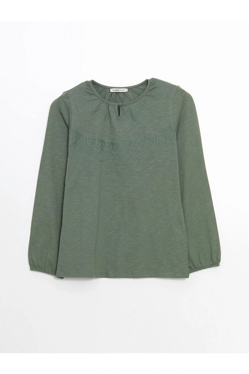 Ürün Açıklaması Uzun kollu tişört bisiklet yaka tasarımlı penye kumaştan üretilmiştir.; Manken Bilgisi Göğüs: 85 cm Bel: 64 cm Basen: 90 cm Boy: 175 cm Manken S beden ürün giyiyor.; Ürün İçeriği ve Özellikleri Ürün İçeriği: Ana Kumaş: %100 Pamuk Ürün Özellikleri: Satıcı: LC Waikiki Marka: LCW Grace Ürün Tipi: Tişört Cinsiyet: Kadın Kalıp: Standart & Regular Yaka: Bisiklet Yaka Desen: Nakışlı Kumaş: Penye Kalınlık: İnce Kol Boyu: Uzun Kollu Malzeme: %100 Pamuk