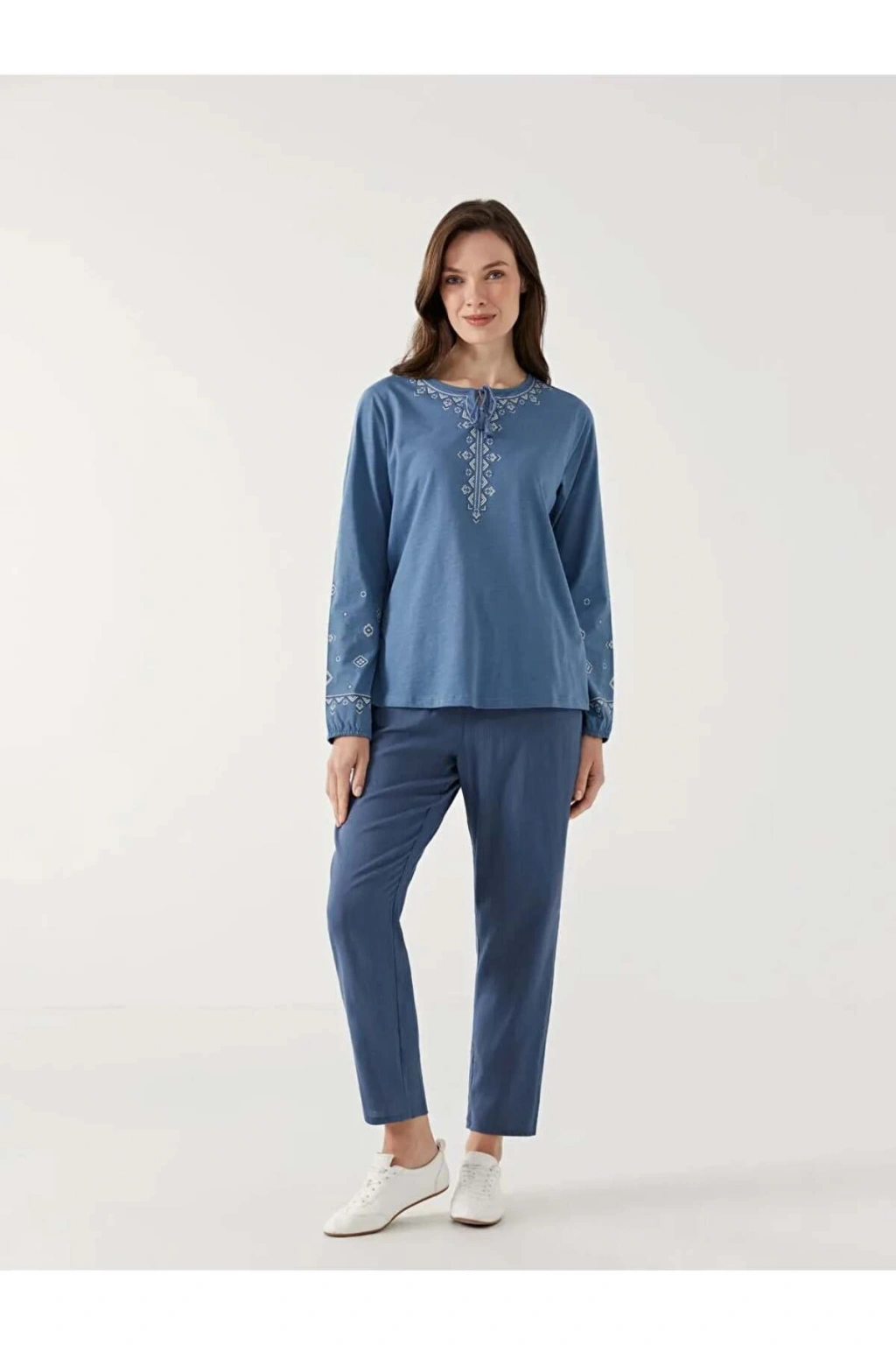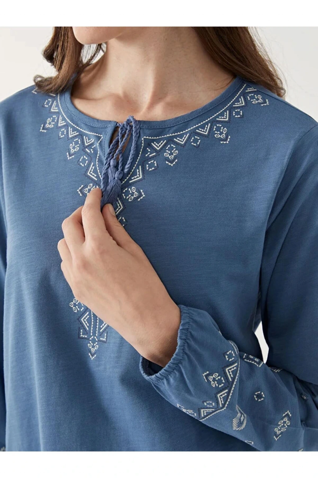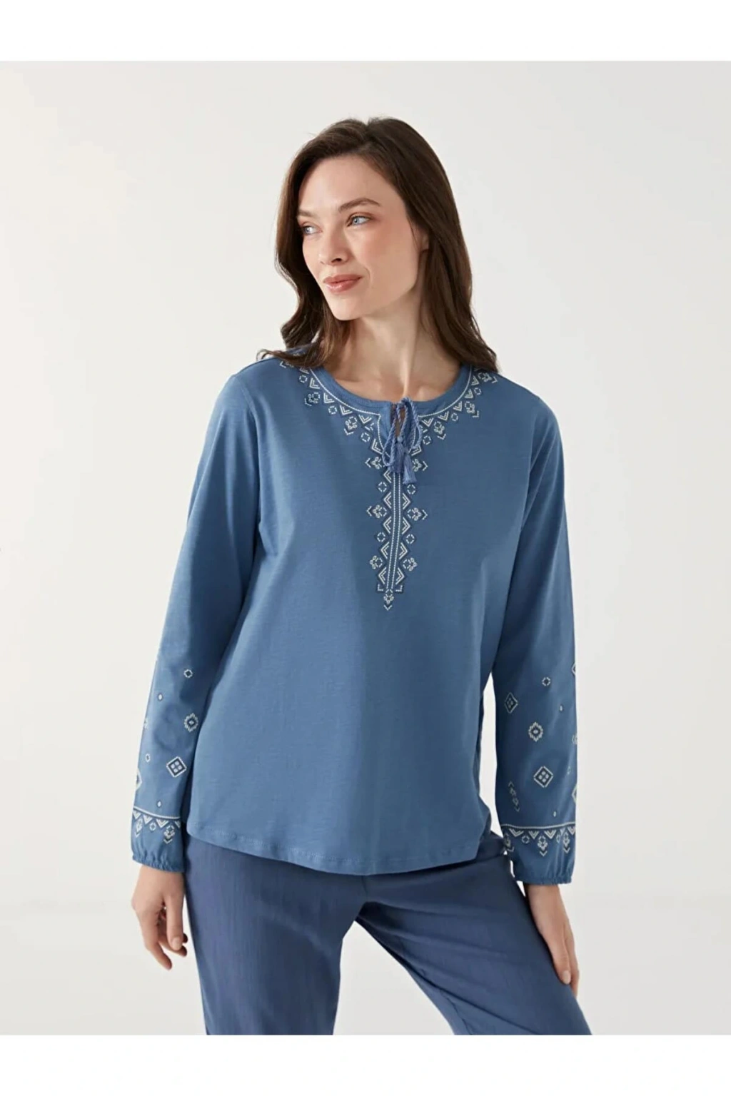 Bağlamalı yaka desenli kadın bluz, zarif bağlama detayı ve kol uçlarındaki lastikli tasarımıyla hem şık hem de konforlu bir seçim sunar. Bu özellikler, bluzu hem günlük kullanım hem de özel etkinlikler için ideal kılar.