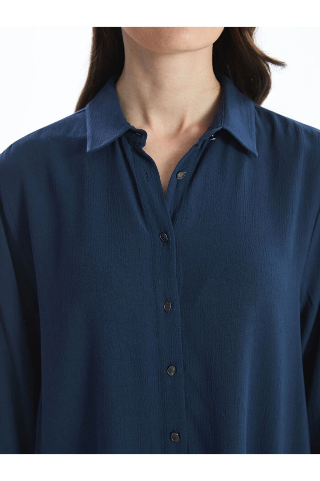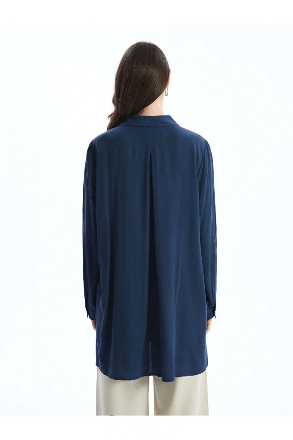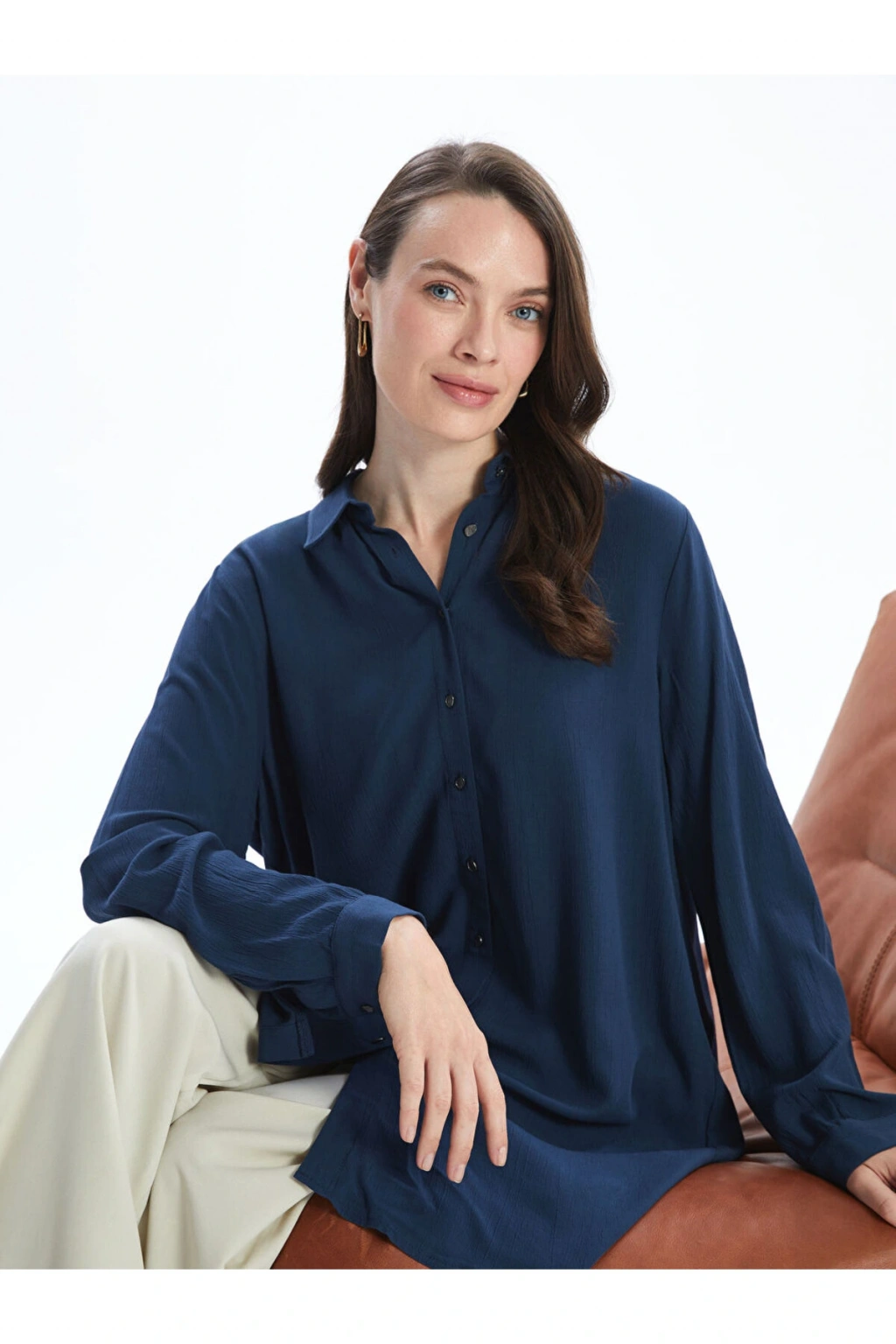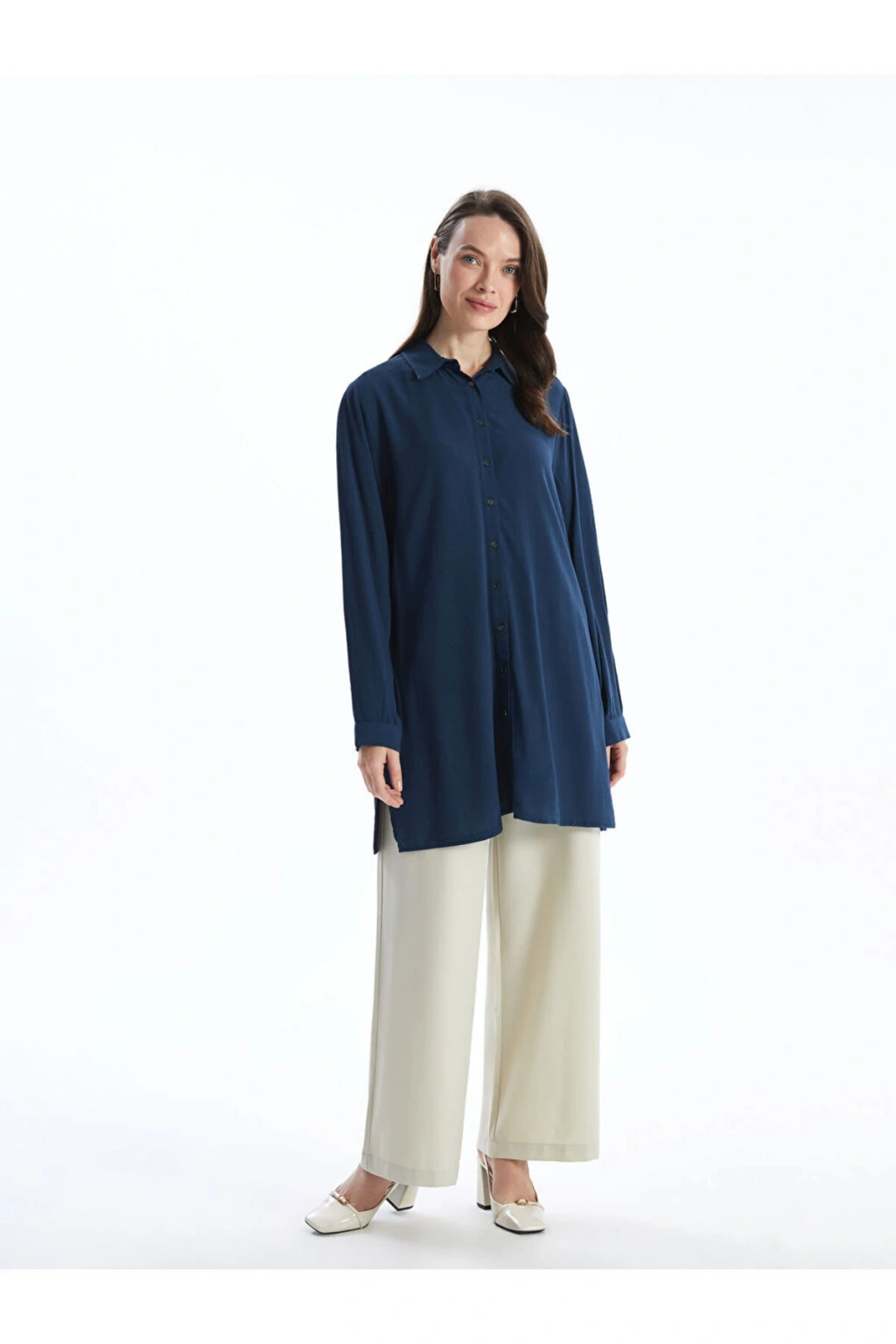 Düz uzun kollu gömlek tunik, viskoz kumaştan üretilmiştir ve yumuşak bir dokuya sahiptir. Hafif ve ince yapısı ile rahat bir kullanım sunar. Önden düğme kapamalı tasarımı sayesinde kolaylıklar giyilip çıkarılabilir.