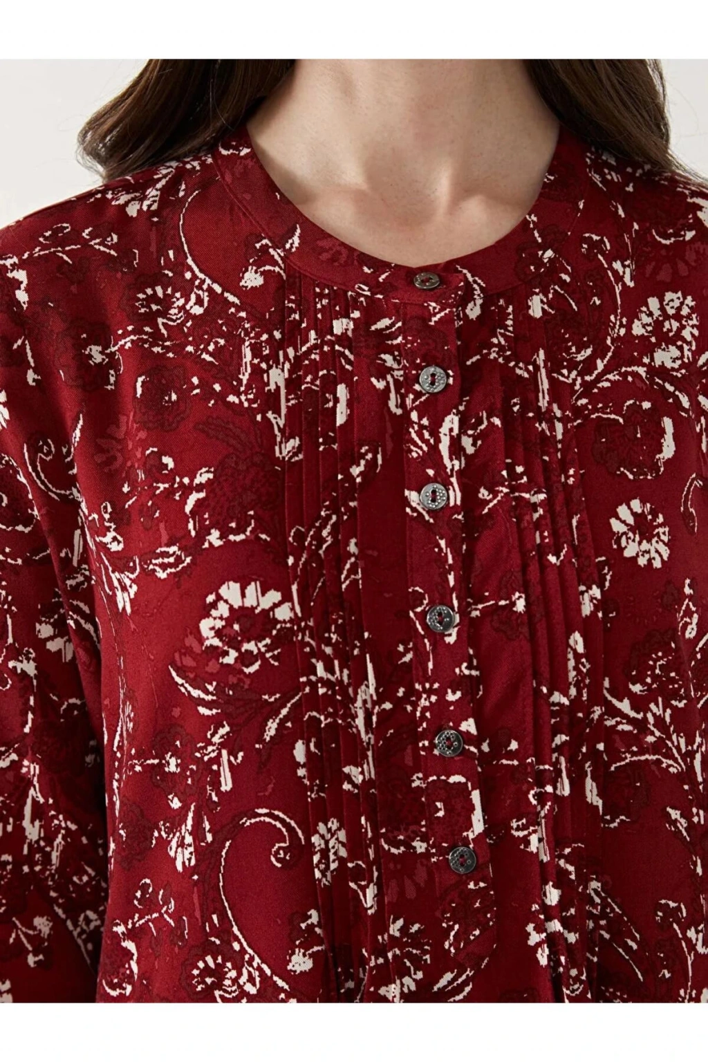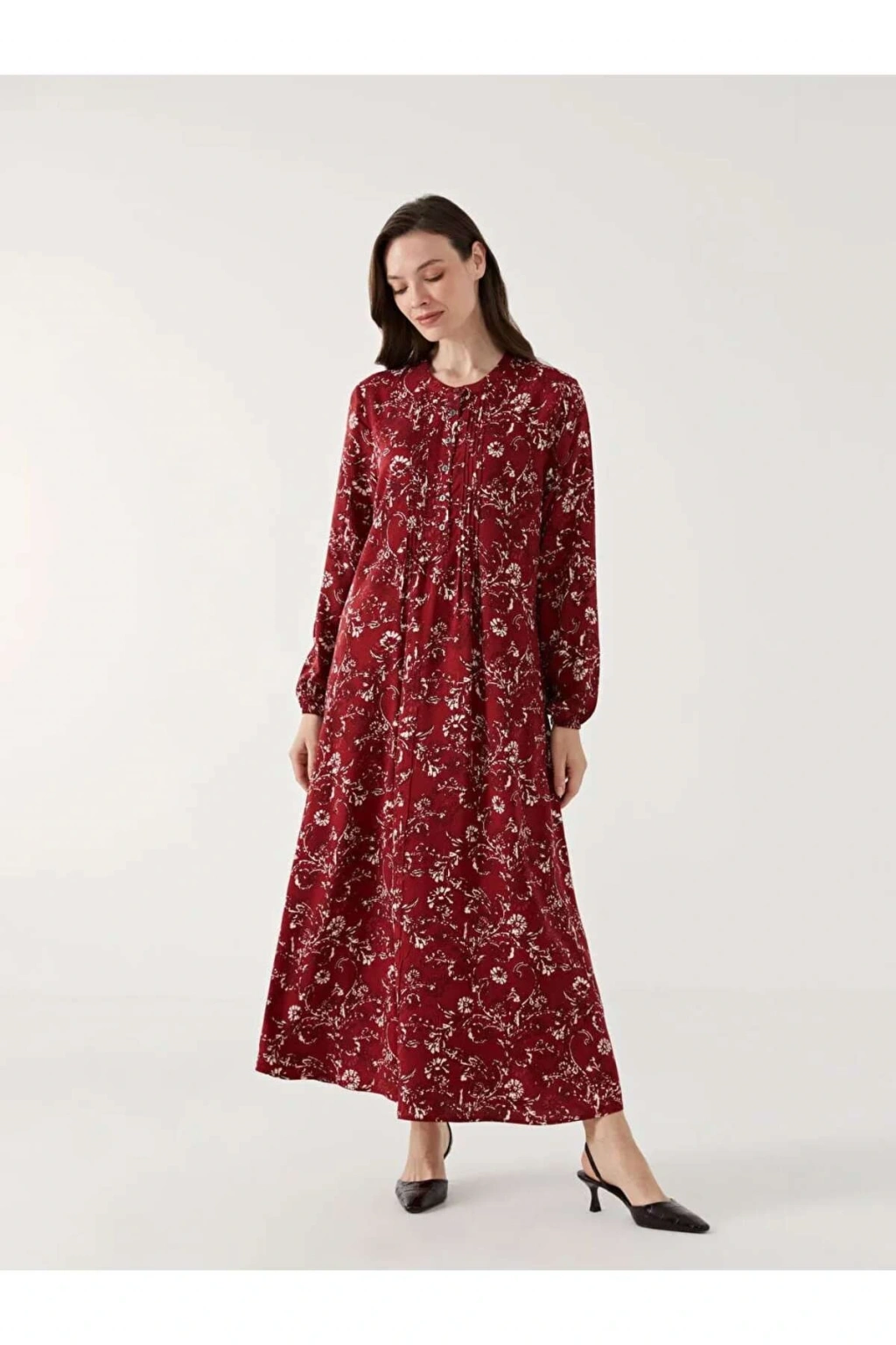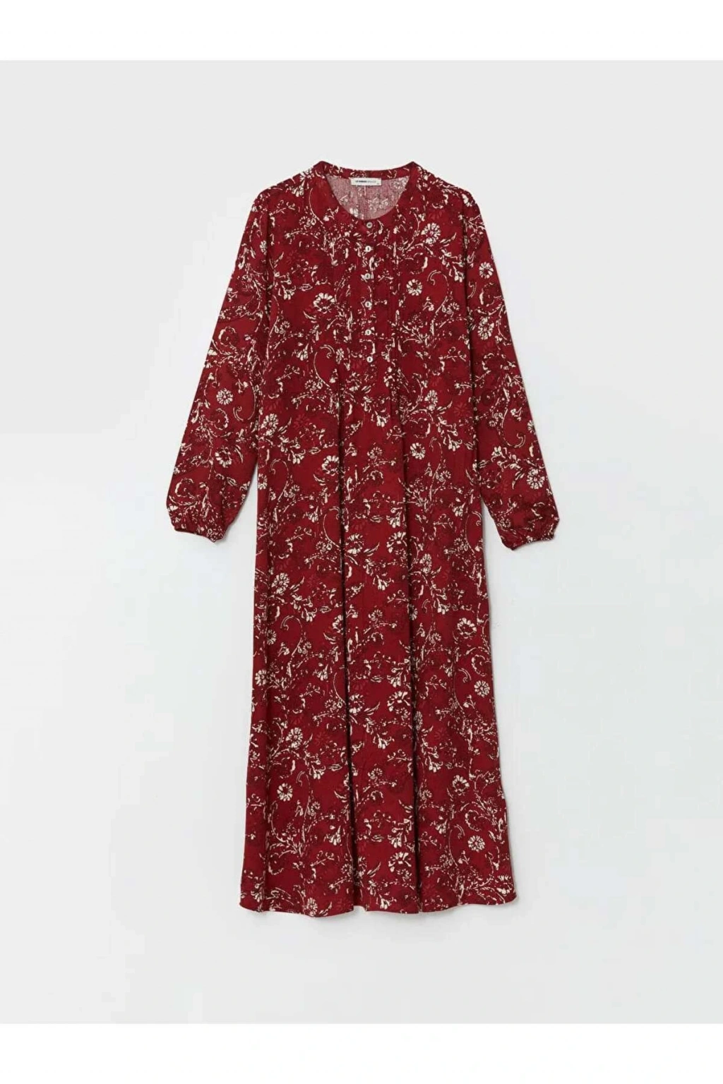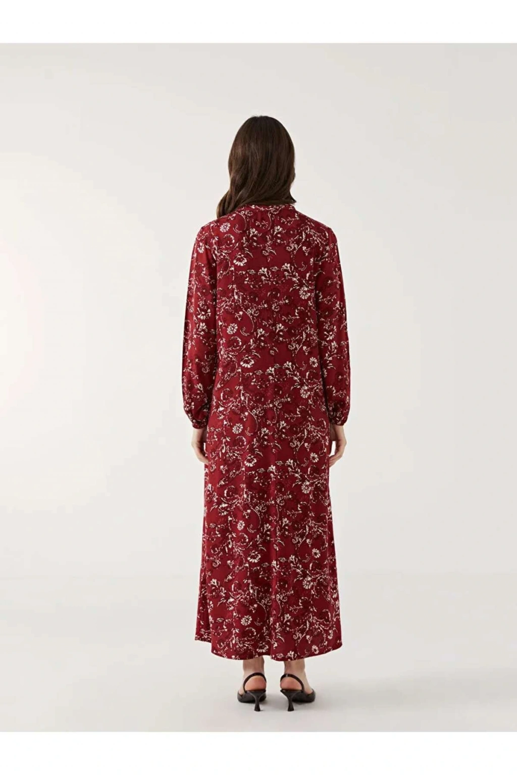 Bisiklet yaka, çiçekli uzun kollu kadın elbise viskoz kumaştan üretilmiştir. Hafif dokusu ve rahat kesimi ile gün boyu konfor sunar. Yakasındaki düğme kapama detayı giyinme kolaylığı sağlar. Bilekleri saran lastik detayı ile hoş bir görünüm oluşturur.