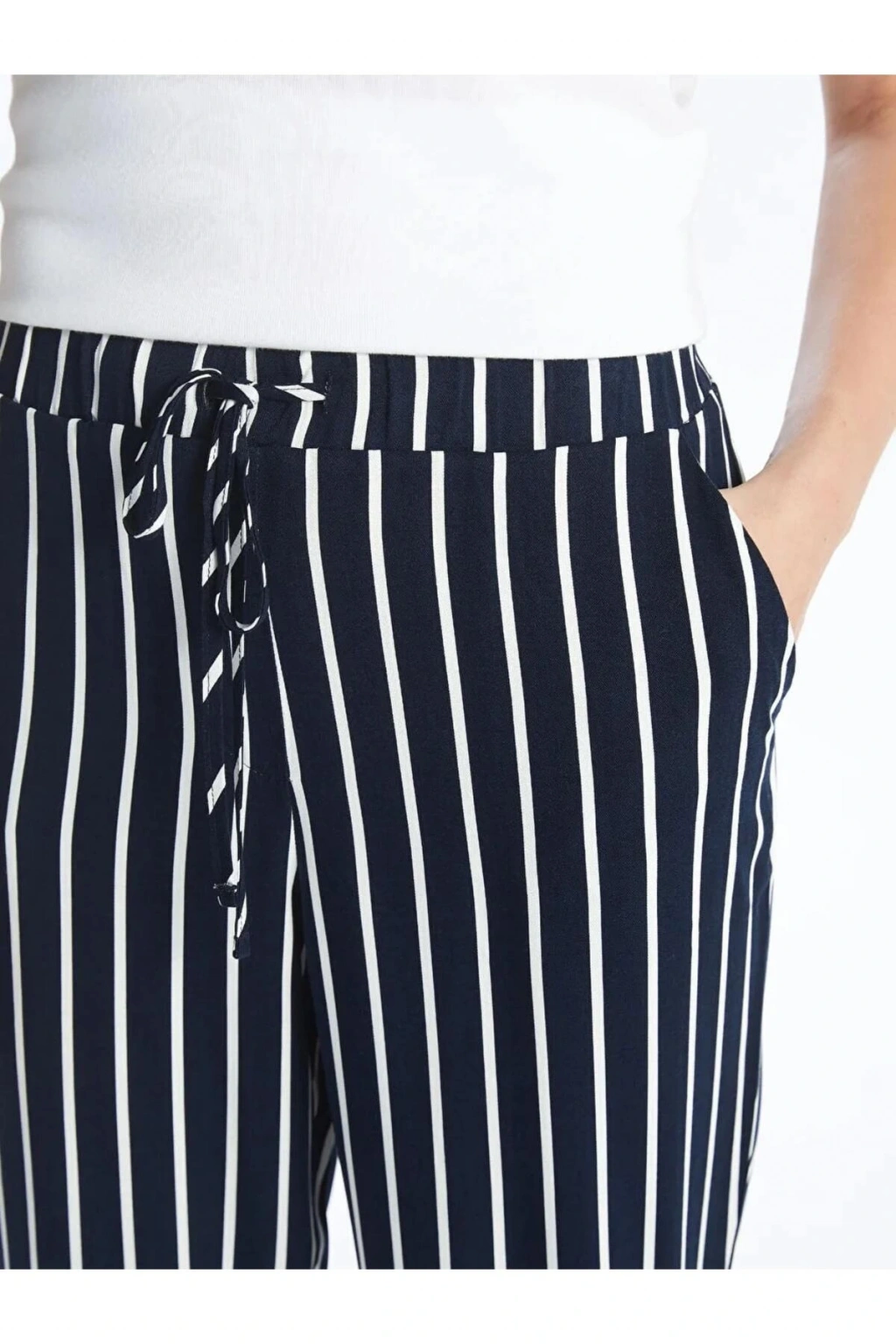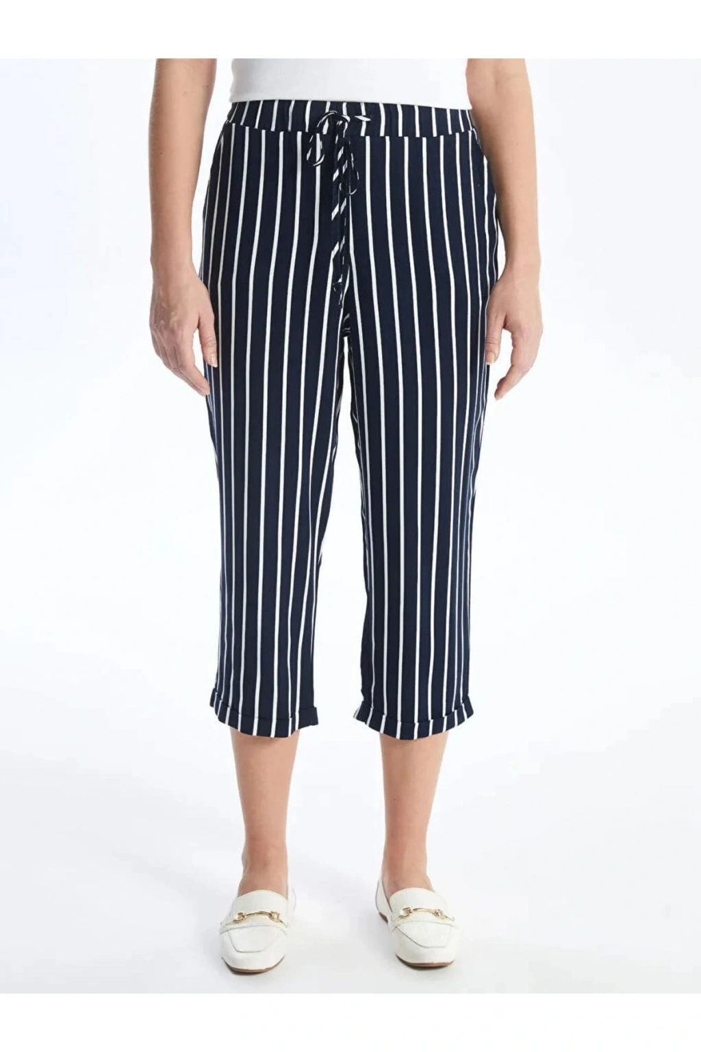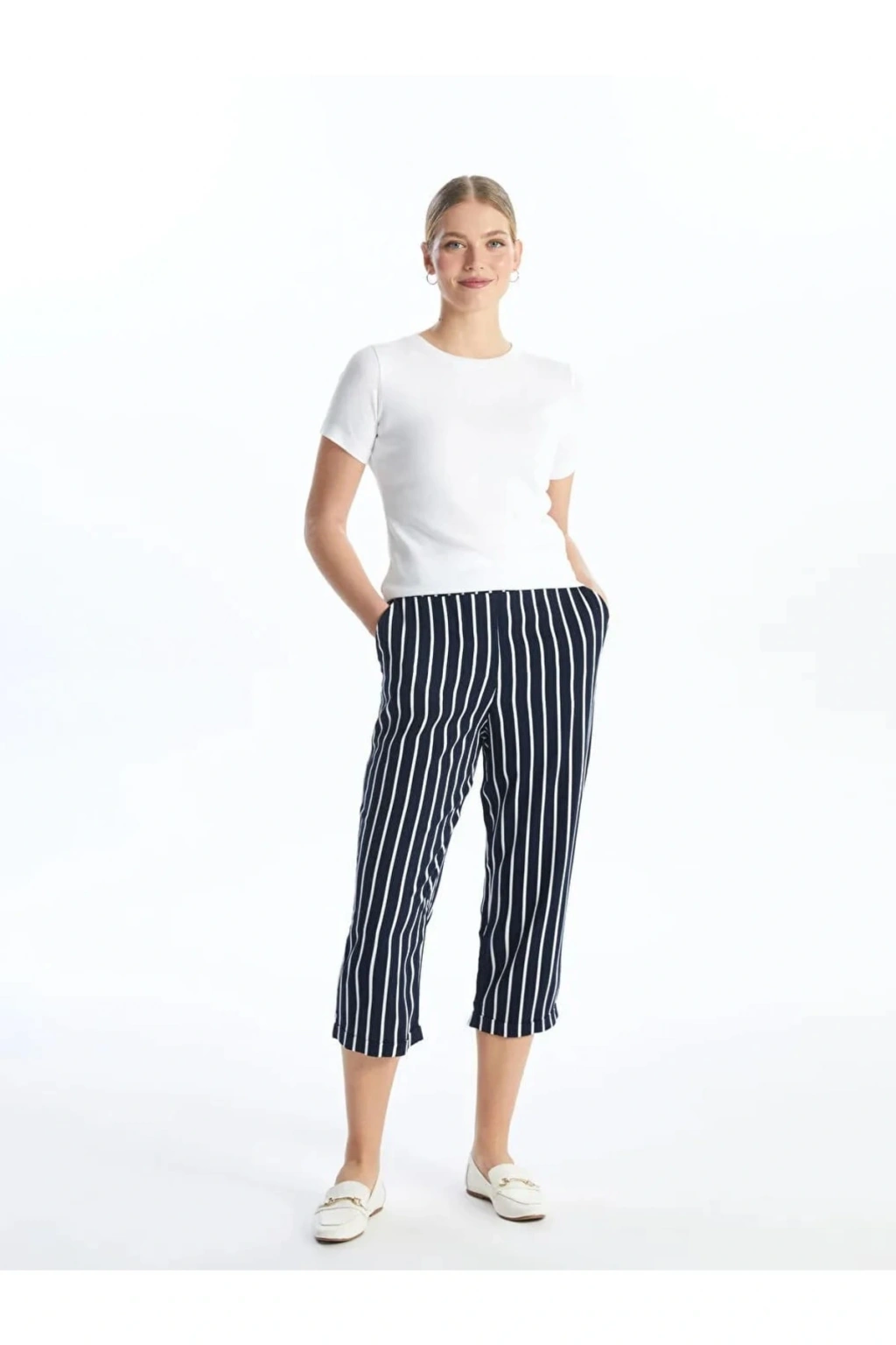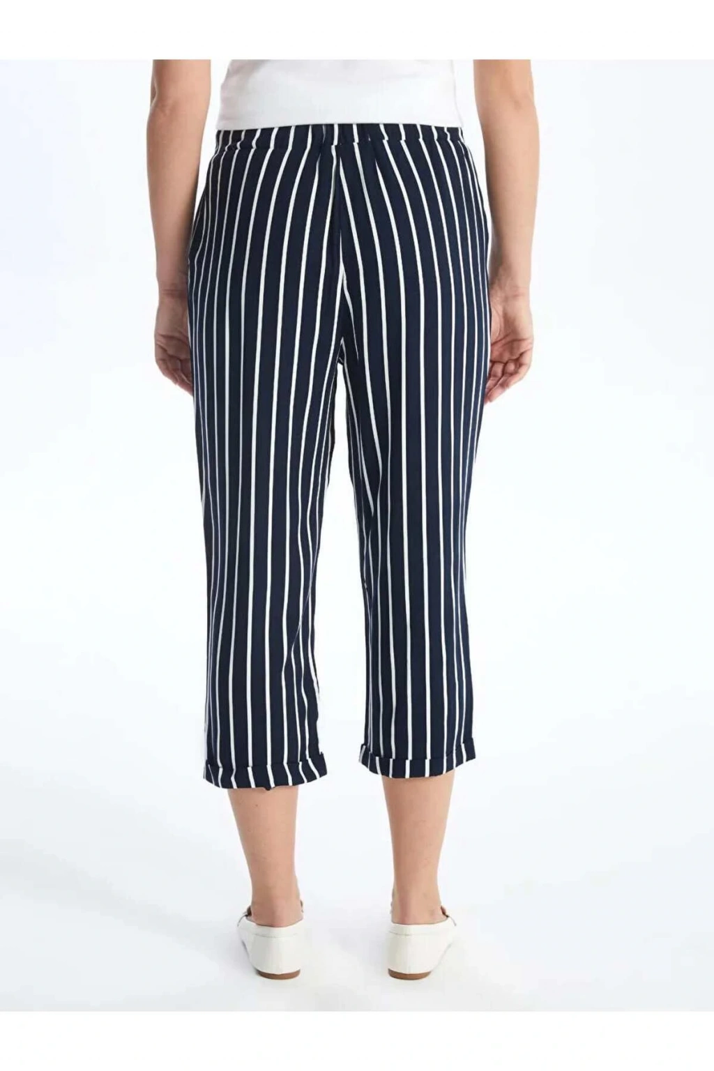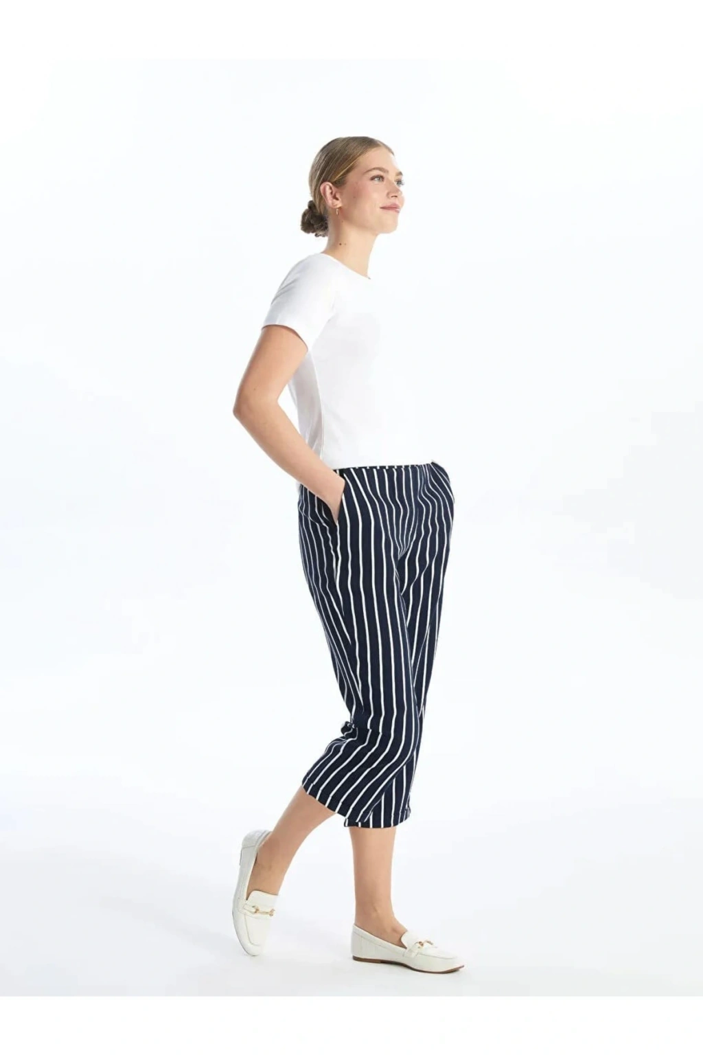 Beli lastikli çizgili kapri, viskoz elyaftan üretilmiştir ve yumuşak bir dokuya sahiptir. Belindeki lastik detayı sayesinde rahatlıkla giyilebilir ve belinizi sarar. Küçük eşyalarınızı pratik bir şekilde taşıyabilmeniz için 2 adet cep bölmesi bulunur.