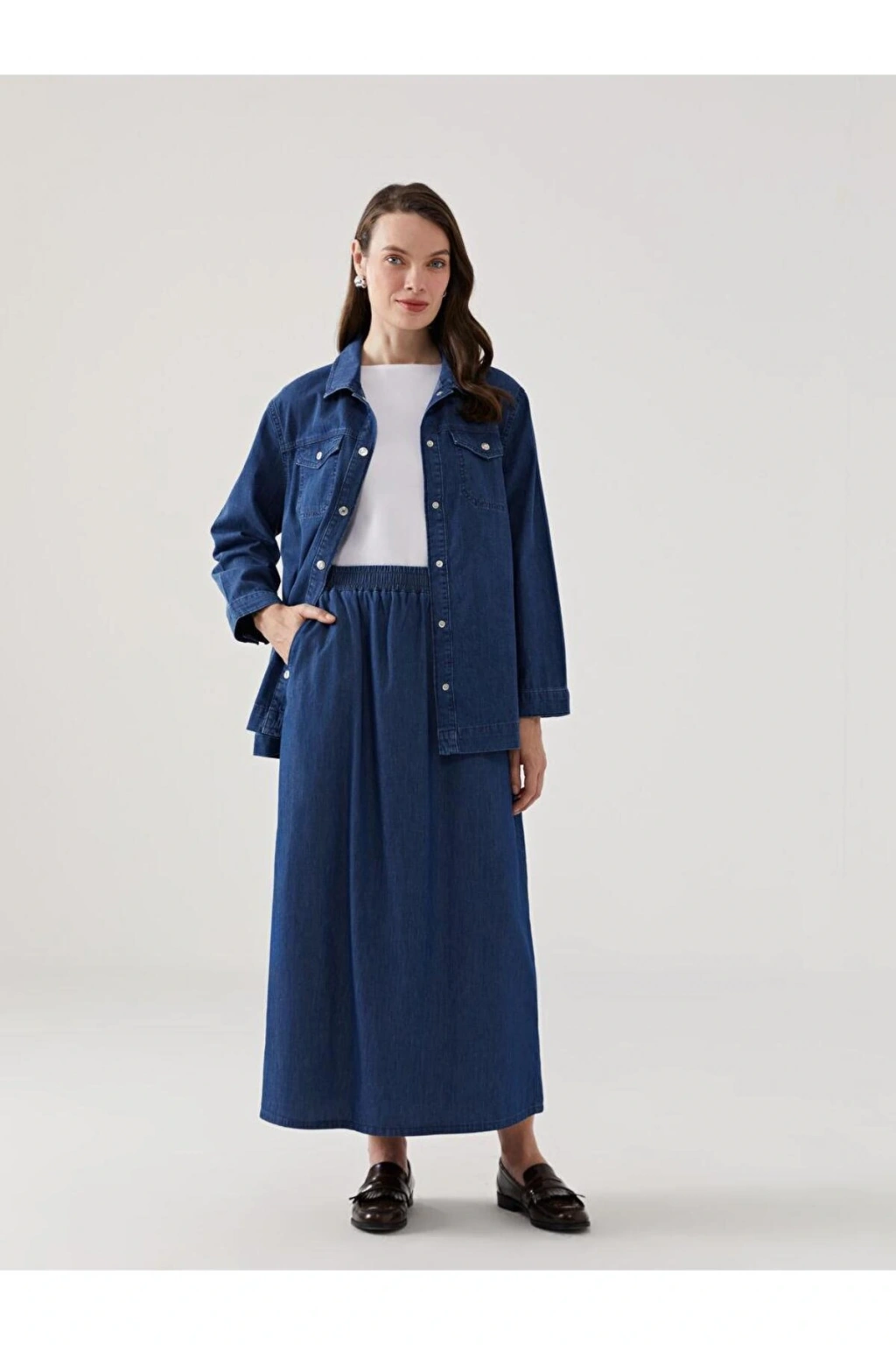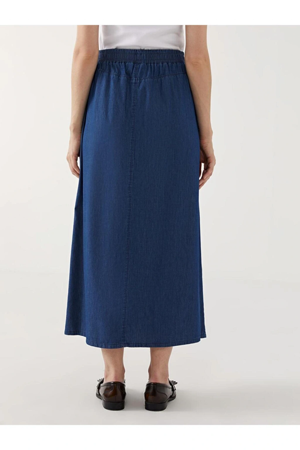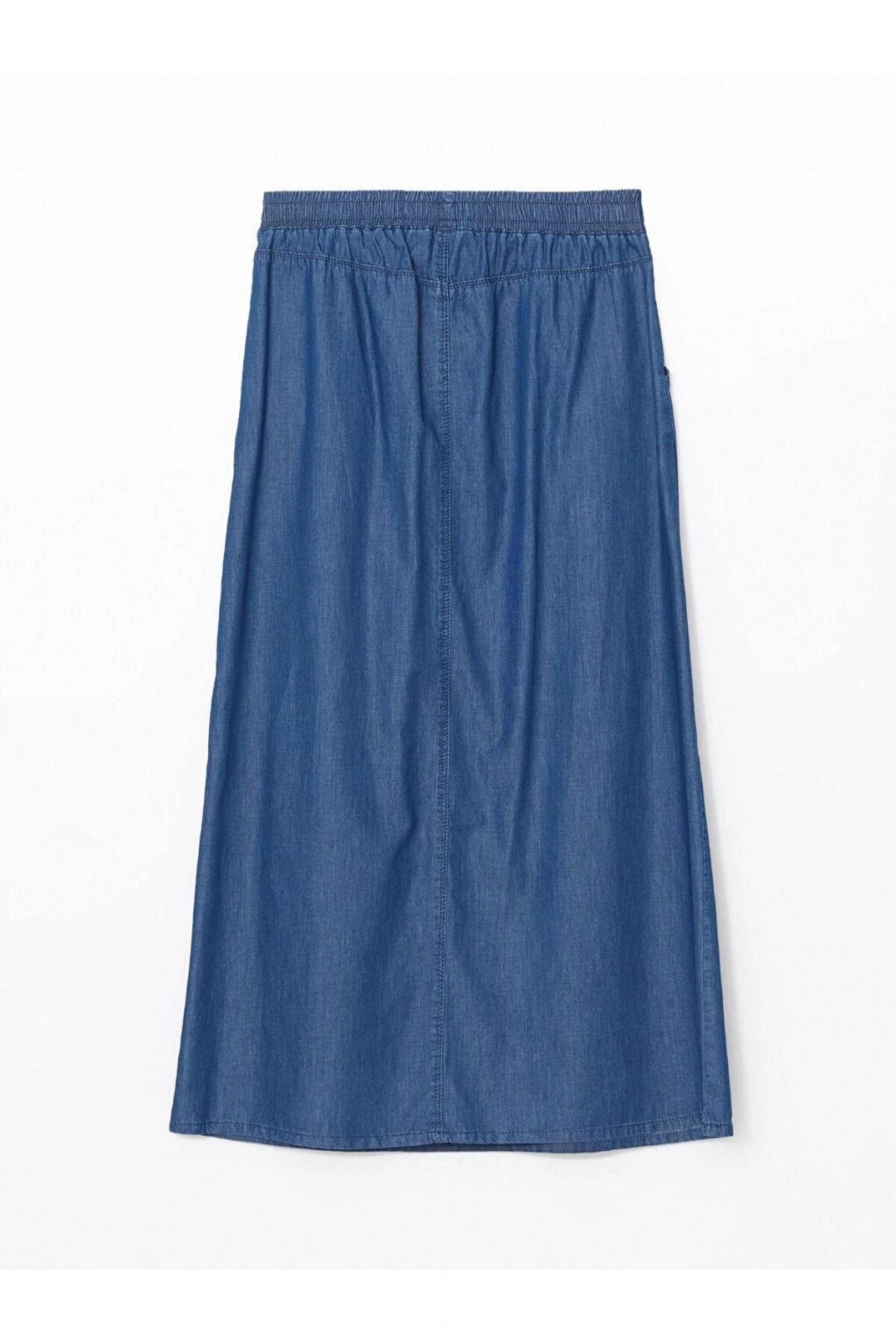 Ürün Açıklaması Loose fit jean etek, denim kumaştan üretilmiştir.; Dayanıklı denim kumaşın zor kırışan yapısı sayesinde ütü işlemi gerektirmez.; Belindeki saran lastikli tasarımı sayesinde vücudunuza uyum sağlar.; Manken Bilgisi Göğüs: 87 cm Bel: 60 cm Basen: 90 cm Boy: 175 cm Manken 40 beden ürün giyiyor.; Ürün İçeriği ve Özellikleri Ürün İçeriği: Ana Kumaş: %100 Pamuk Ürün Özellikleri: Satıcı: LC Waikiki Marka: LCW Grace Ürün Tipi: Jean Etek Cinsiyet: Kadın Kalıp: Loose & Bol Kumaş: Denim Bel Fiti: Beli Lastikli Desen: Düz Astar Detay: Astarsız Uzunluk: Midi Malzeme: %100 Pamuk