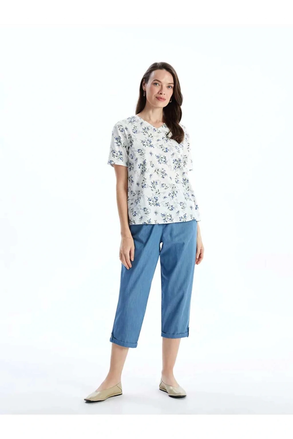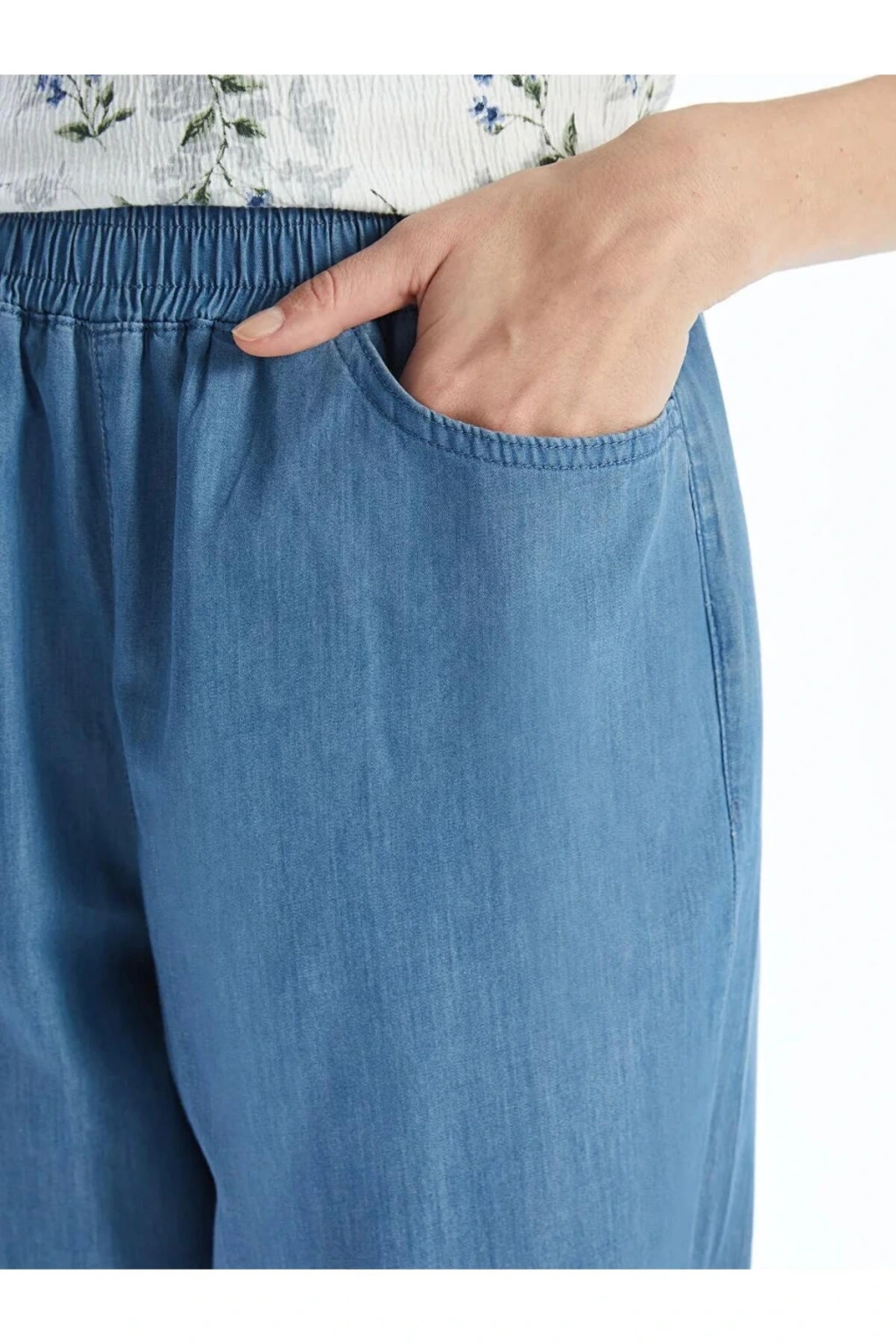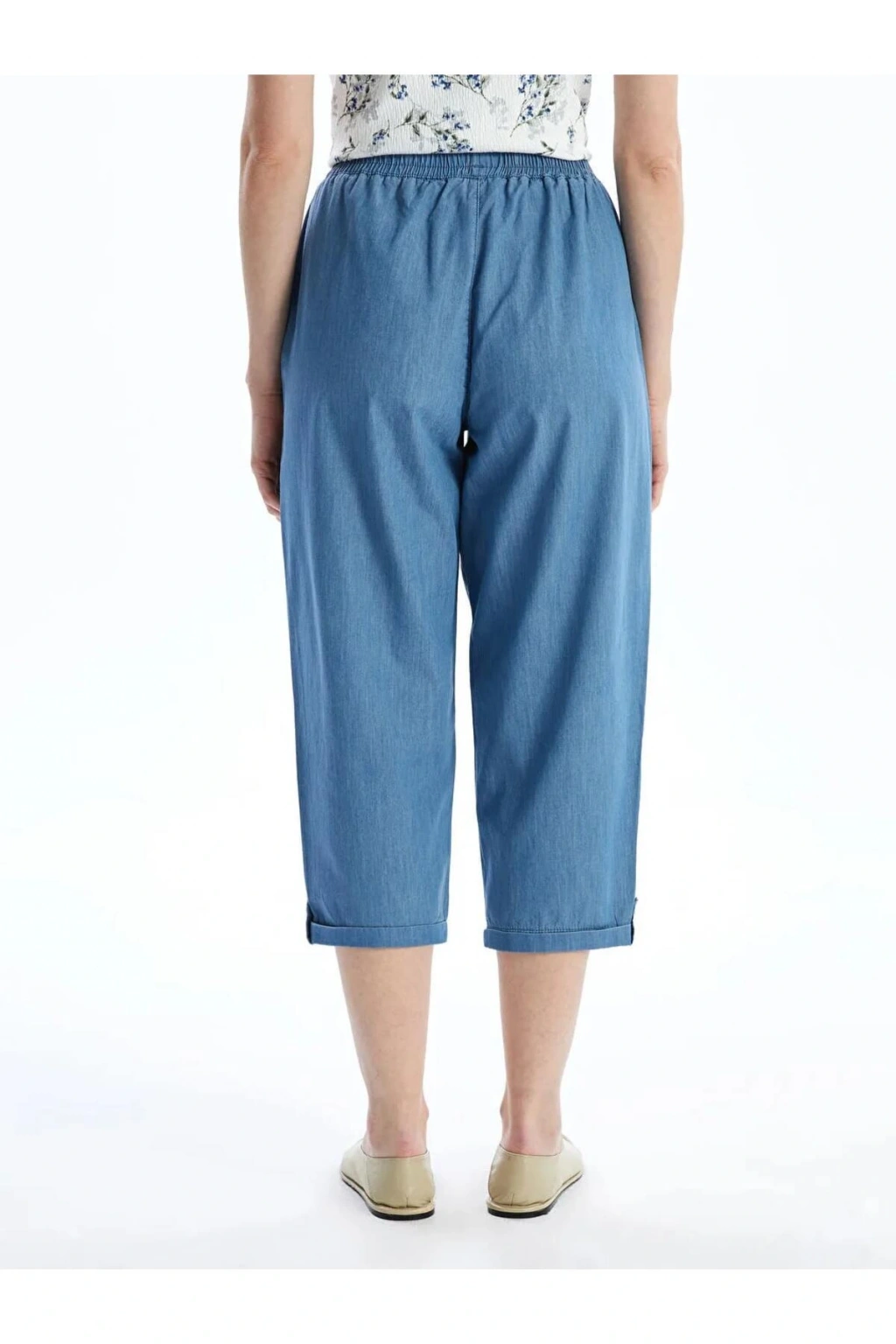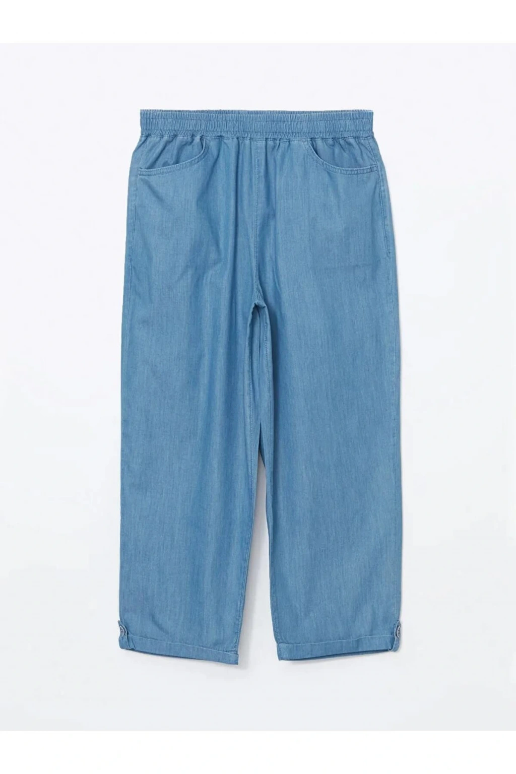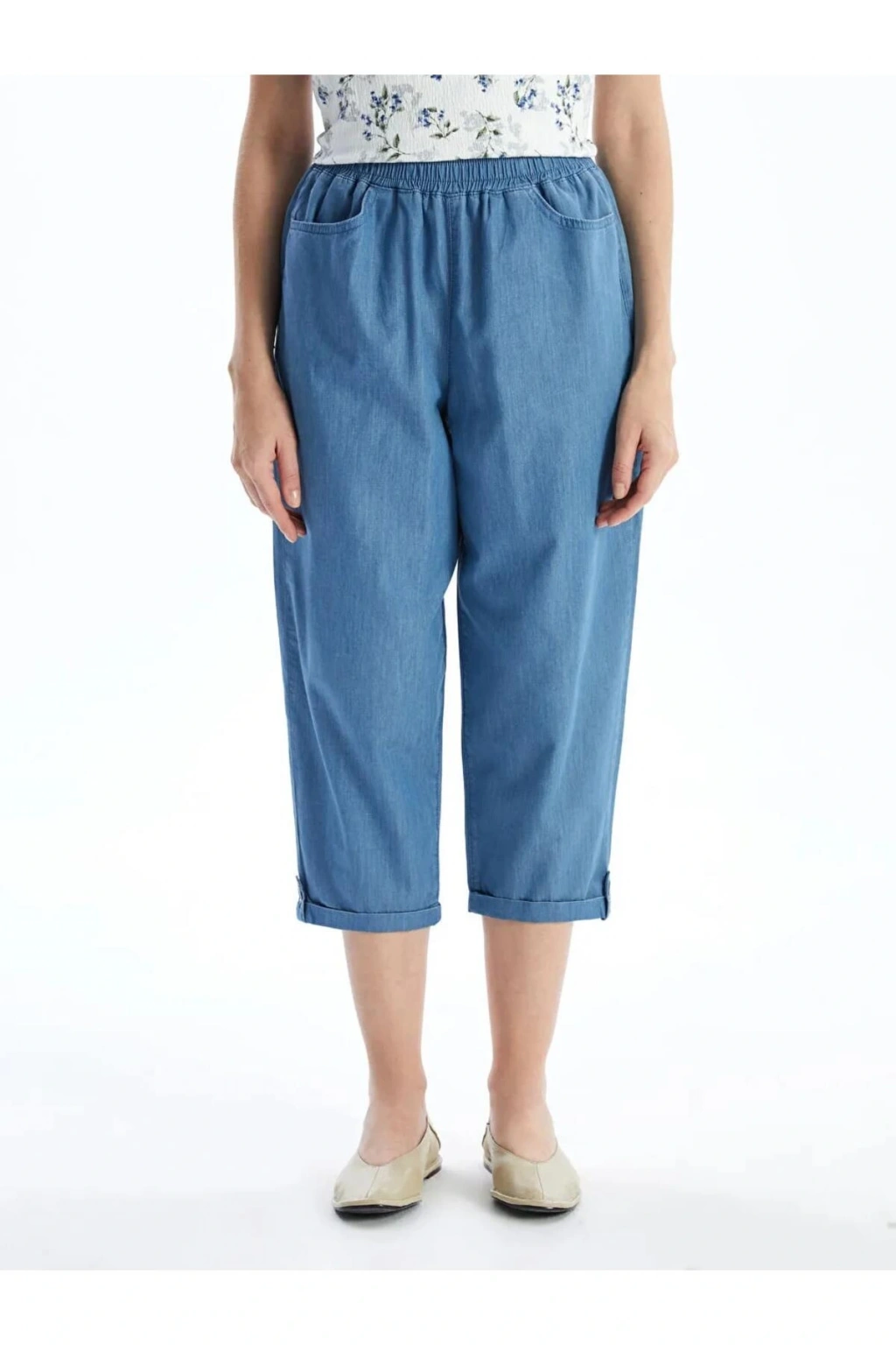 Rahatlığın ve tarzın buluştuğu düz jean kapri, beli lastikli tasarımıyla öne çıkıyor. İki yandan cepli detaylarıyla kullanışlı bir seçenek olan kapri, günlük stilinizde şıklığı ve konforu bir araya getirir.