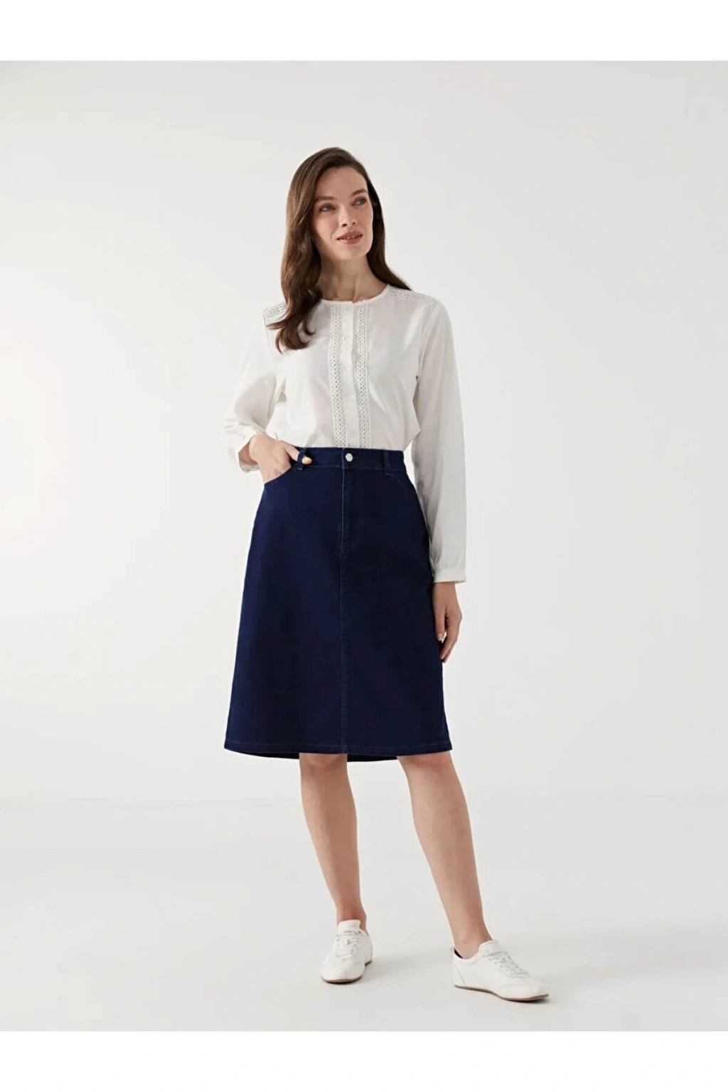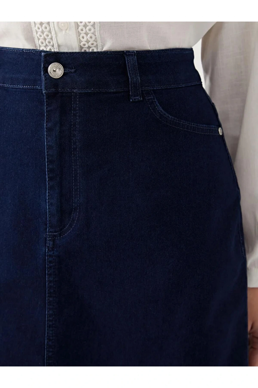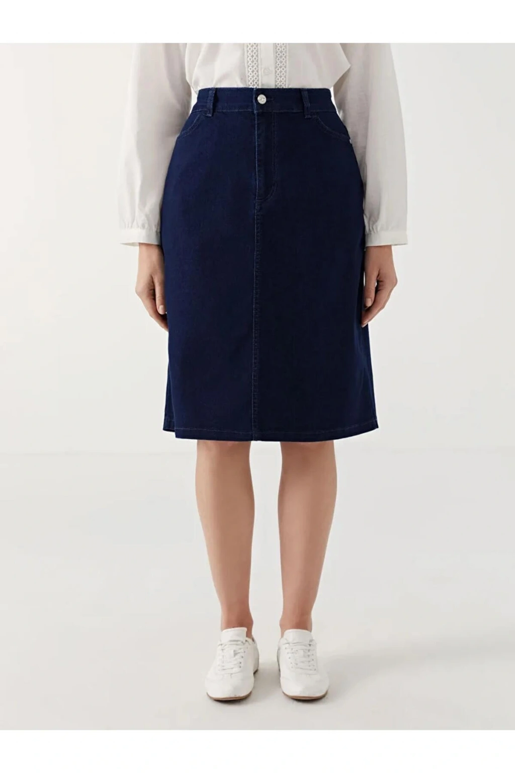 - Genç ve dinamik tarzınızı yansıtan, mavi renkteki LCW Grace etek, yaz aylarında rahatlıkla tercih edebileceğiniz şık bir seçenektir.; - Normal bel tasarımı ile gün boyu konfor sunan bu jean etek, her türlü üst giyimle kolayca kombinlenebilir.; - Midi boy kesimi sayesinde hem günlük kullanım hem de özel davetlerde ideal bir seçimdir.; - Pamuklu kumaşı ile cildinize nefes aldırırken, deniz mavisi tonuyla göz alıcı bir görünüm sağlar.; - Çift cepli yapısı küçük eşyalarınız için pratik saklama alanları sunarken, astarsız olması hafiflik hissi verir.; - Trend ortamlarda dahi stil sahibi olmanızı sağlayacak bu etek, tüm yaş gruplarına hitap ederken kaliteli malzemelerden üretilmiştir.; - Orta kalınlığındaki denim kumaşı mevsim geçişlerinde de rahatlıkla kullanılabilir; sıcak tutarken serin havalar için de uygunluk gösterir.