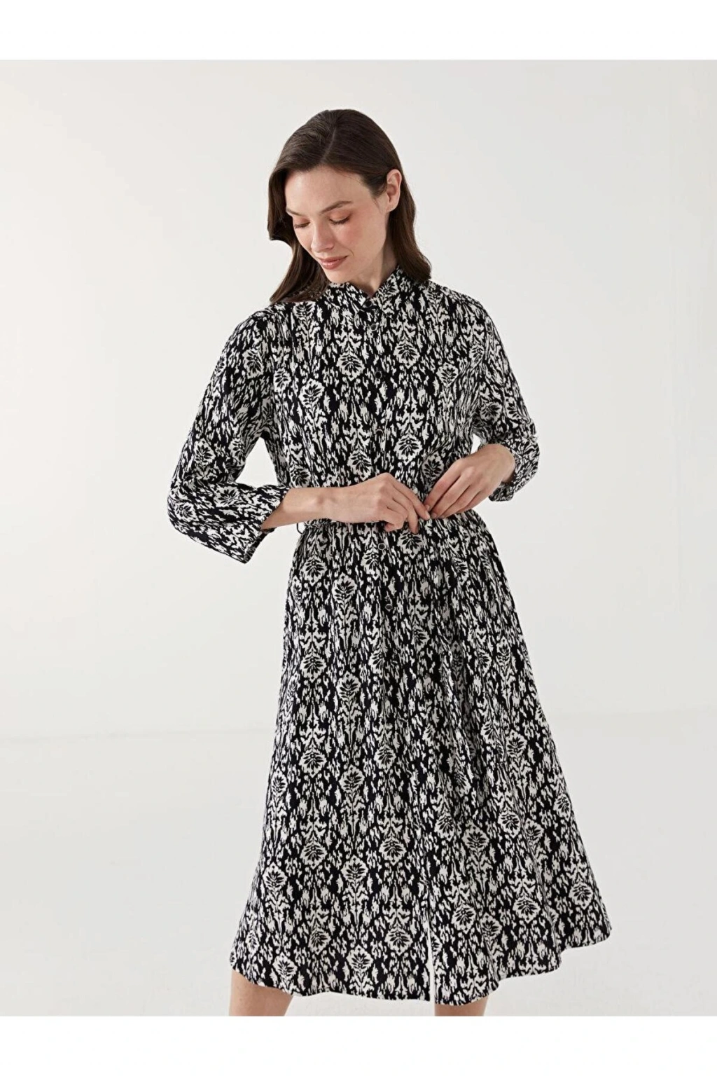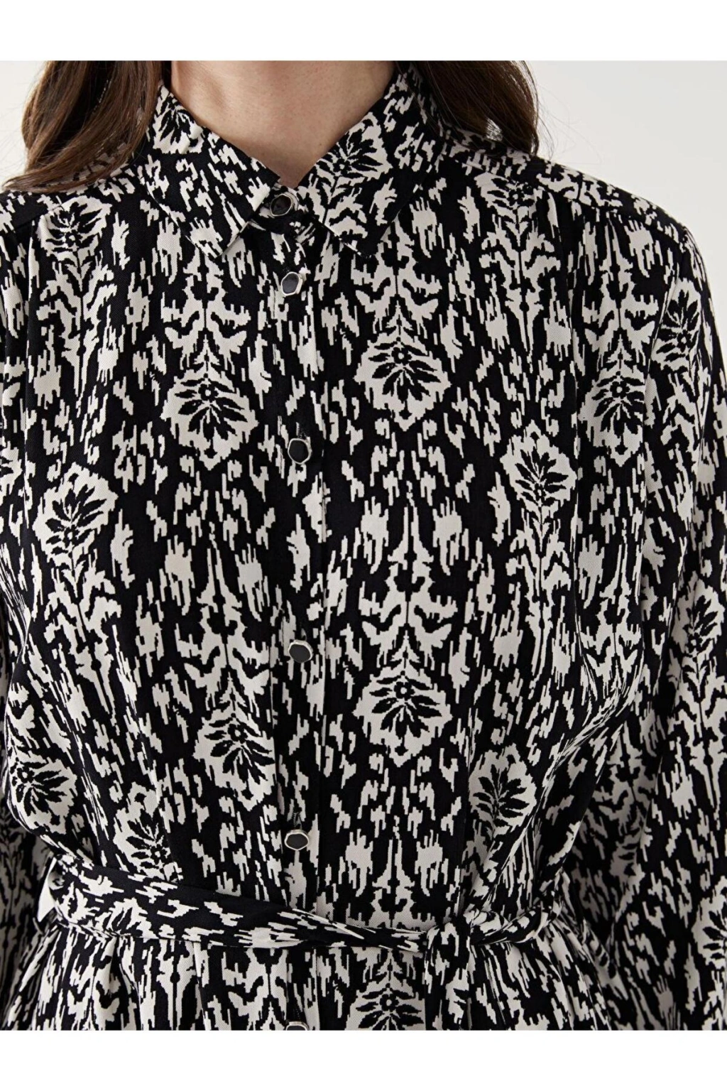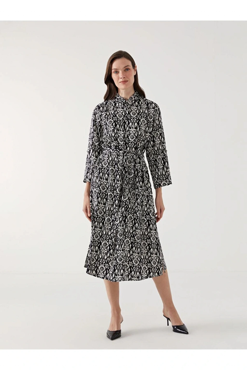 Ürün Açıklaması Desenli kadın gömlek elbise, akıcı viskoz elyafıyla rahat ve şık bir giyim deneyimi sunar.; Belindeki bağlama detayı, kişisel uyum sağlar ve vücudunuzu zarifçe sarar.; Katlanabilir apolet detaylı kollarıyla pratik ve stil sahibi bir görünüm kazandırır.; Manken Bilgisi Göğüs: 87 cm Bel: 60 cm Basen: 90 cm Boy: 175 cm Manken 40 beden ürün giyiyor.; Manken Bilgisi Boy: 175 cm Kilo: 60 kg Manken 40 beden ürün giyiyor.; Ürün İçeriği ve Özellikleri Ürün İçeriği: Ana Kumaş: %100 VİSKOZ Ürün Özellikleri: Satıcı: LC Waikiki Marka: LCW Grace Ürün Tipi: Gömlek Elbise Cinsiyet: Kadın Astar Detay: Astarsız Desen: Baskılı Kalınlık: İnce Kalıp: Standart & Regular Kol Boyu: Truvakar Kol Uzunluk: Midi Yaka: Gömlek Yaka Parça Sayısı: 2 Parça Ürün Aksesuarı: Kuşak