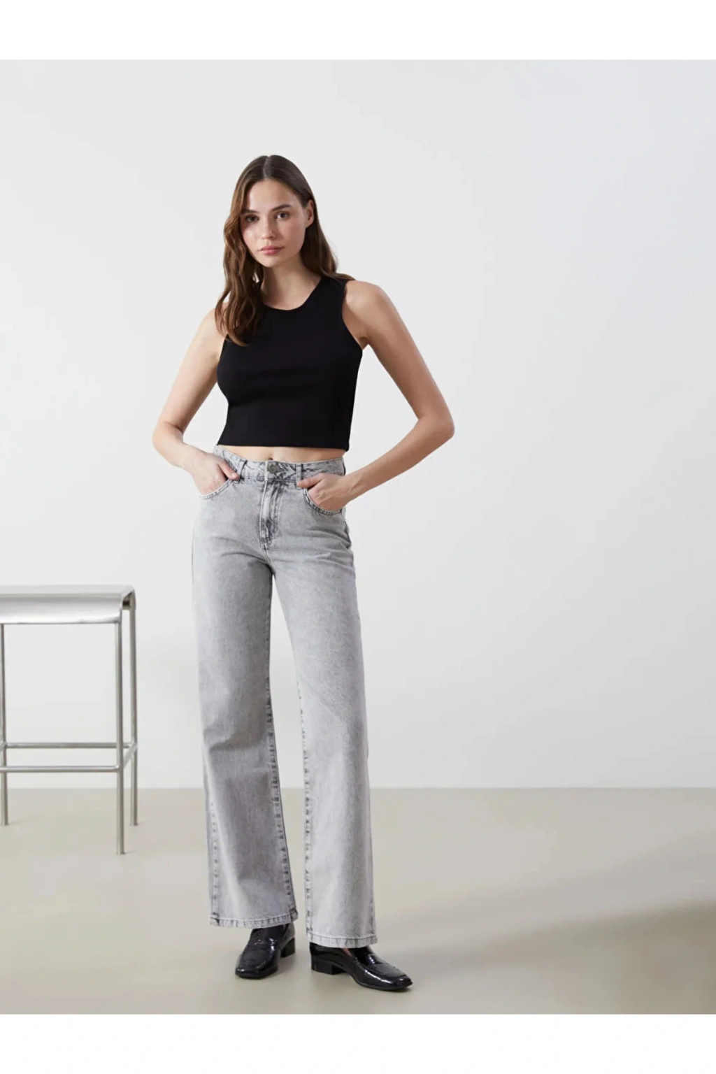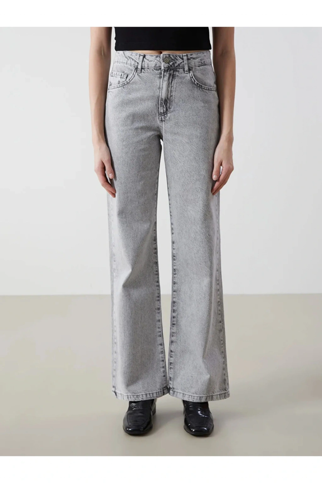 LCW Jeans Gri Wideleg Kadın Jean Pantolon