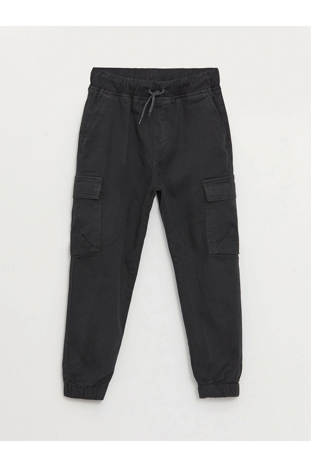 Pamuklu esnek gabardin kumaştan Beli ve paçaları lastikli Kargo cepli