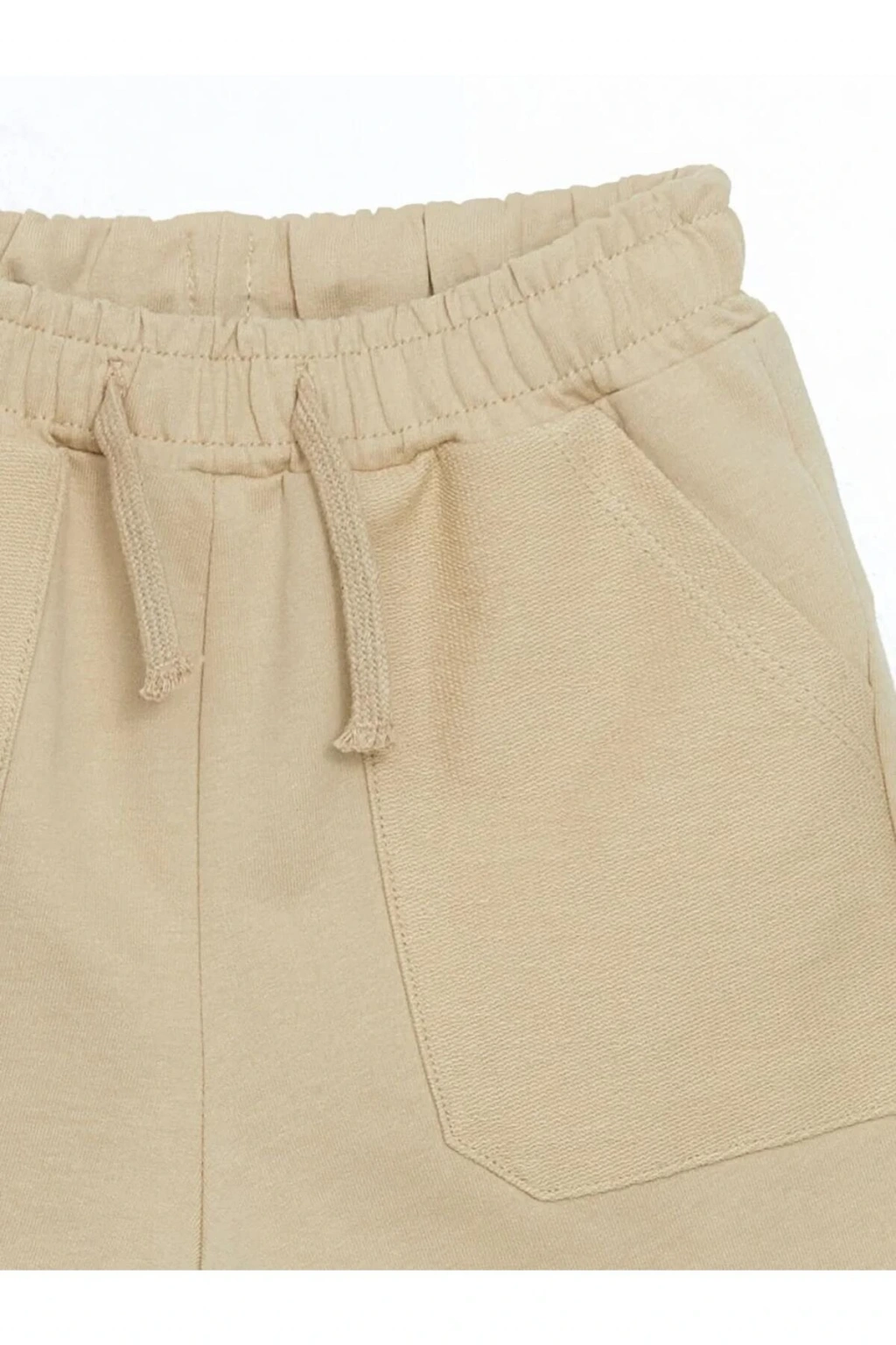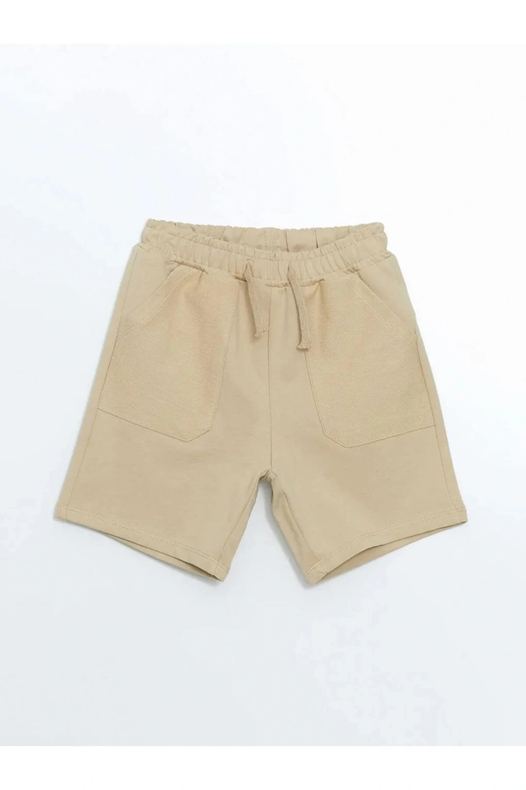 LCW Kids Bej Basic Beli Lastikli Pamuklu Erkek Çocuk Şort