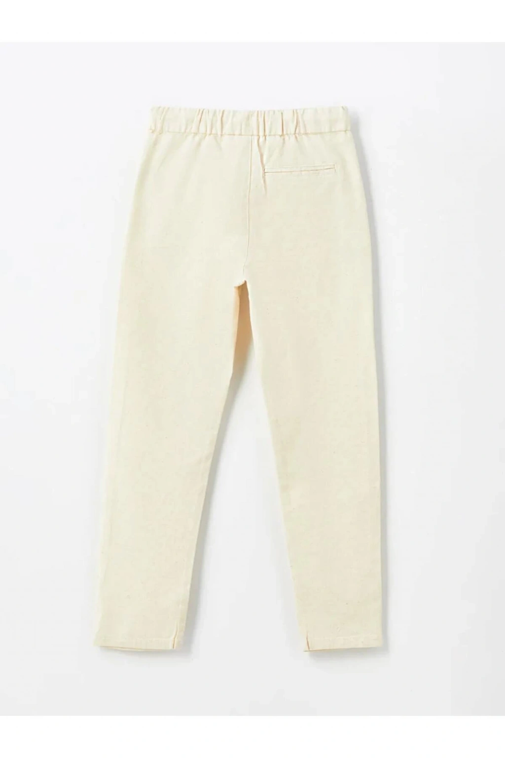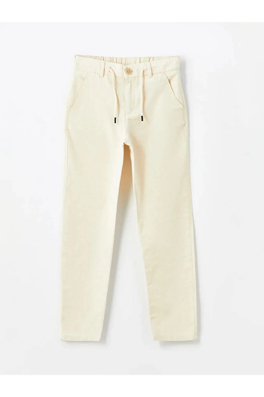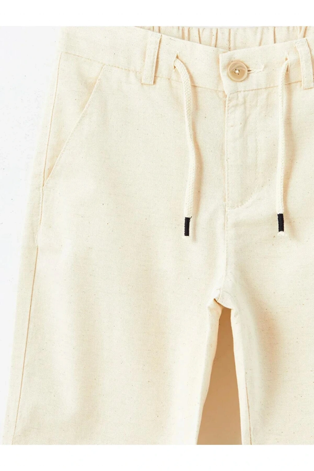 Erkek çocuk pantolon, keten karışımlı kumaşın nefes alabilir yapısı ile konfor sunar. Lastikli bel ve ayarlanabilir ip detayı, çocuklar için ideal bir uyum sağlar, rahatlığı ve şıklığı bir araya getirir.