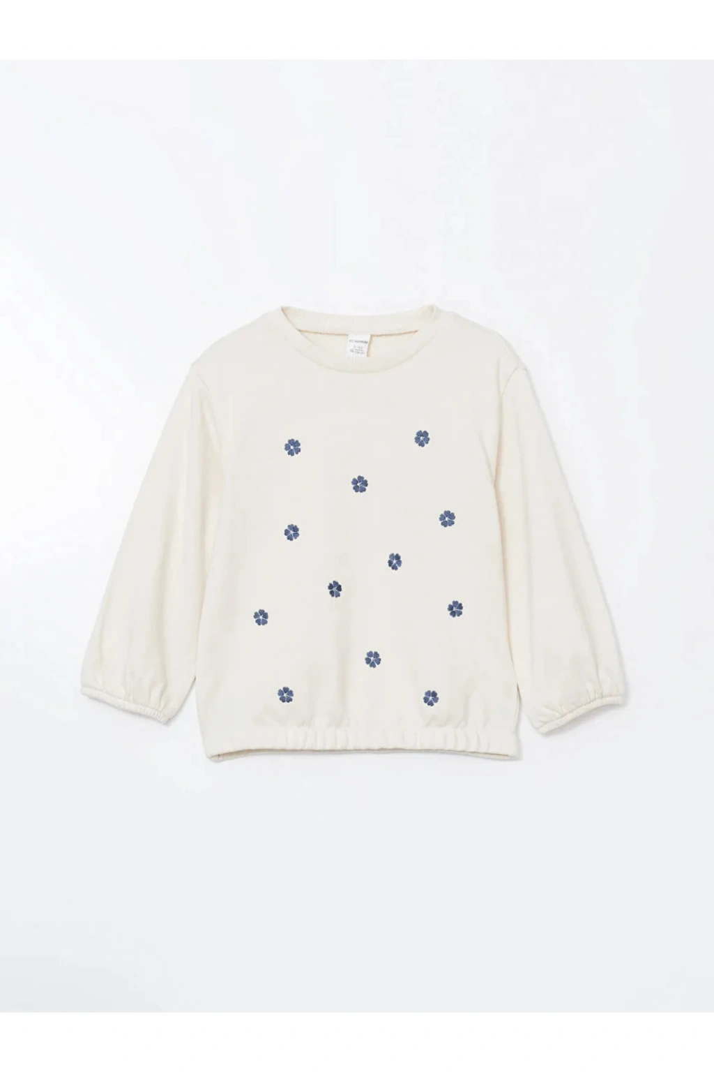 LCW Kids Bej Bisiklet Yaka Çiçekli Kız Çocuk Sweatshirt ve Tayt Pantolon 2'li
