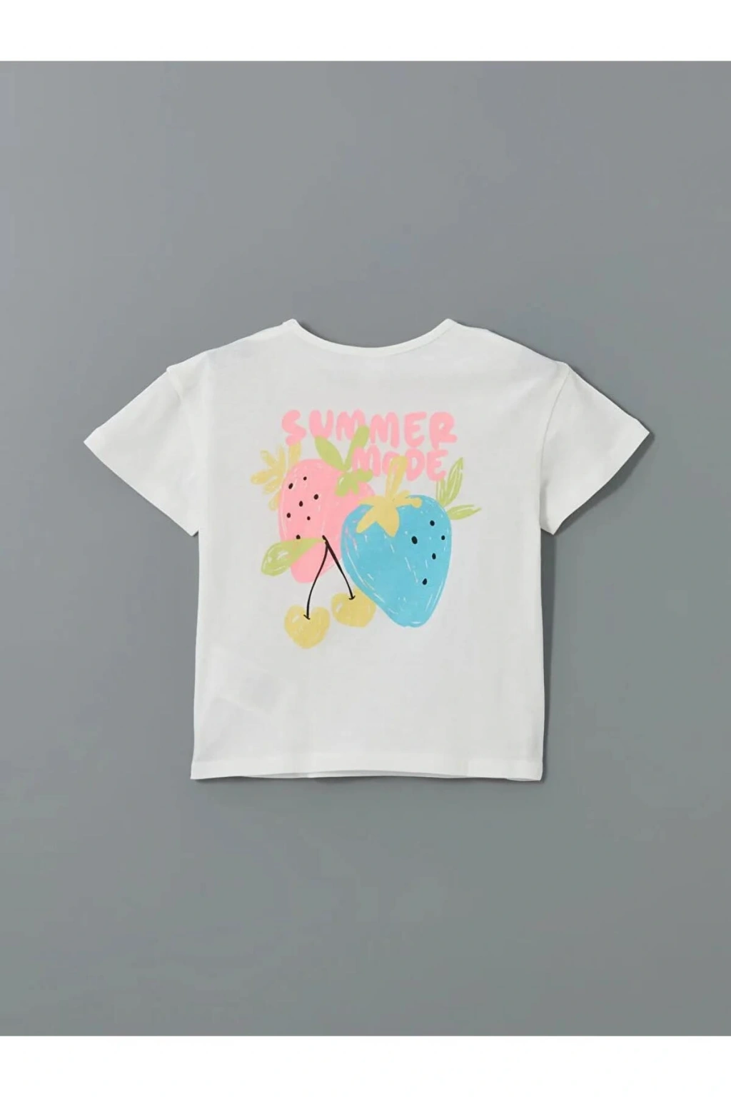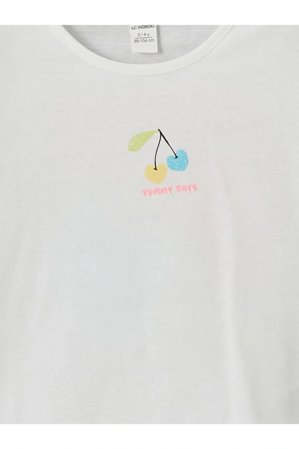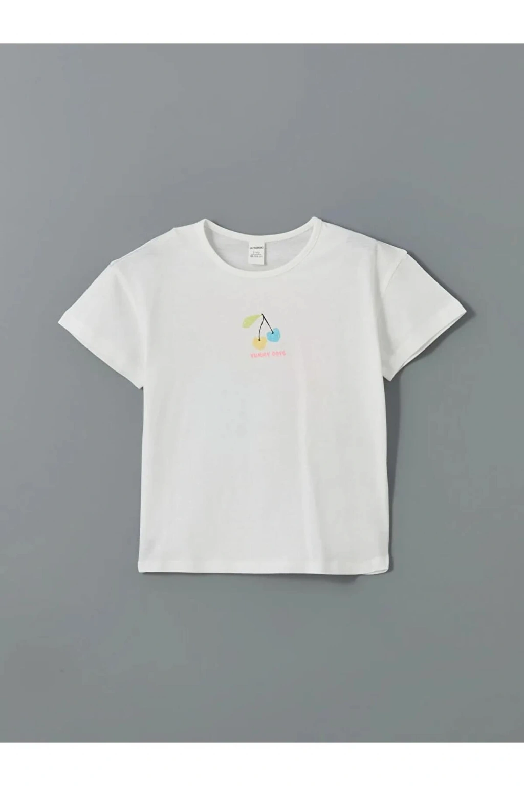 LCW Kids Beyaz Bisiklet Yaka Baskılı Penye Kız Çocuk Tişört