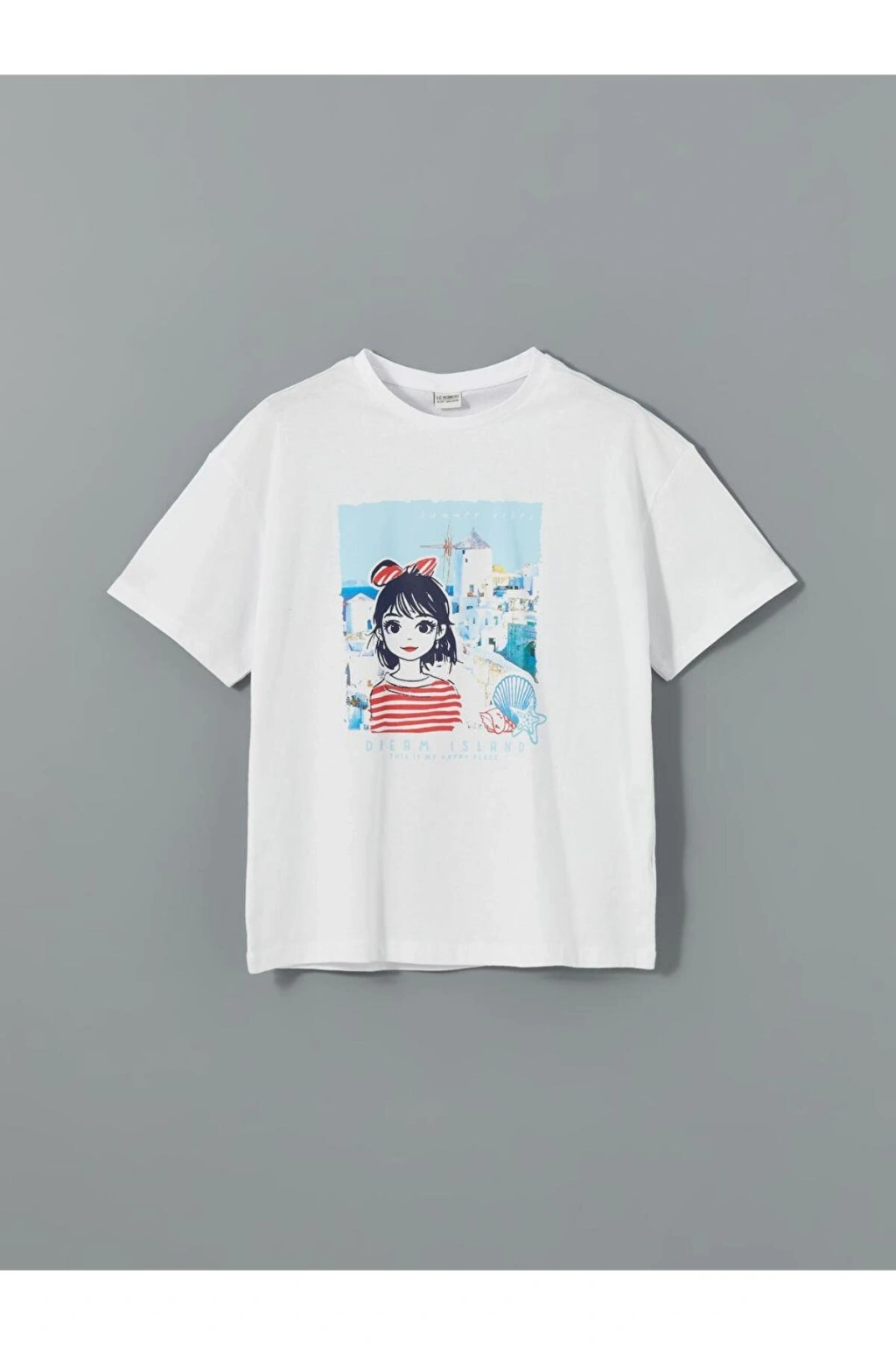 LCW Kids Beyaz Bisiklet Yaka Kız Çocuk Tişört