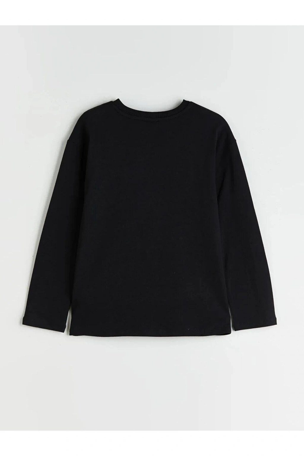 LCW Kids Lacivert Bisiklet Yaka Baskılı Kız Çocuk Crop Tişört